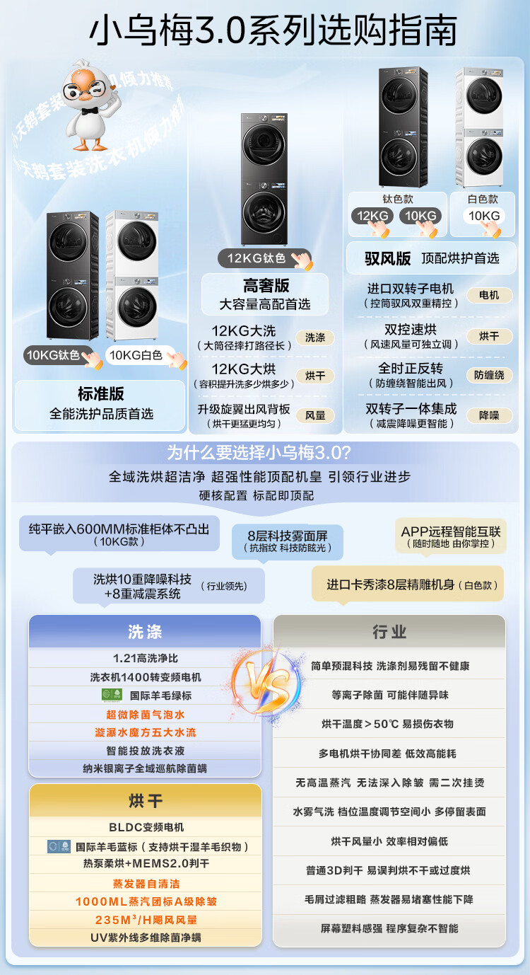 小天鹅(LittleSwan)年度机皇 小乌梅3.0 洗烘套装 10KG滚筒洗衣机全自动+热泵烘干机 AI智投 TG10VE40+VE40 国家补贴