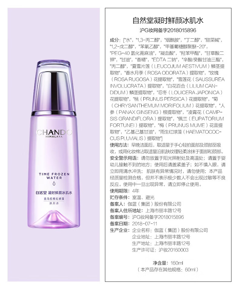 自然堂凝时鲜颜水乳套装(冰肌水160ml+乳液120ml)淡纹 生日礼物