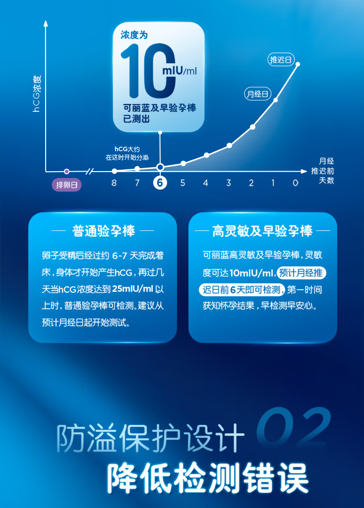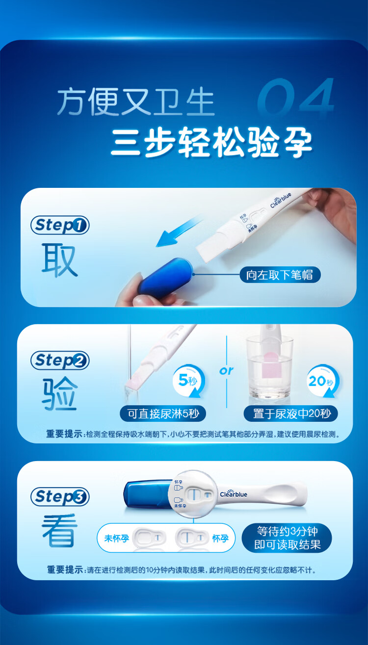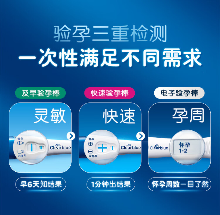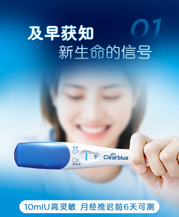 可丽蓝(Clearblue)验孕棒2支试纸新品早早孕测试笔 hCG诊断试剂 检测灵敏提前6天测