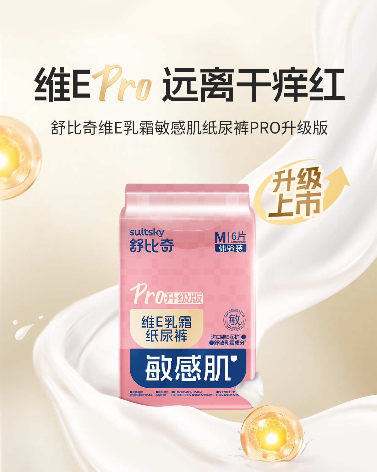 舒比奇(Suitsky)【新品首发】维EPro敏感肌纸尿裤尿不湿拉拉裤超薄柔软透气便携 【体验装】维EPro纸尿裤S码6片
