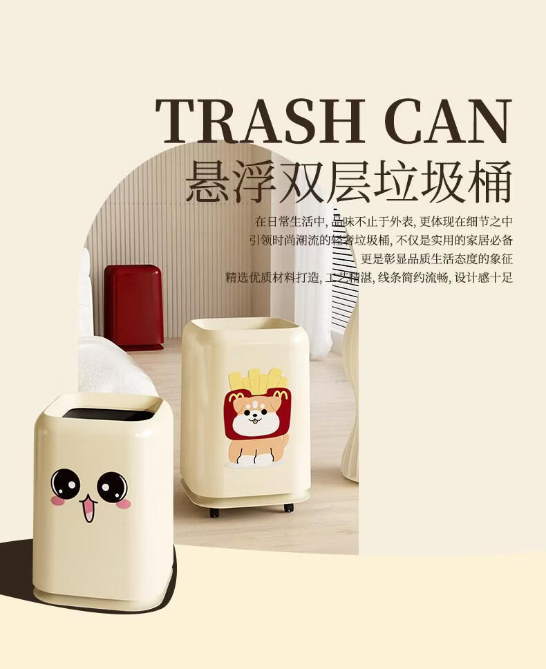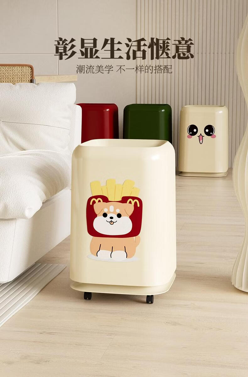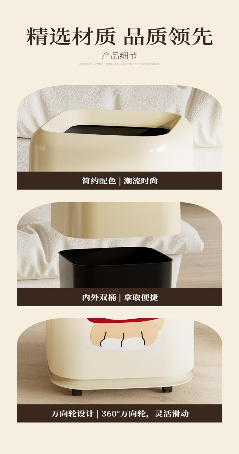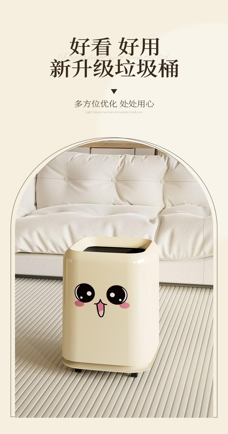 美世达(MEISD)垃圾桶家用2026新款客厅高颜值中古风卧室大号大容量卫生桶 【基础款-笑脸】 奶油白 无盖 12L