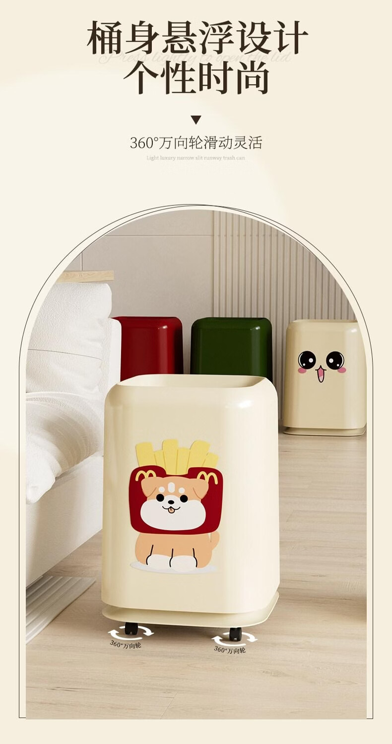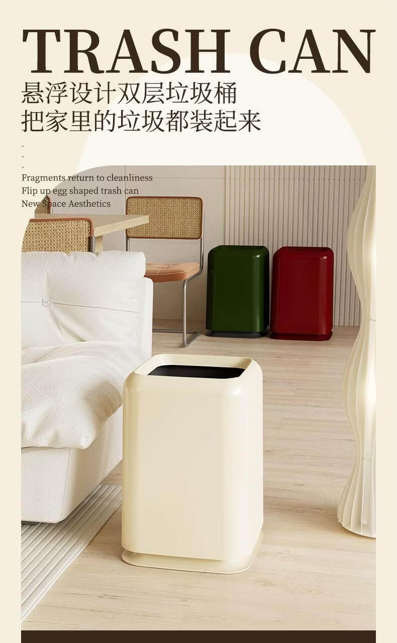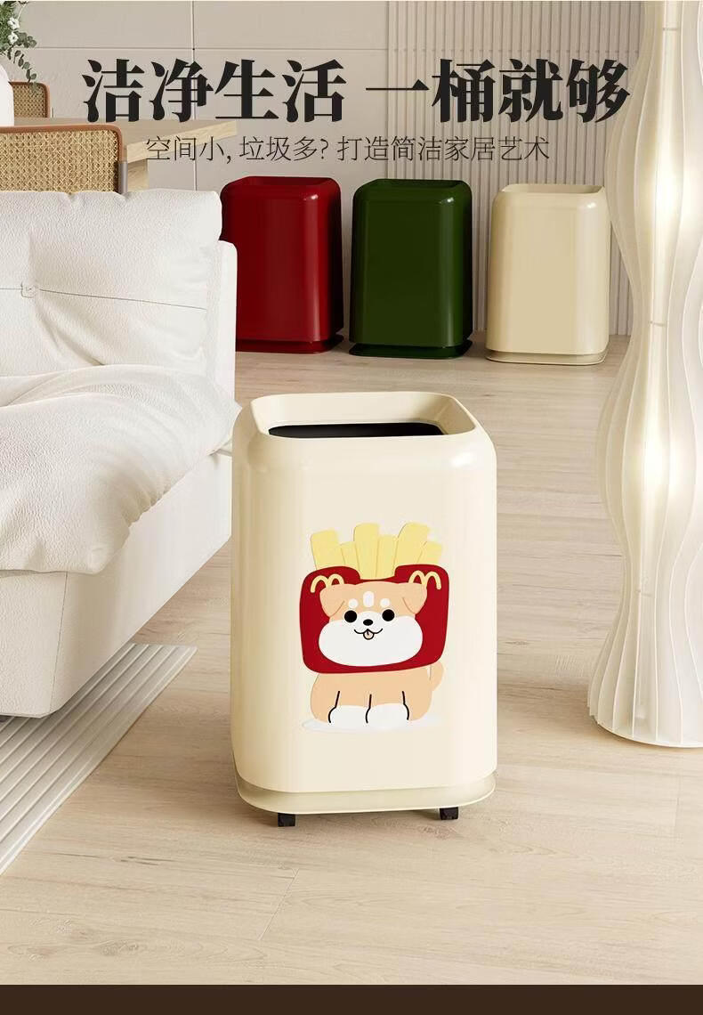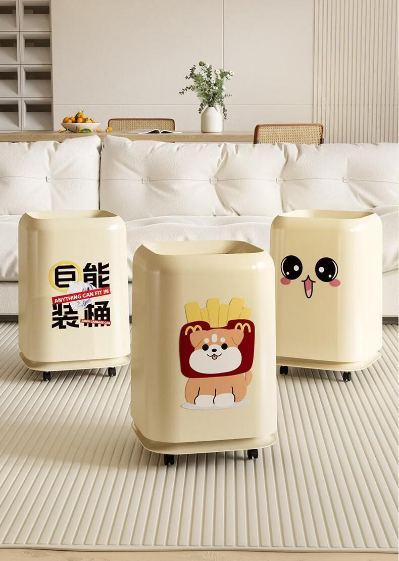 美世达(MEISD)垃圾桶家用2026新款客厅高颜值中古风卧室大号大容量卫生桶 【基础款-笑脸】 奶油白 无盖 12L