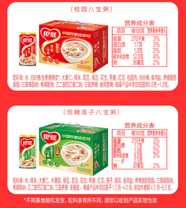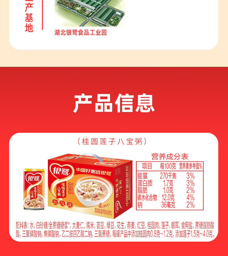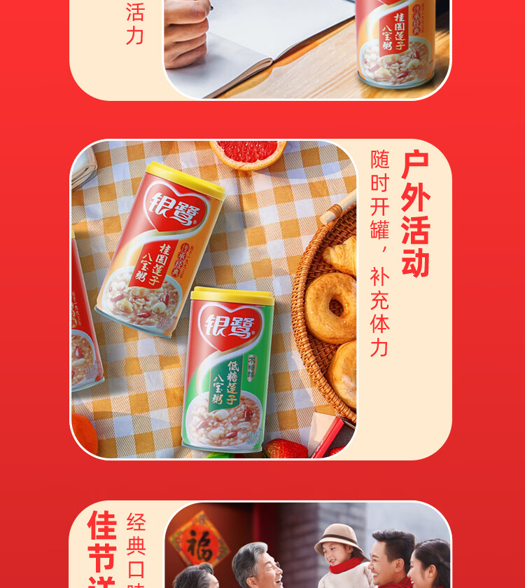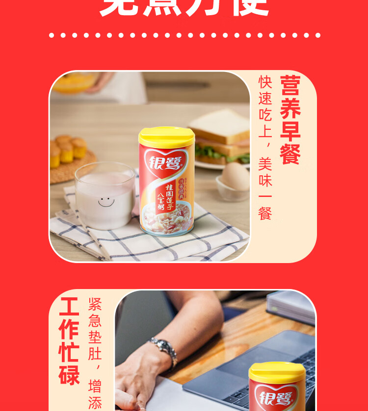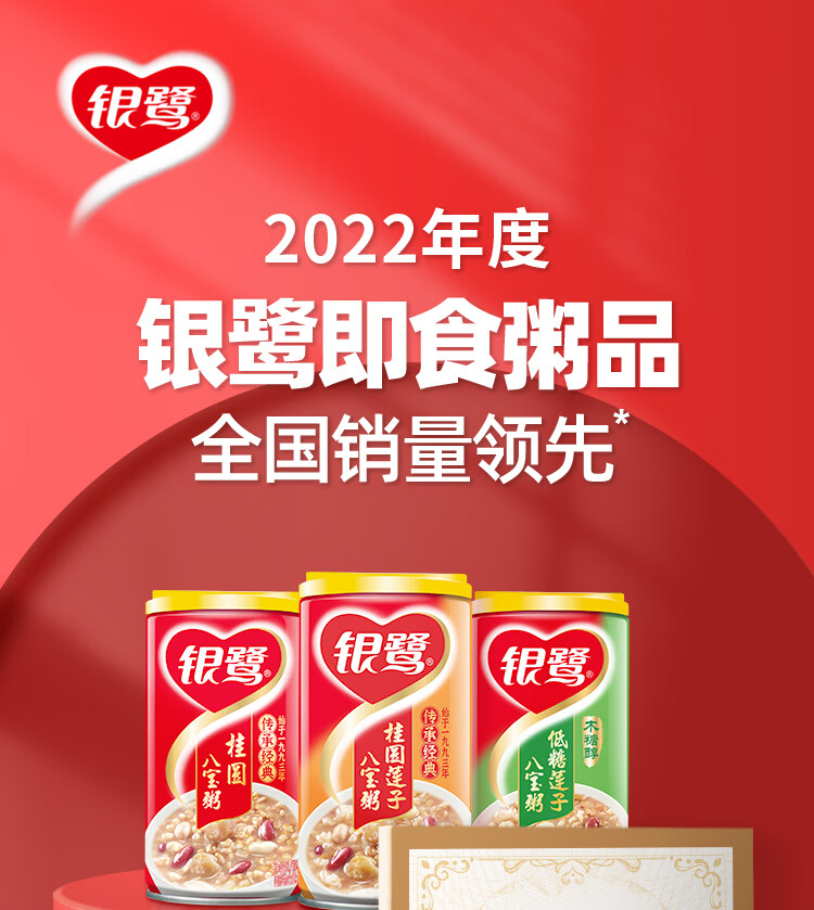 银鹭【三八节礼盒】速食方便早餐桂圆莲子八宝粥360g*12罐礼盒代餐