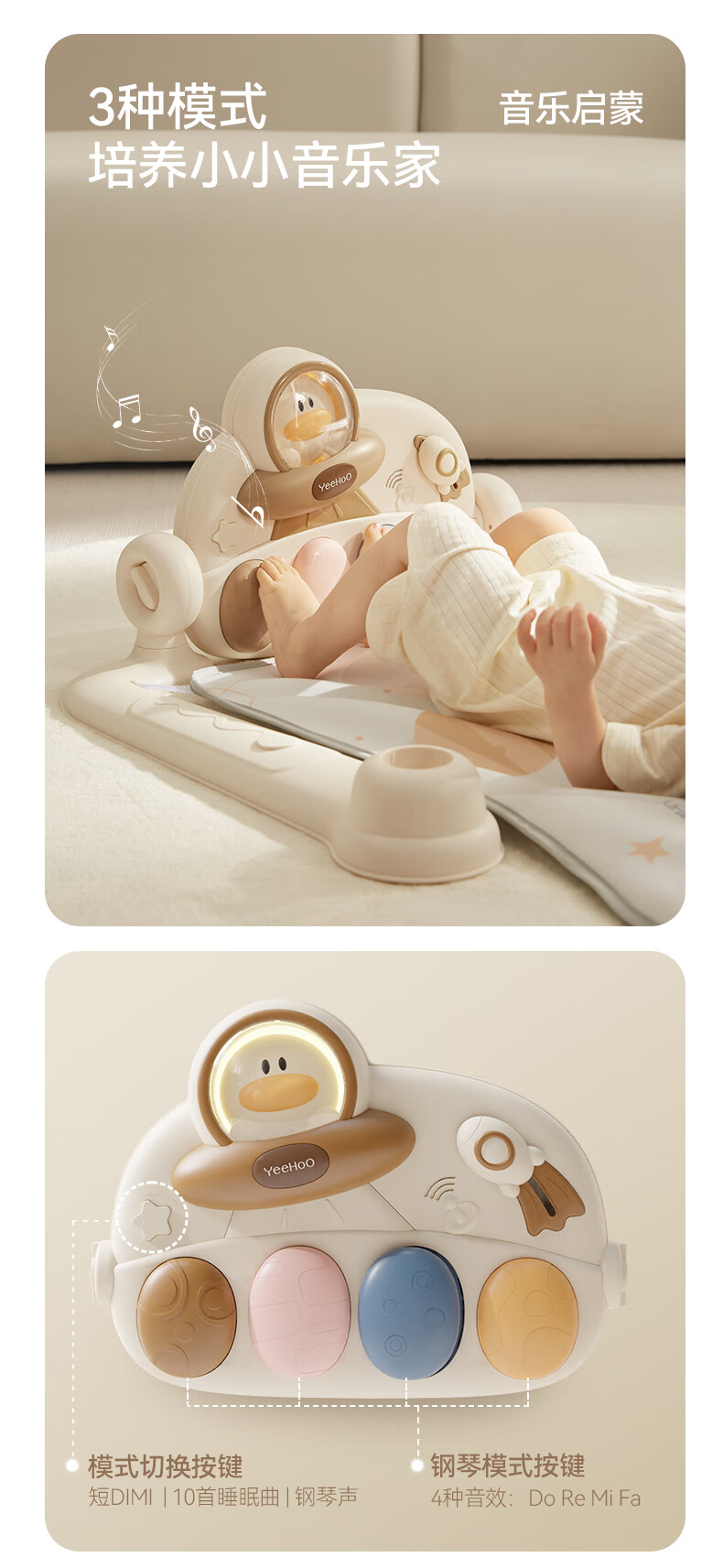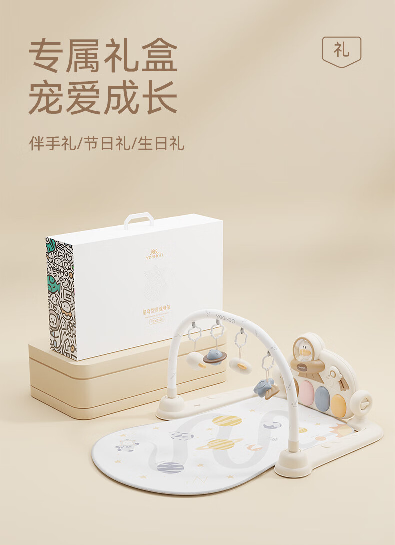 英氏(YEEHOO)婴儿健身架器脚踏钢琴0-1岁新生儿见面礼盒满月礼物音乐宝宝玩具
