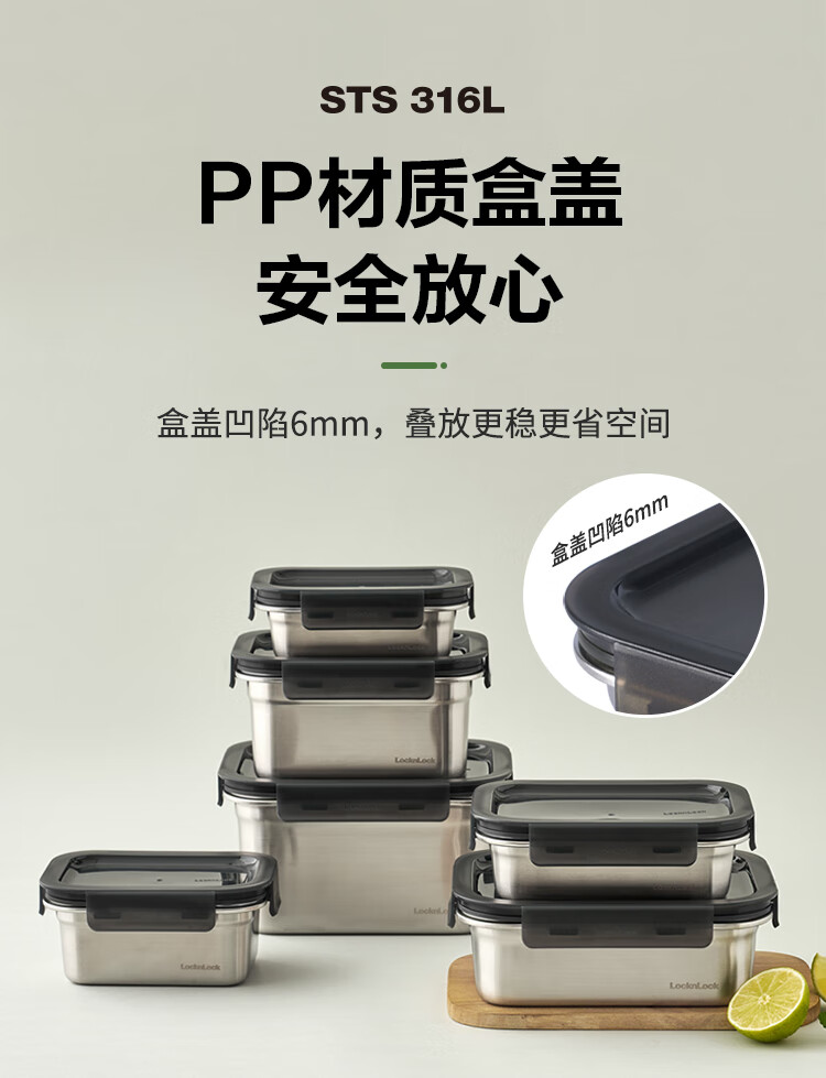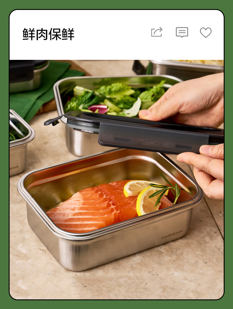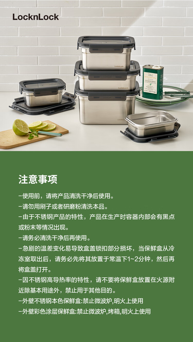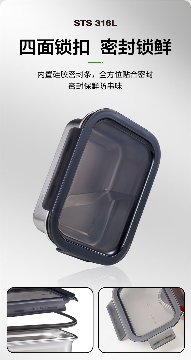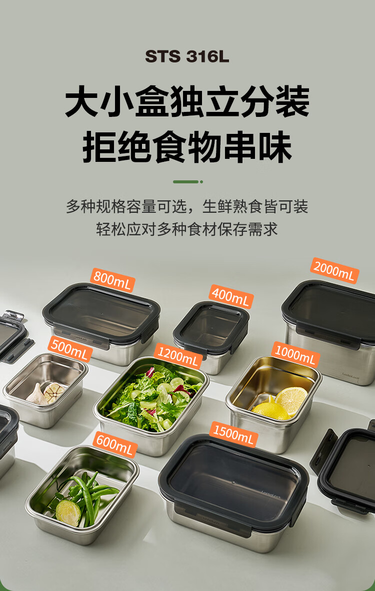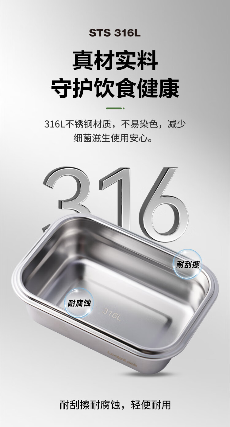 乐扣乐扣(LOCK&LOCK)本色不锈钢保鲜盒饭盒带饭密封冰箱厨房收纳水果零食餐盒500mL