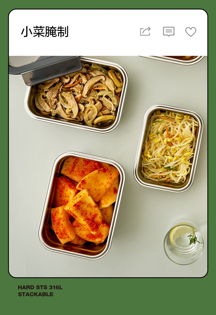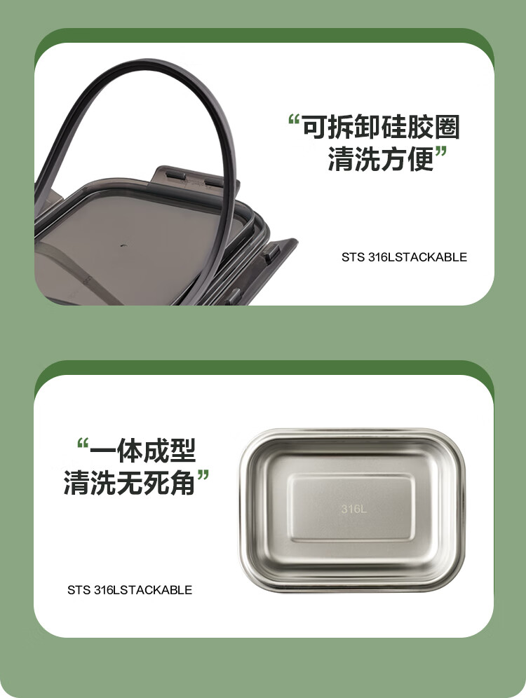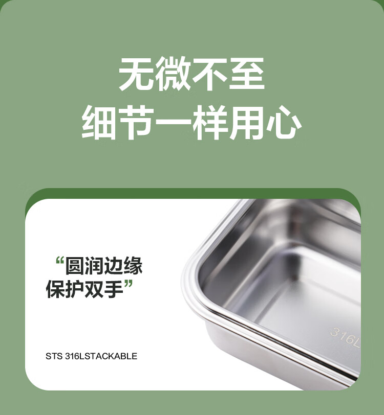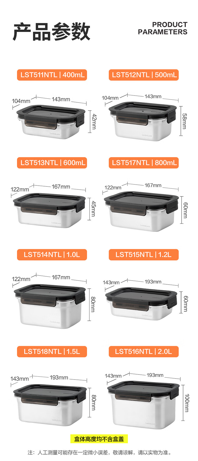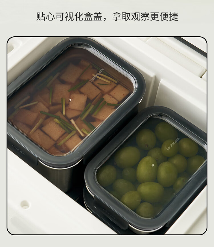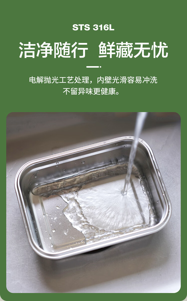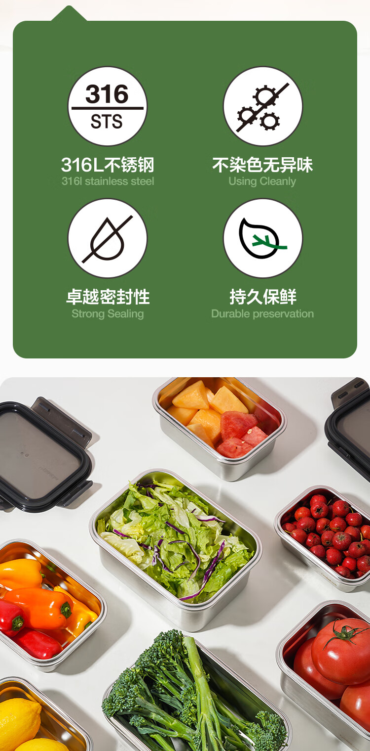 乐扣乐扣(LOCK&LOCK)本色不锈钢保鲜盒饭盒带饭密封冰箱厨房收纳水果零食餐盒500mL