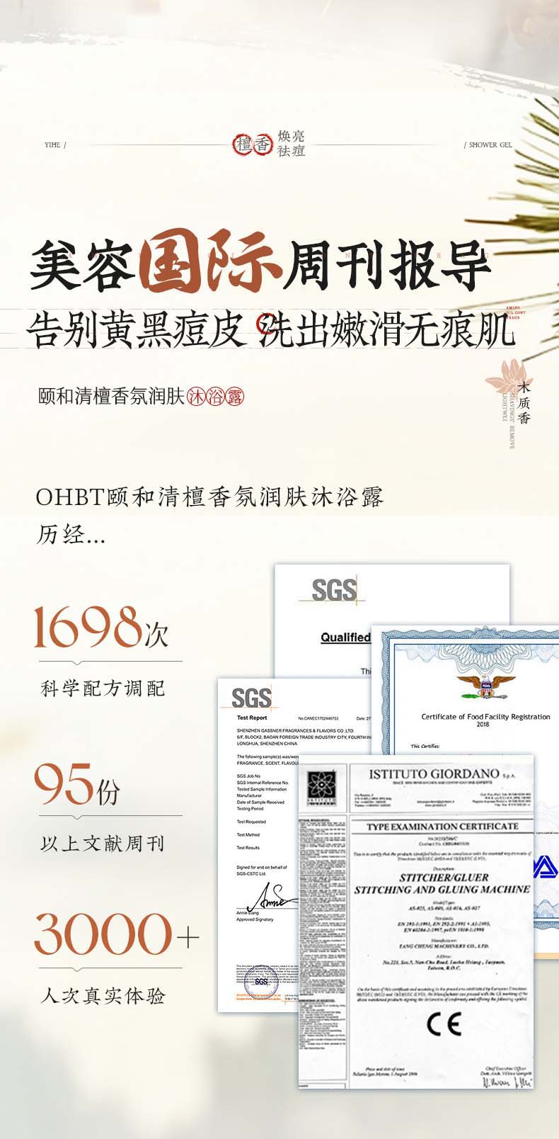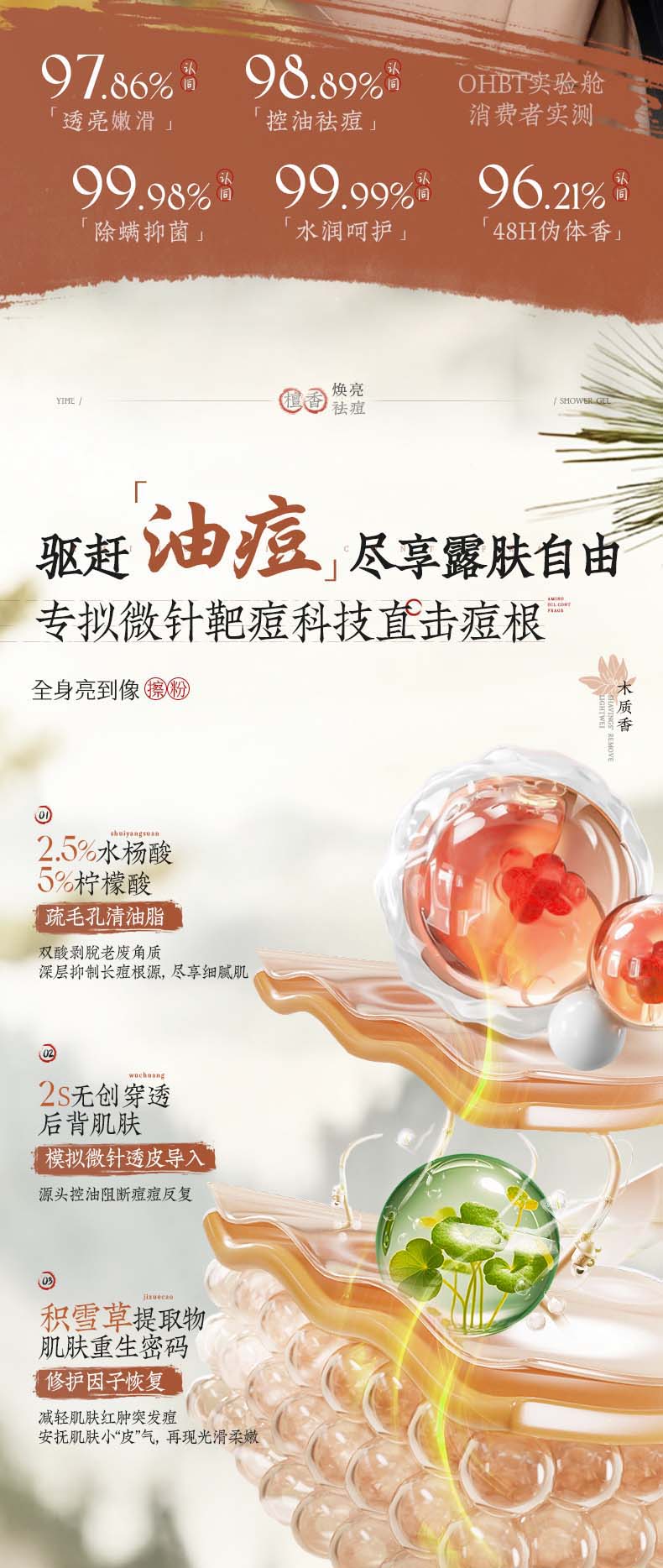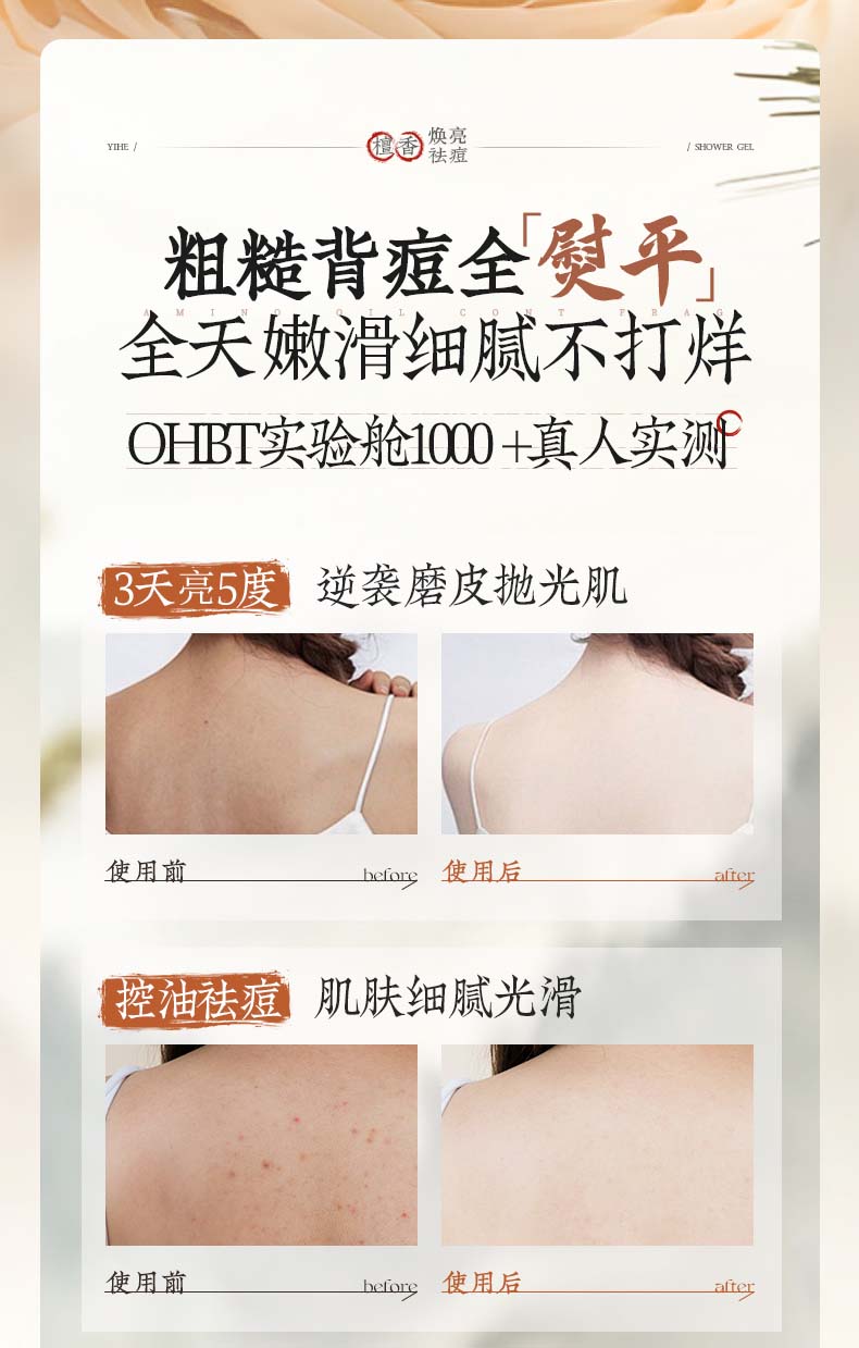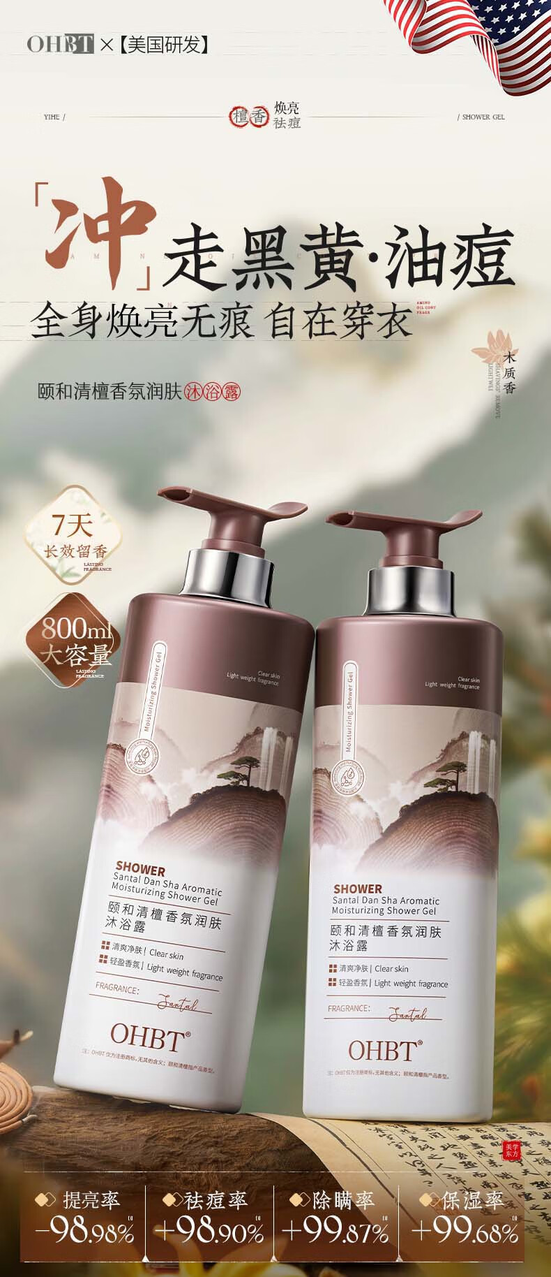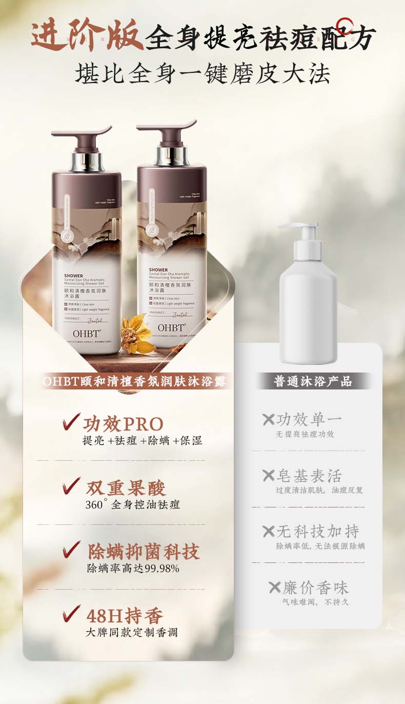 OHBT沐浴露800g男女士持久留香72小时香体祛痘香氛沐浴乳液金榜第一