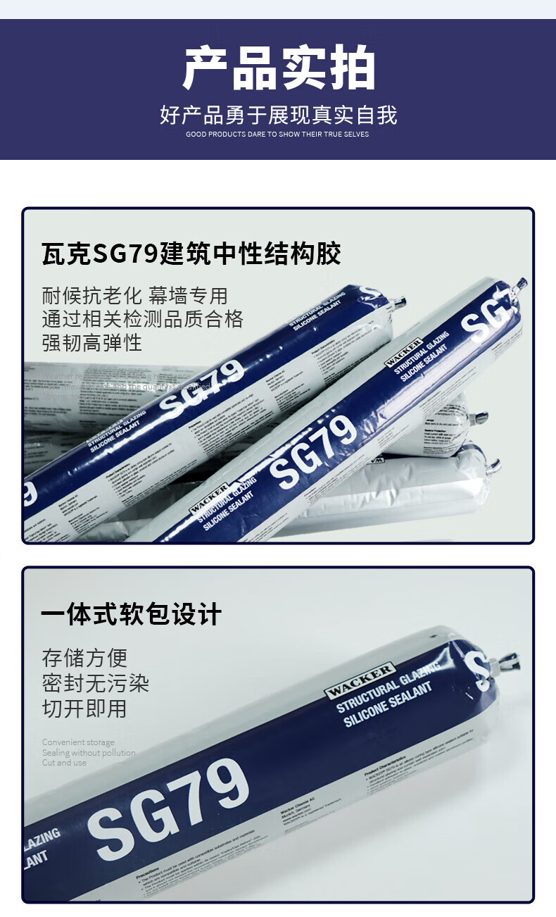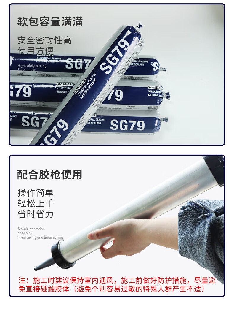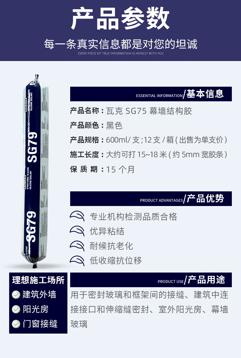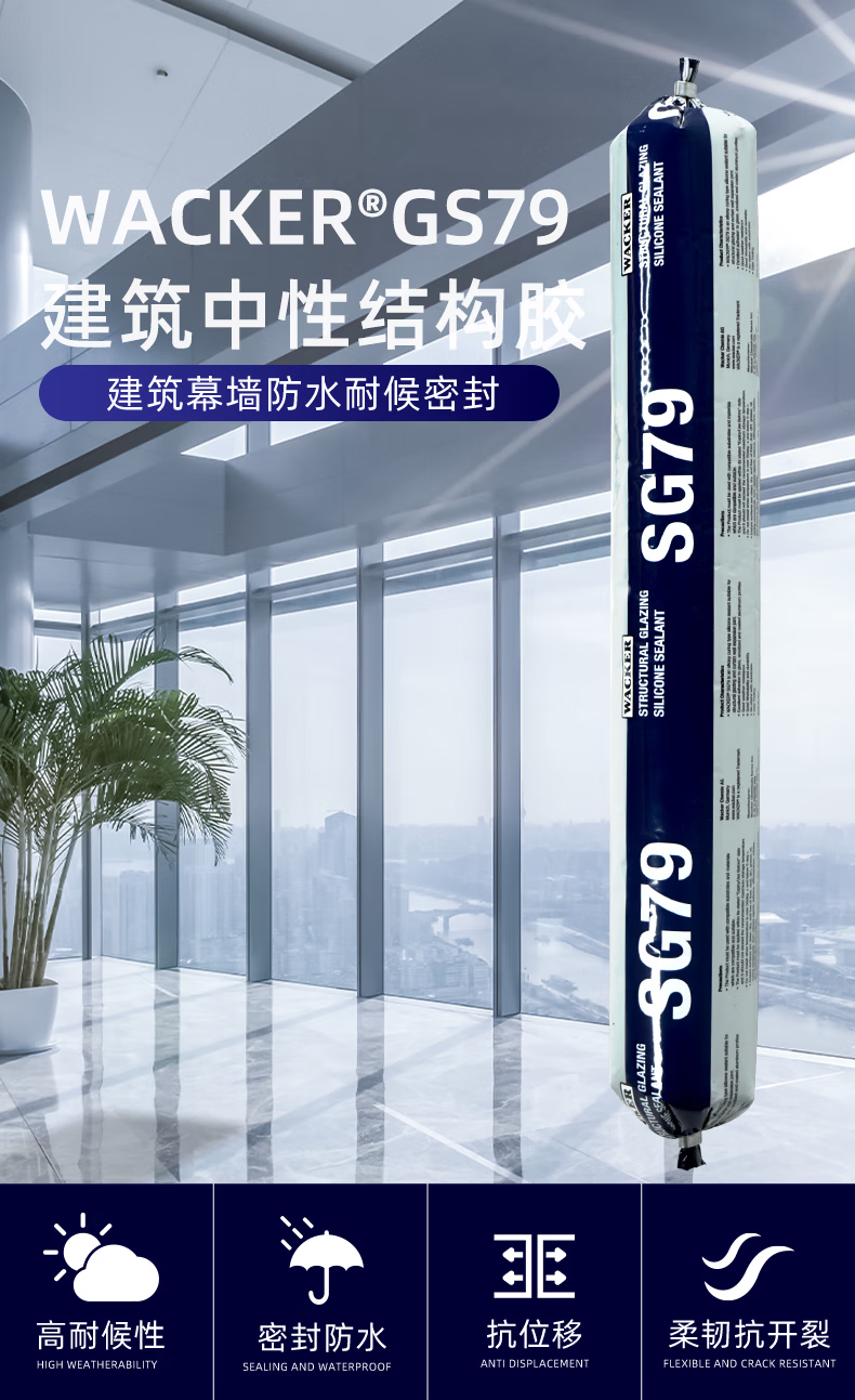 瓦克(WACKER)SG79耐候结构胶黑色密封胶防水幕墙硅酮结构胶耐高温维修窗户 【结构胶】幕墙硅酮-黑色 600ML*1