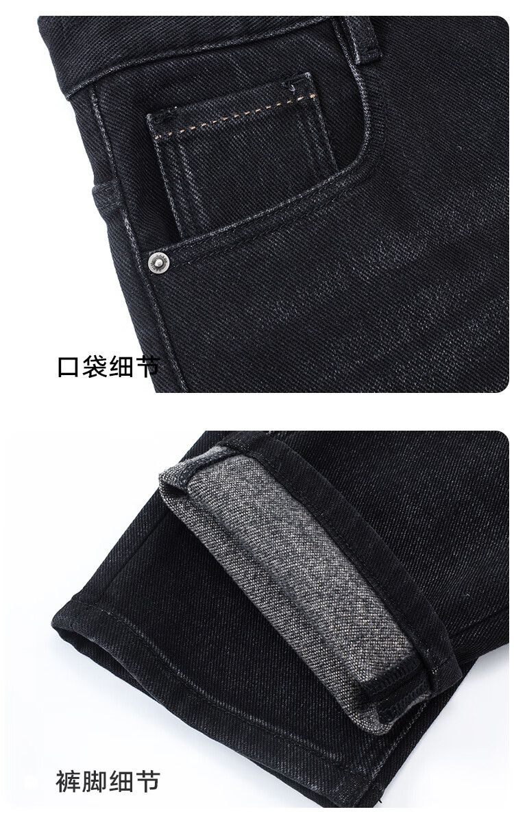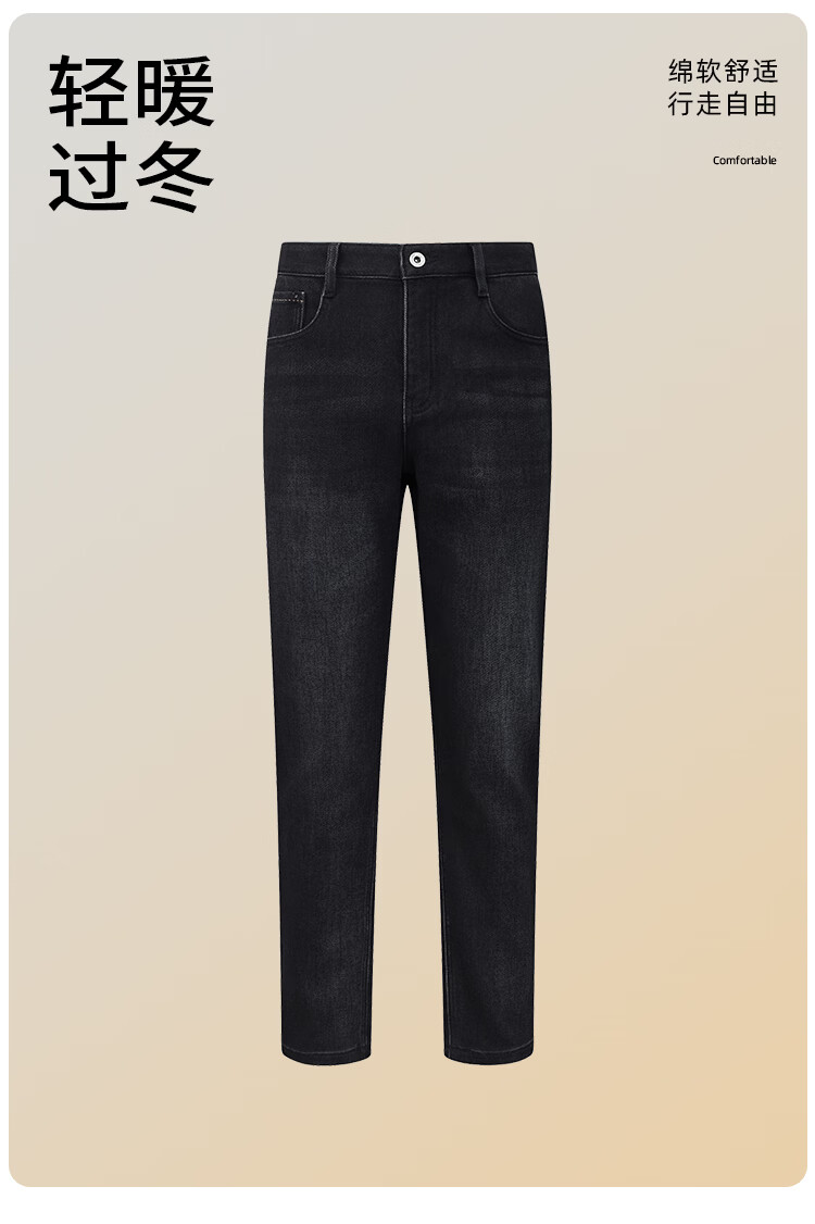 莱克斯顿牛仔裤男冬季【商场同款】保暖磨毛内里刺绣腰头直筒休闲长裤子男 浅黑 28