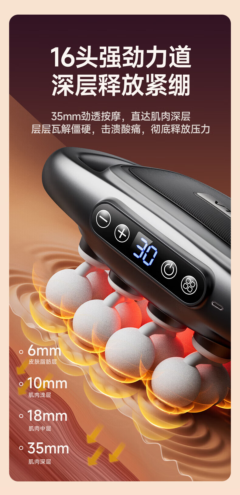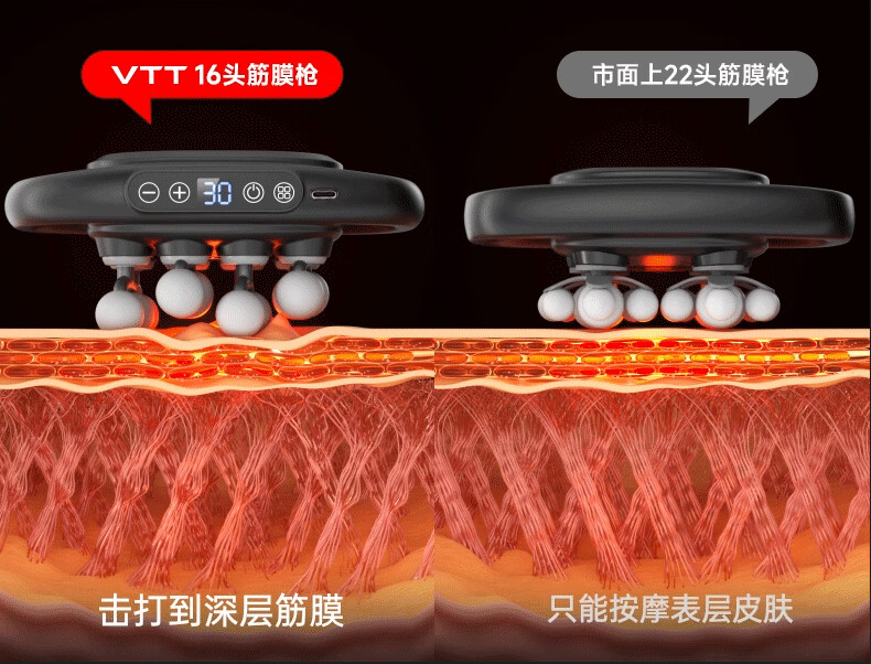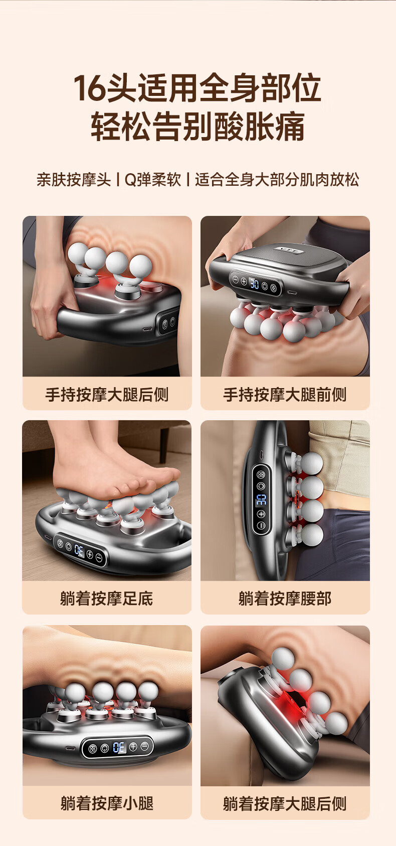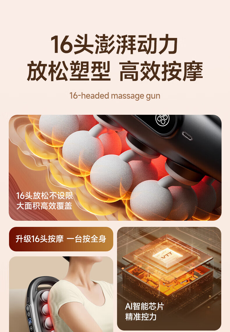 VTT【德国】十六头筋膜枪按摩器肩颈腰背全自动揉捏腿部全身深层肌肉电动颈膜小腿仪三八节女神礼物 【16头顶配款】30档+动力锂电池+德国品牌电机灰