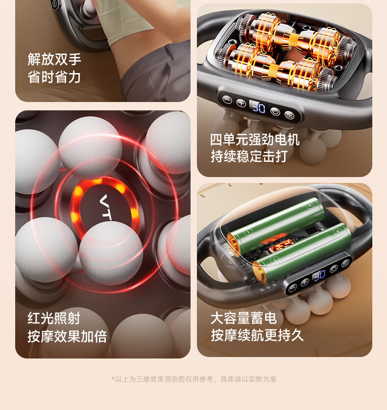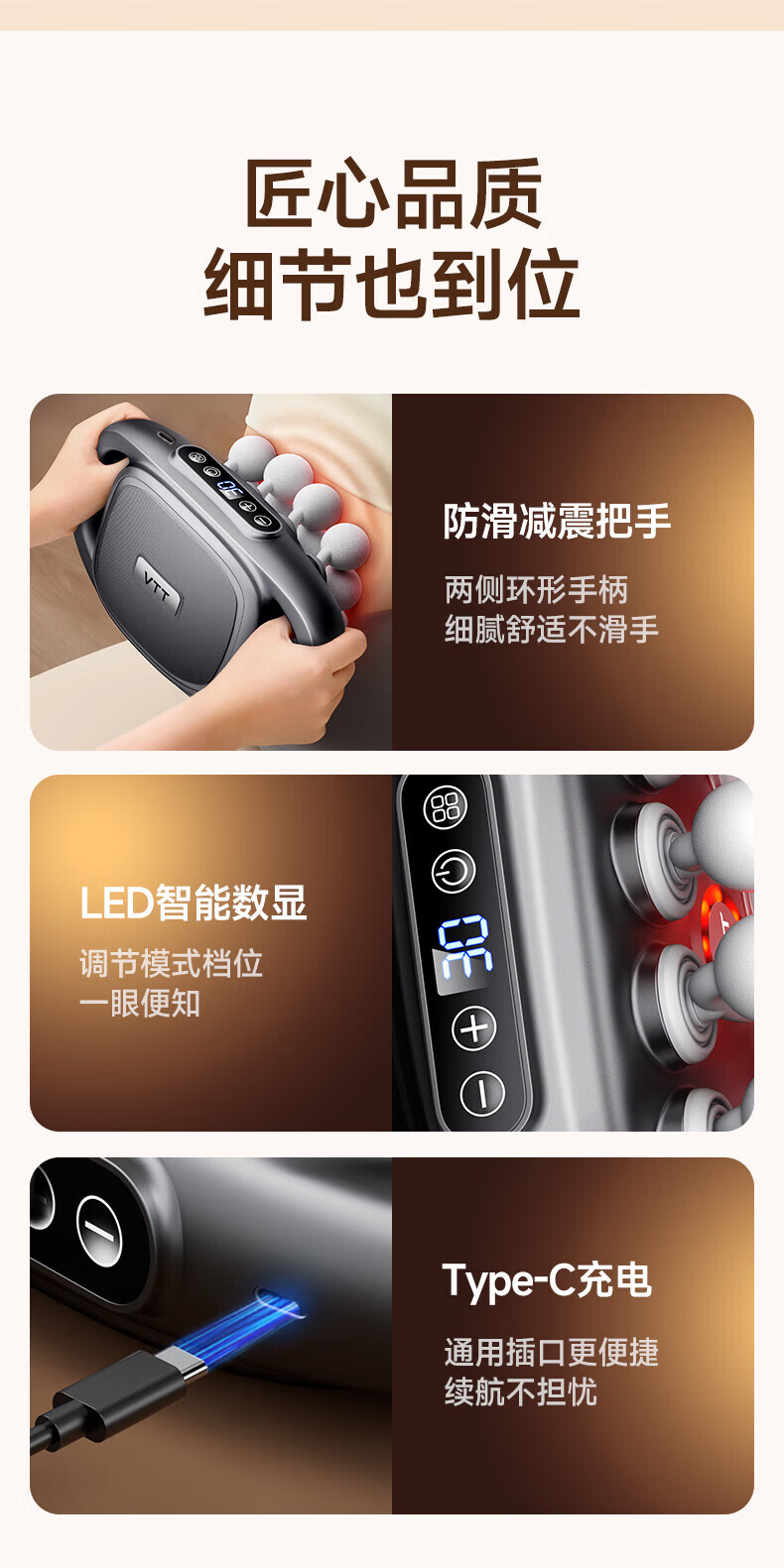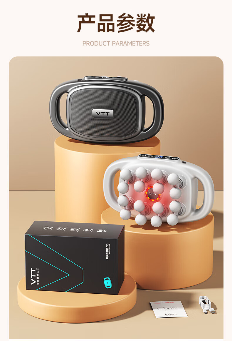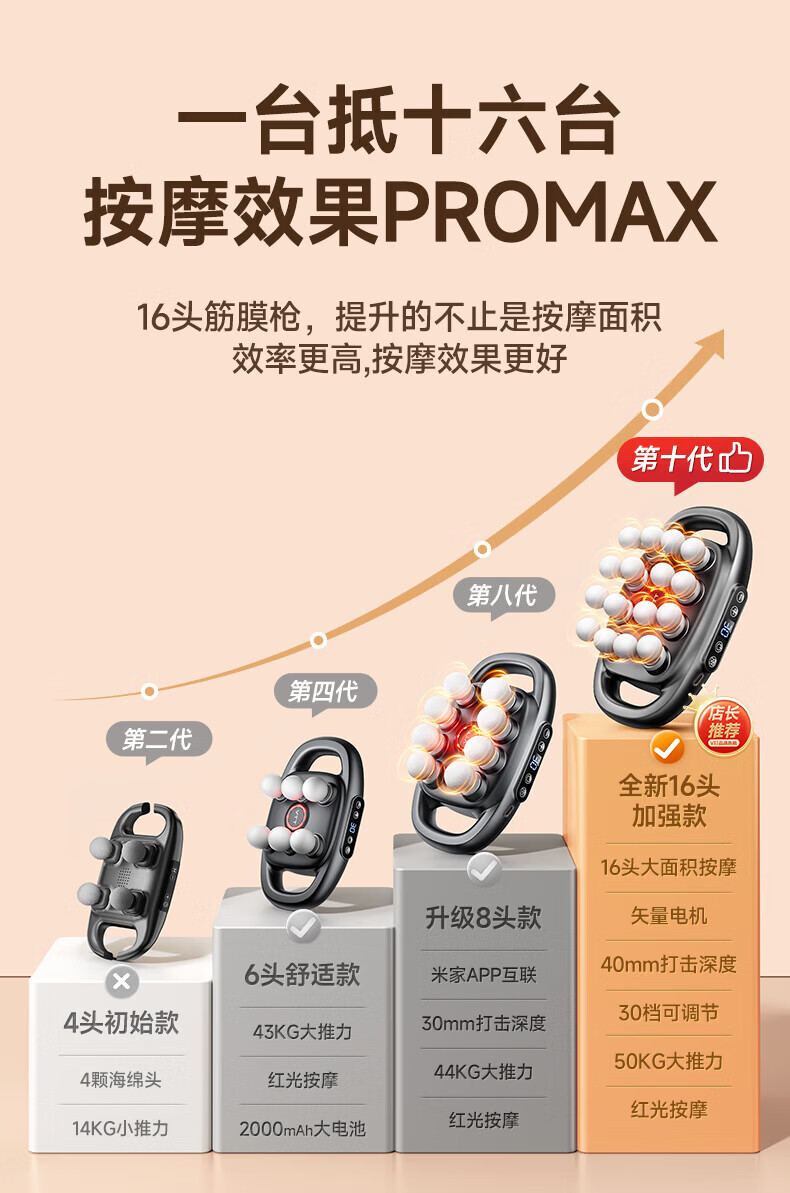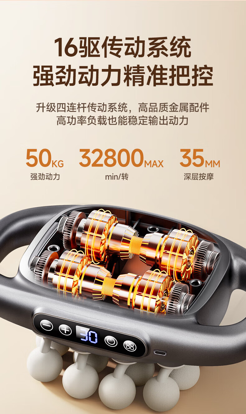 VTT【德国】十六头筋膜枪按摩器肩颈腰背全自动揉捏腿部全身深层肌肉电动颈膜小腿仪三八节女神礼物 【16头顶配款】30档+动力锂电池+德国品牌电机灰