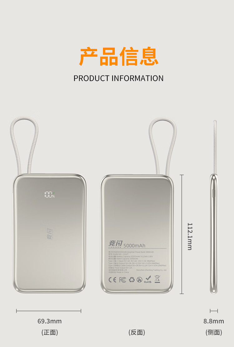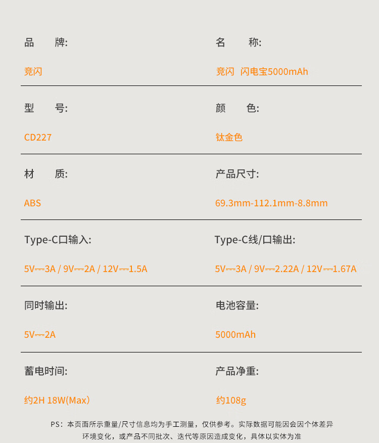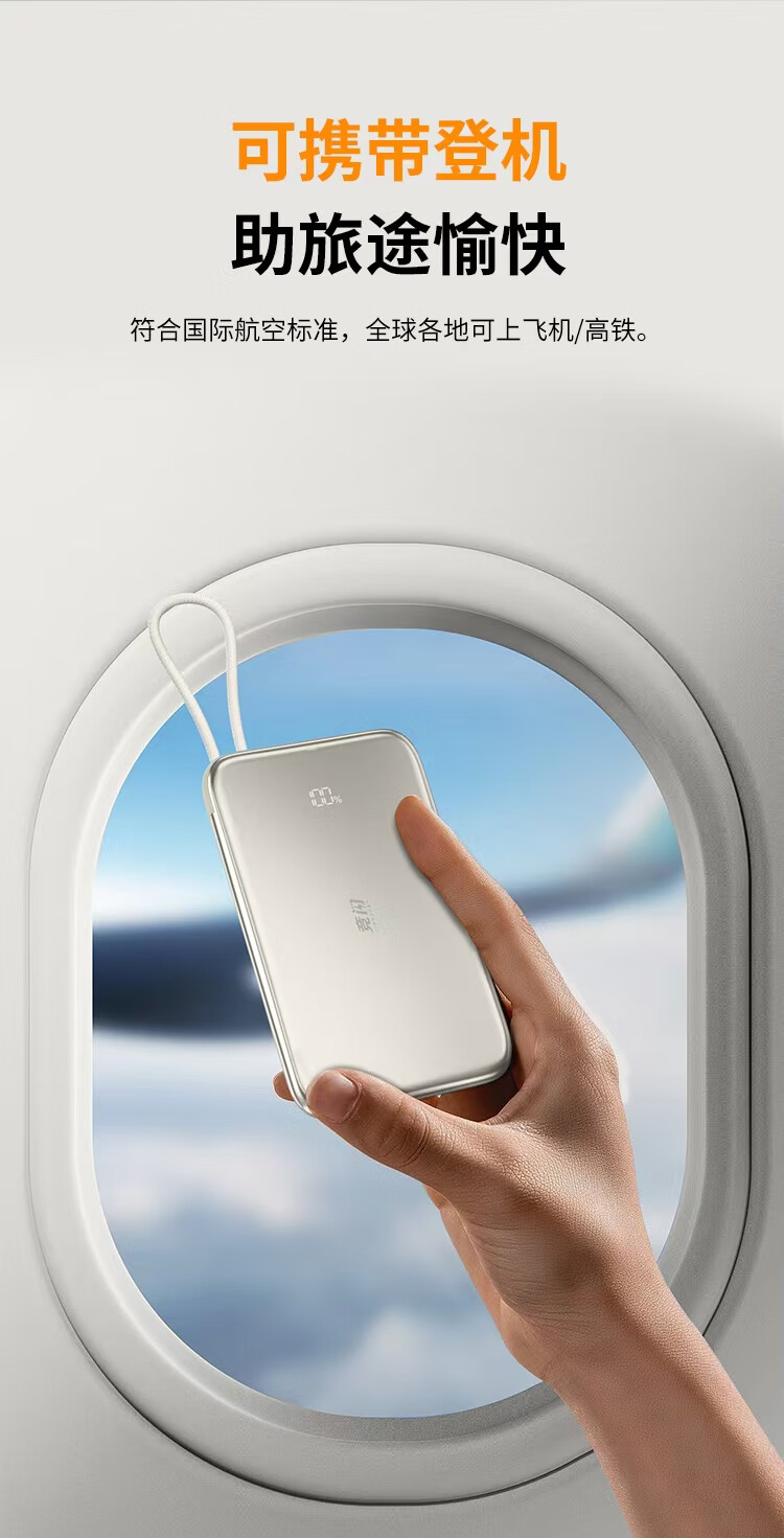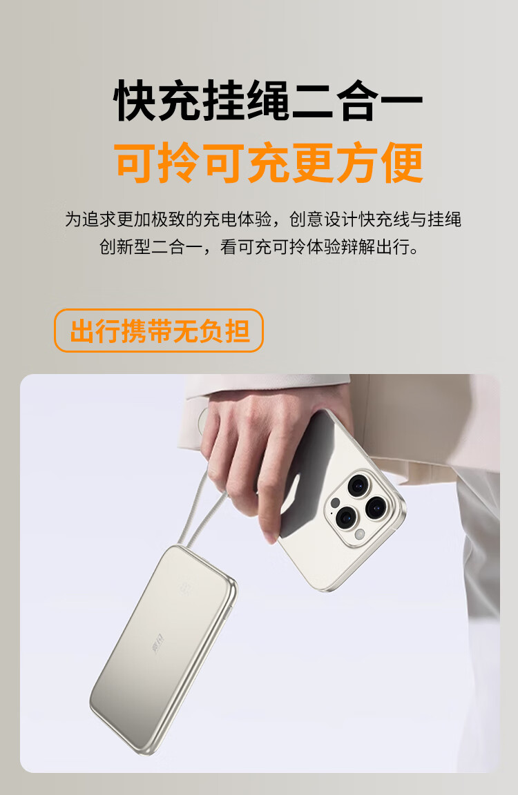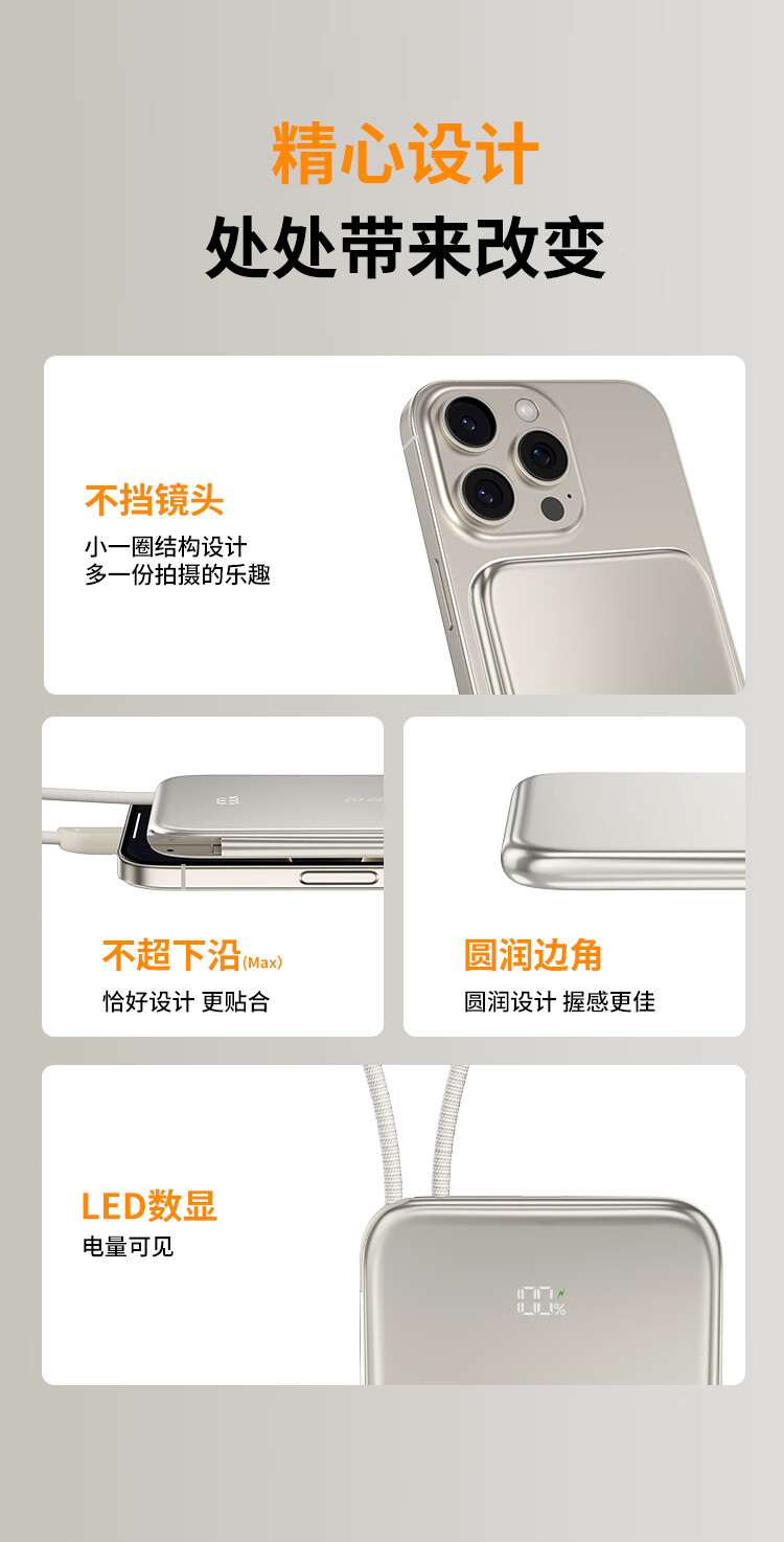 竞闪磁吸充电宝5000毫安PD20W双向双线快充超薄大容量小巧便携移动电源适用苹果16/15Pro小米华为手机 双线双向快充PD20W【磁吸超薄金】5000mAh