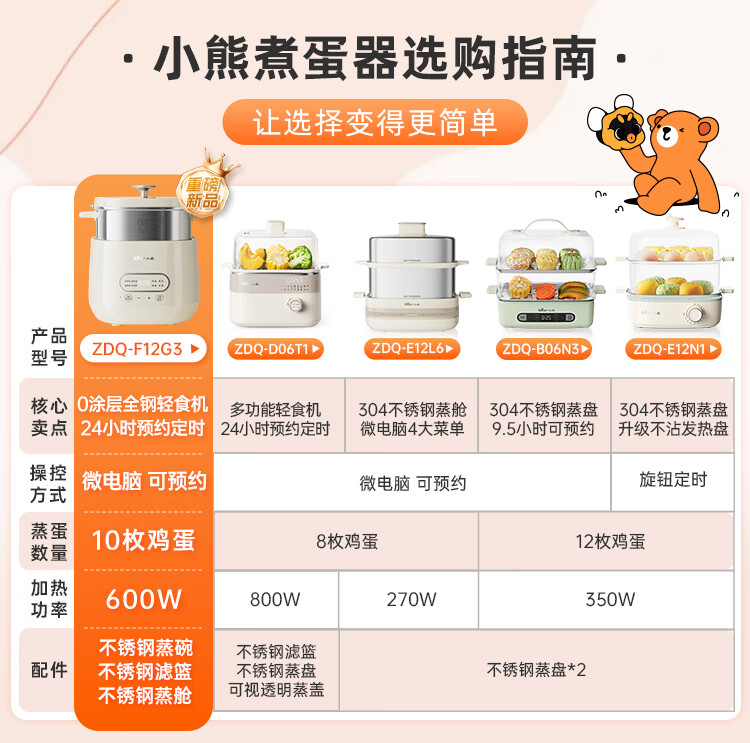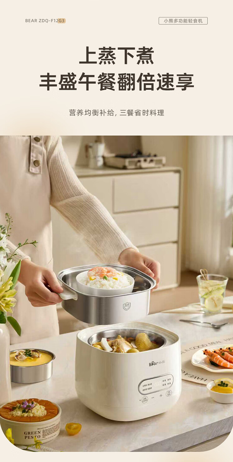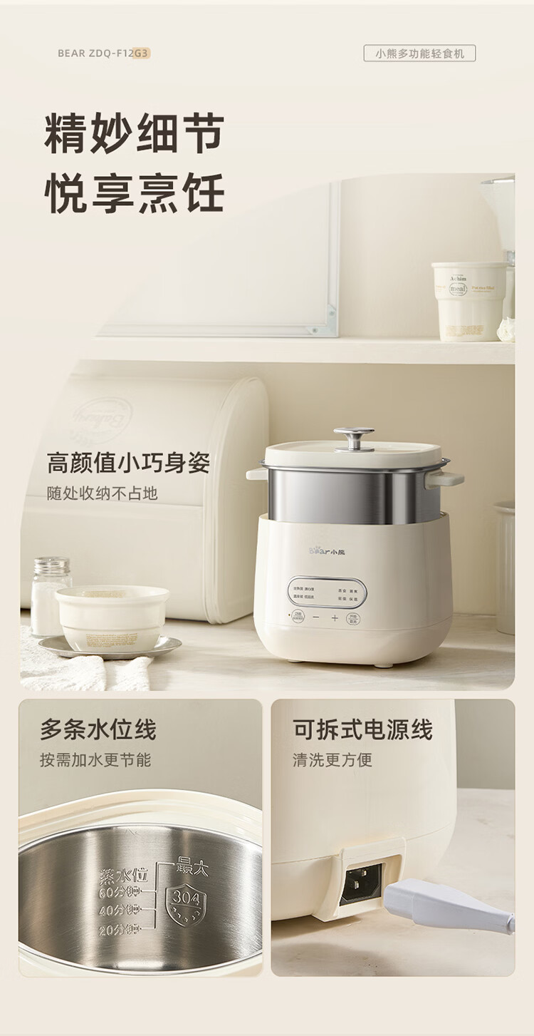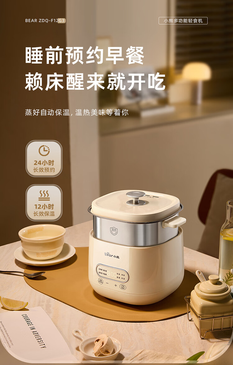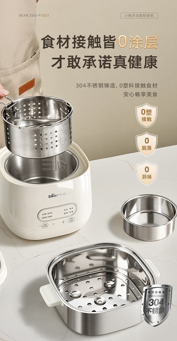 小熊(Bear)煮蛋器 蒸蛋器 自动断电早餐蒸煮一体机 定时预约蒸蛋神器小型一人用 0涂层不锈钢轻食机ZDQ-F12G3