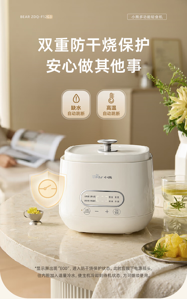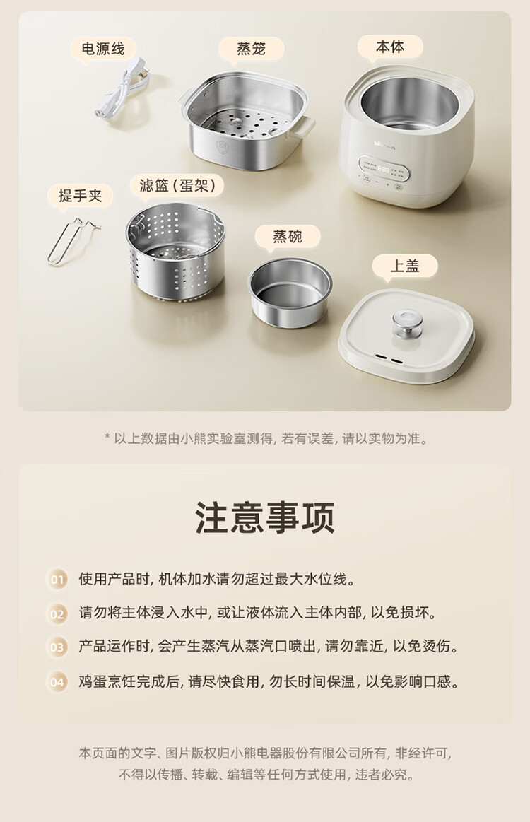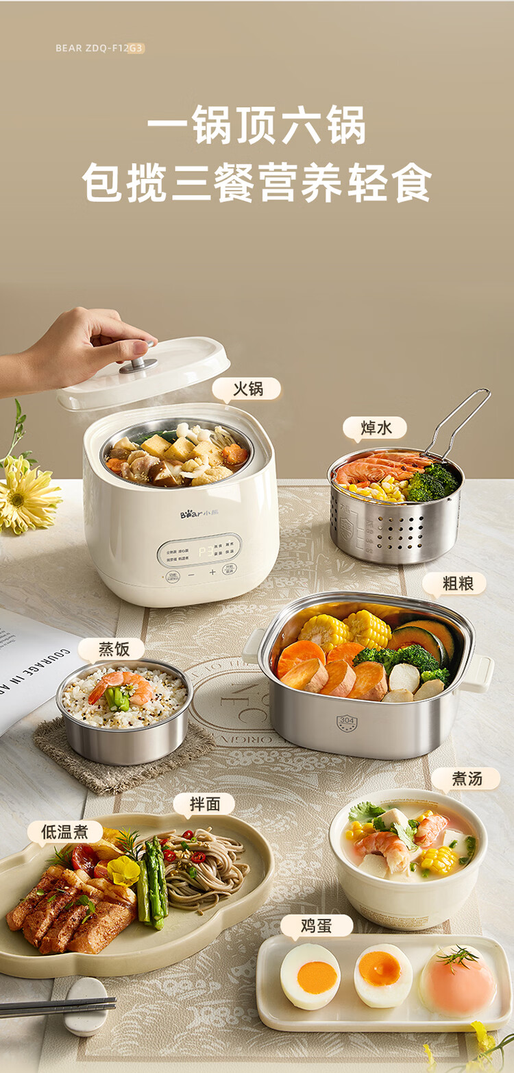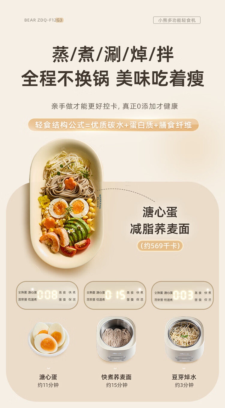 小熊(Bear)煮蛋器 蒸蛋器 自动断电早餐蒸煮一体机 定时预约蒸蛋神器小型一人用 0涂层不锈钢轻食机ZDQ-F12G3