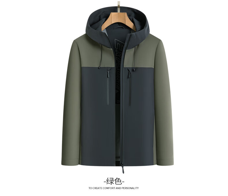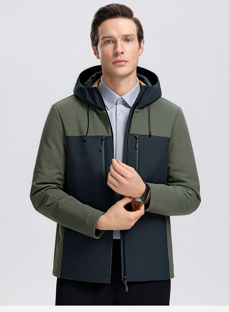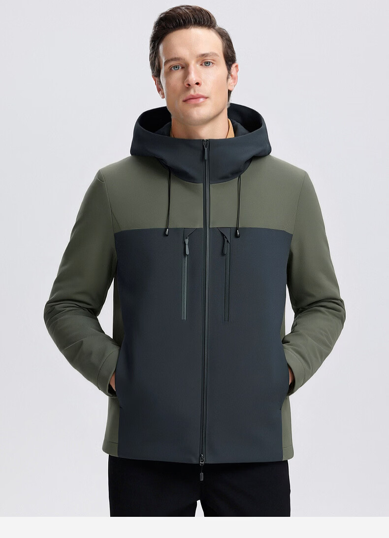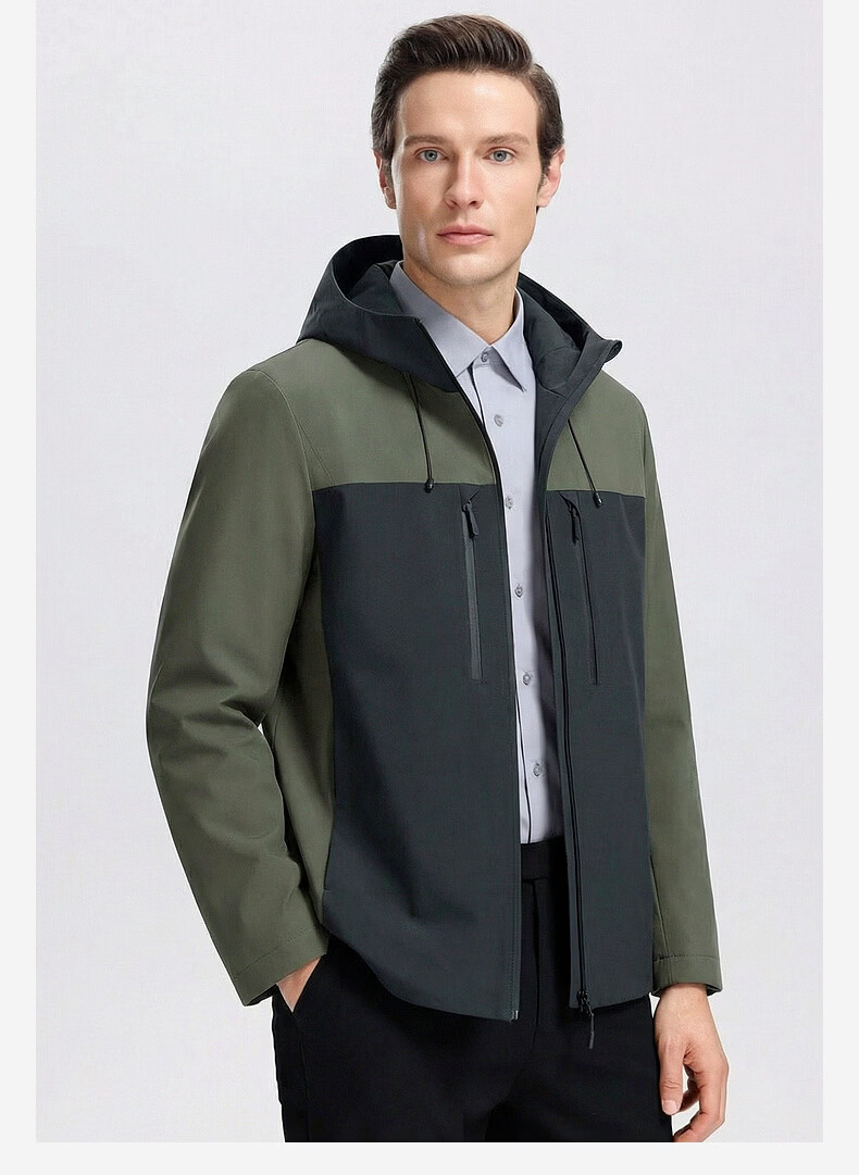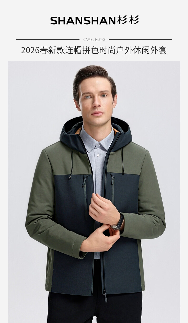 SHANSHAN杉杉男士外套夹克2026春新款连帽拼色时尚上衣户外休闲百搭衣服男 绿色 M /170