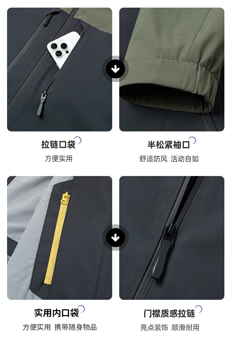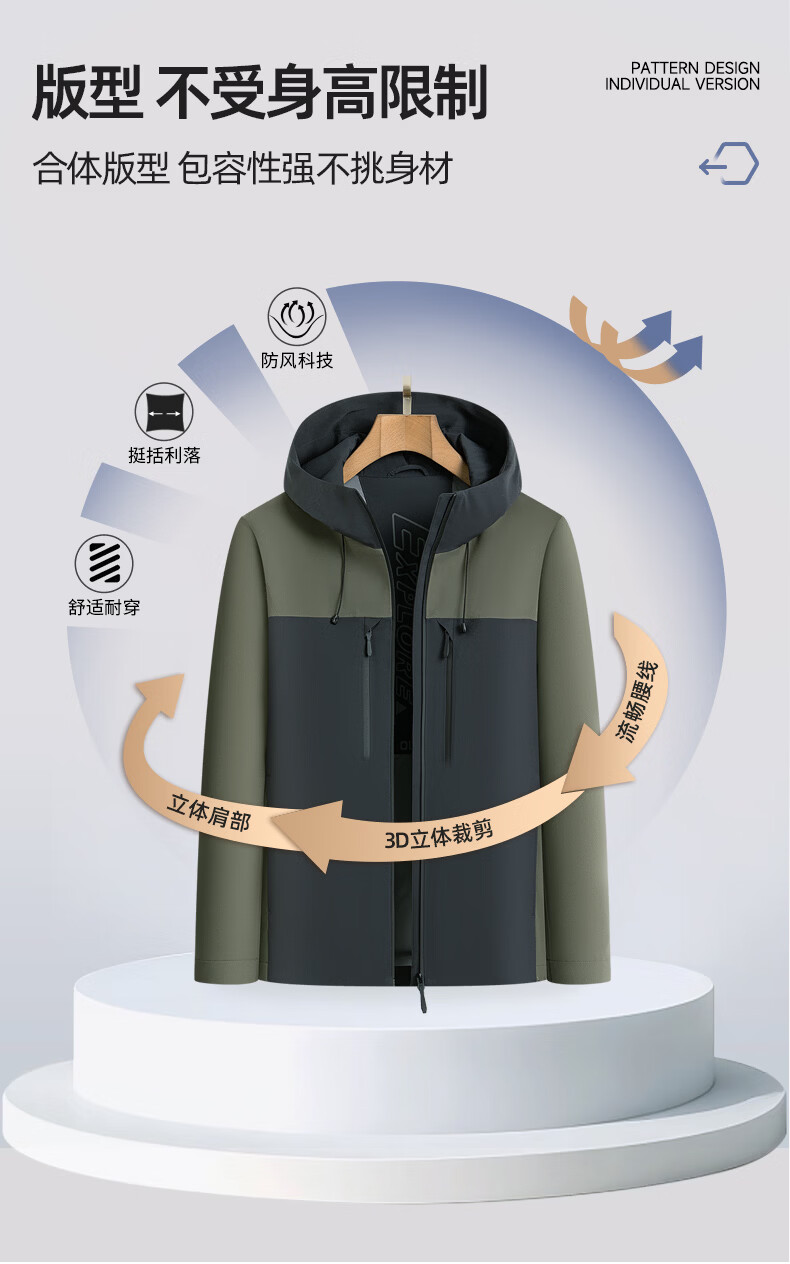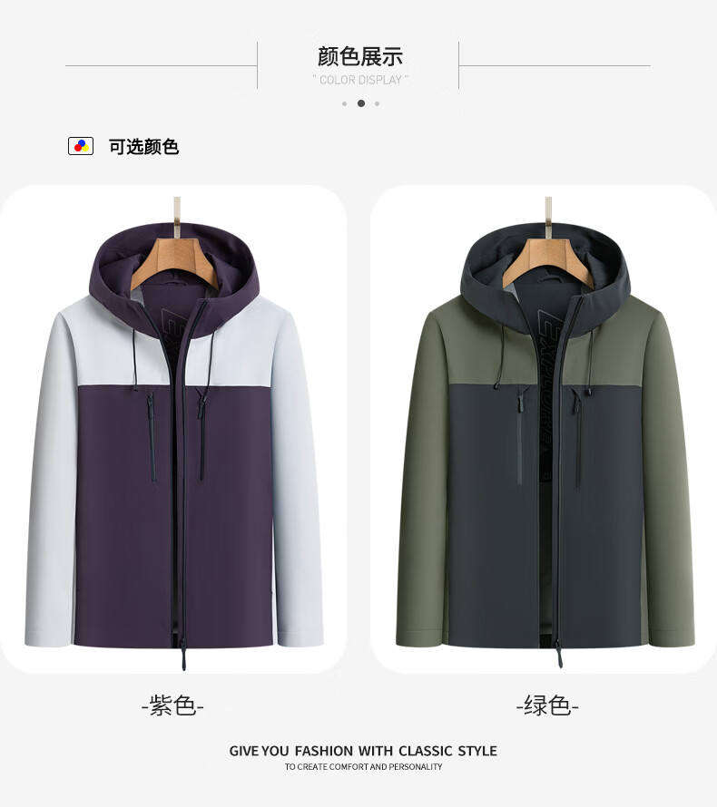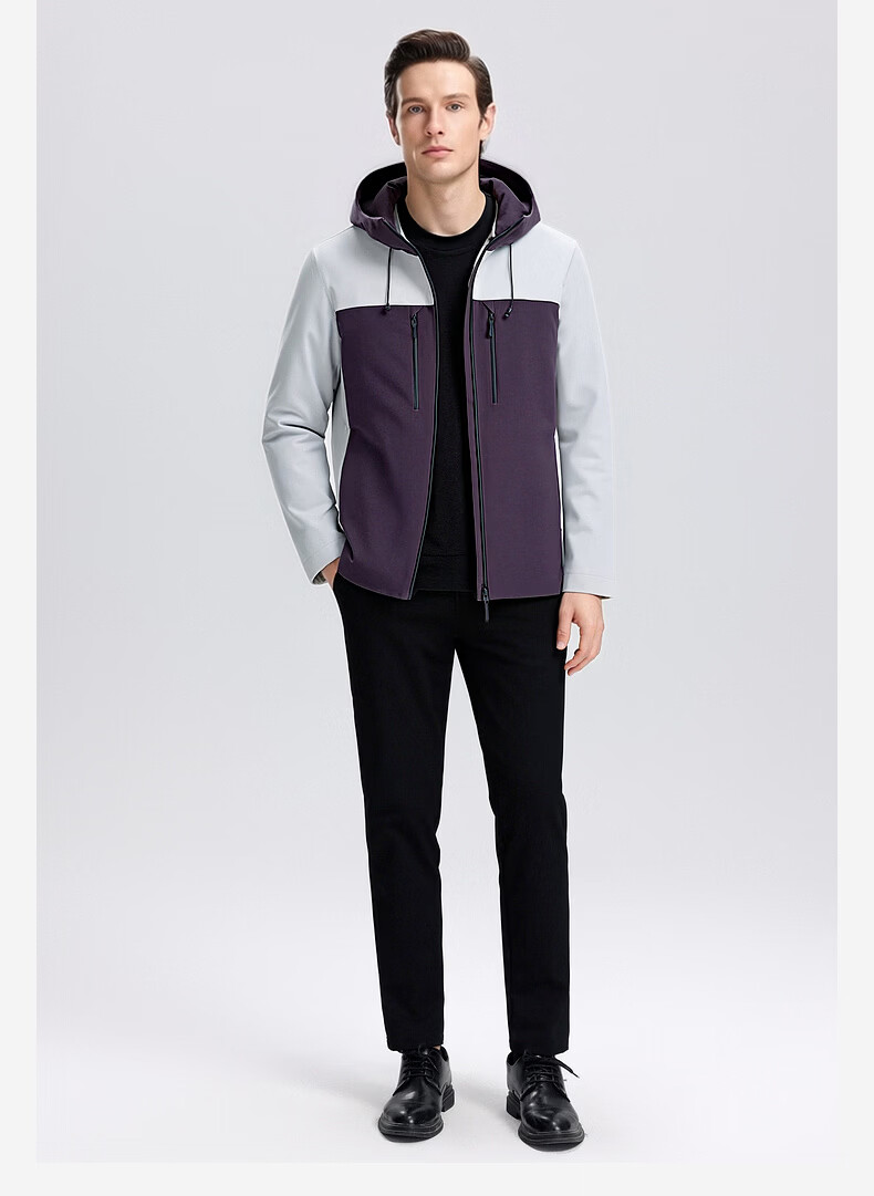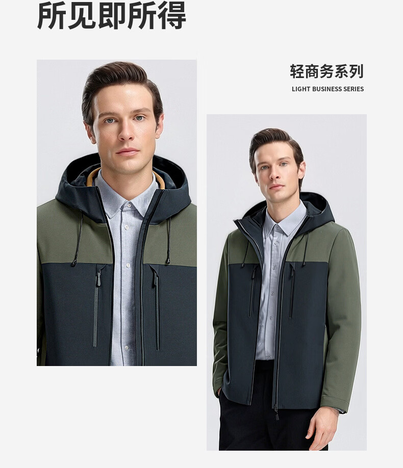 SHANSHAN杉杉男士外套夹克2026春新款连帽拼色时尚上衣户外休闲百搭衣服男 绿色 M /170