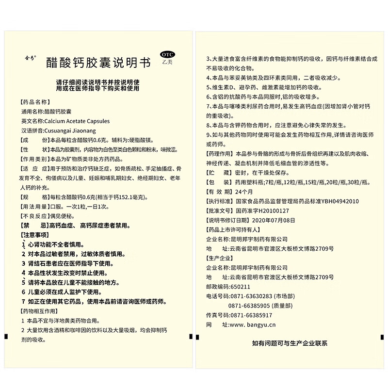 金丐 醋酸钙胶囊 0.6g*30粒 骨质疏松手足抽搐症骨发育不全佝偻病儿童老年人补钙
