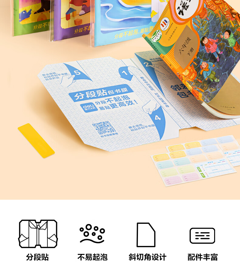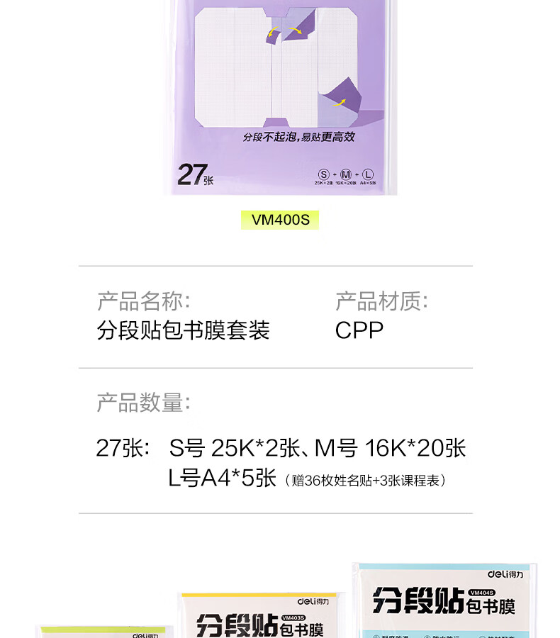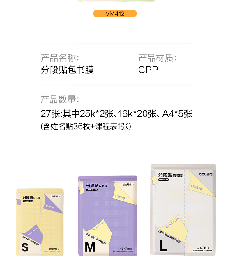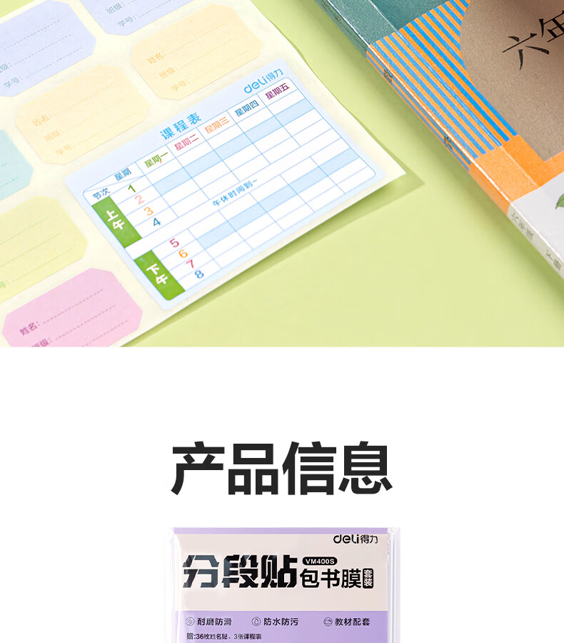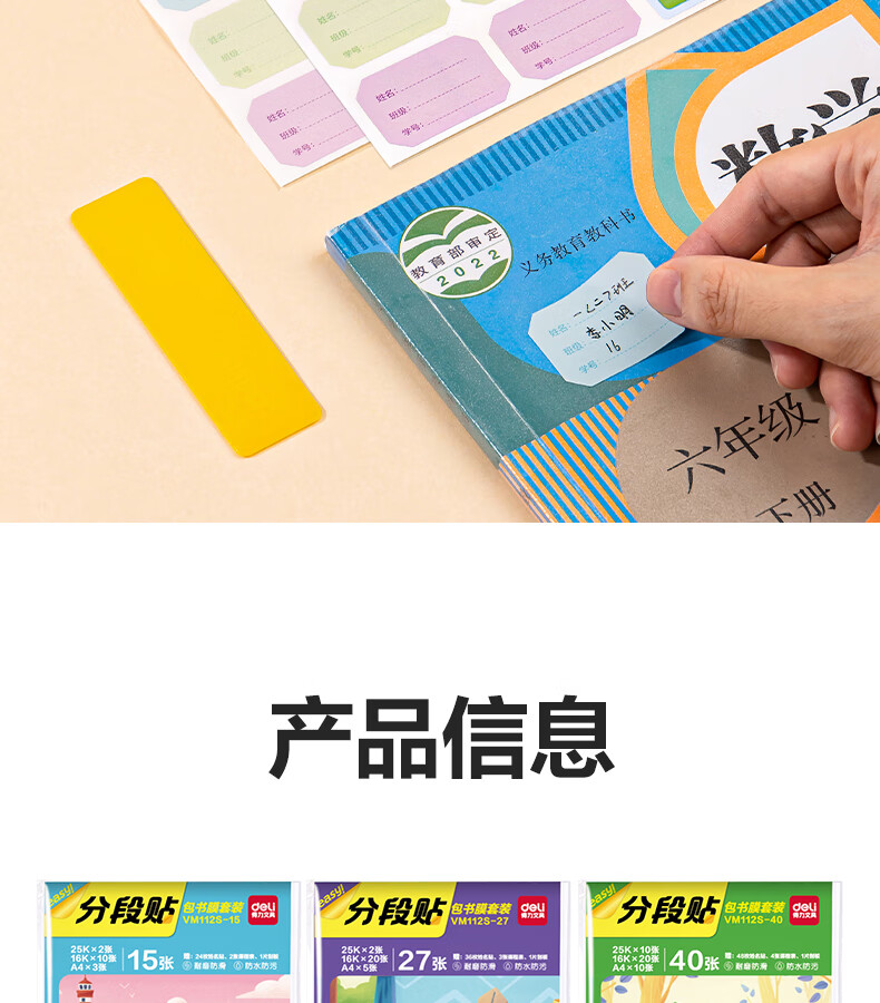 得力(deli)16K/10页透明磨砂自粘包书皮包书膜带切角 附带姓名贴装开学文具/VM403生日礼物