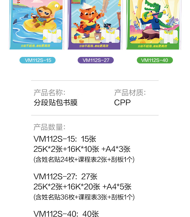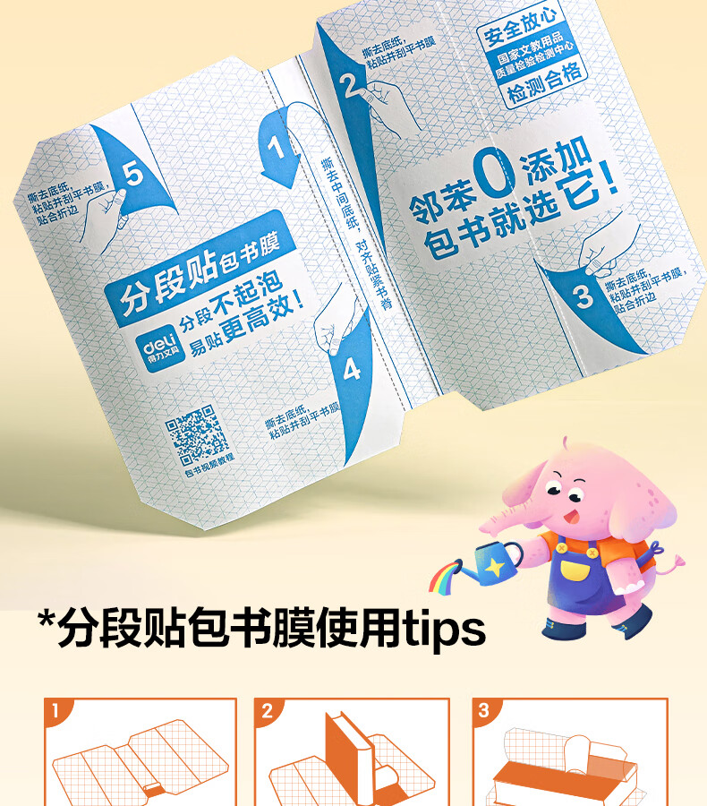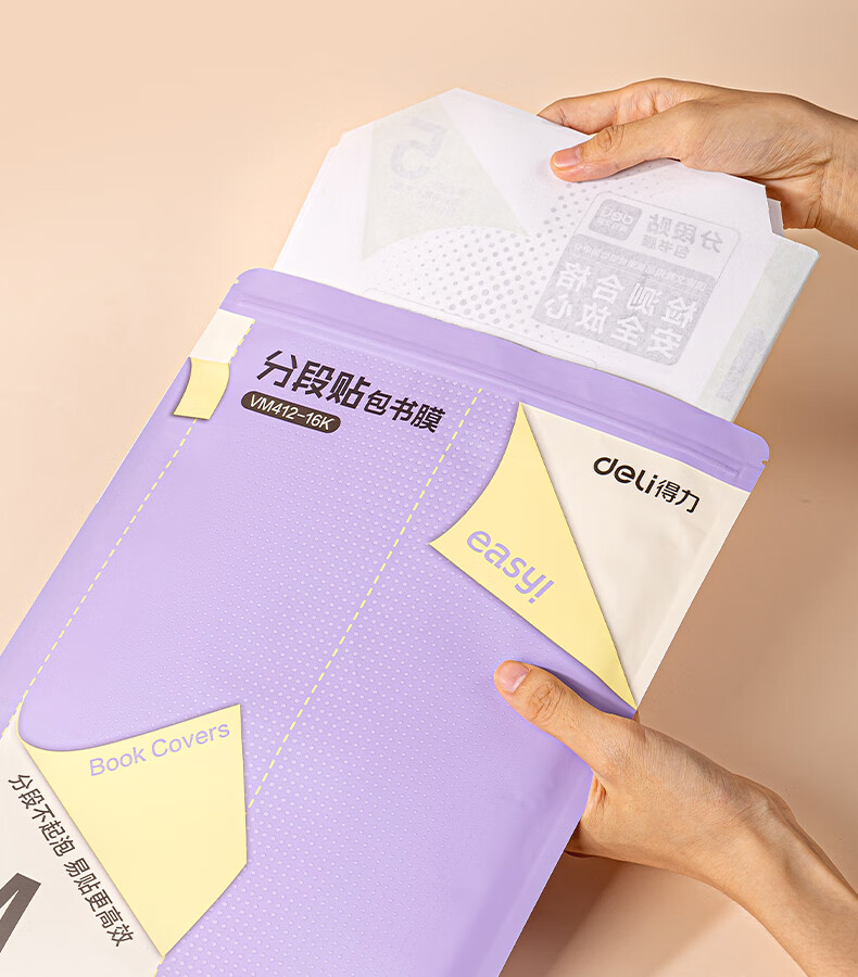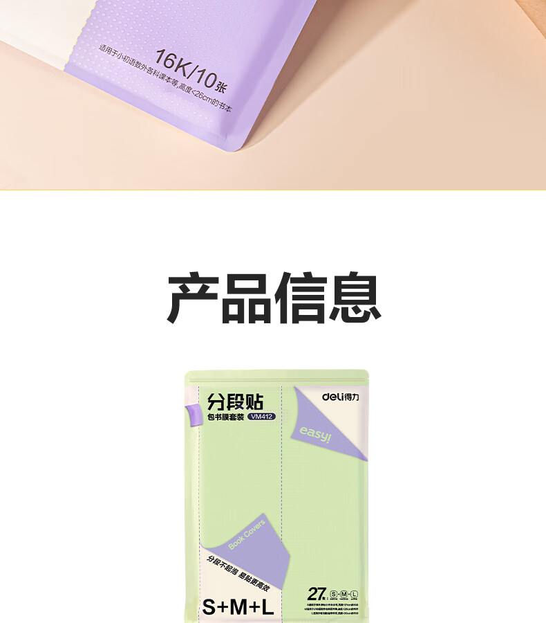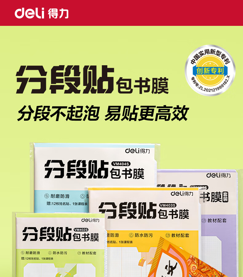 得力(deli)16K/10页透明磨砂自粘包书皮包书膜带切角 附带姓名贴装开学文具/VM403生日礼物