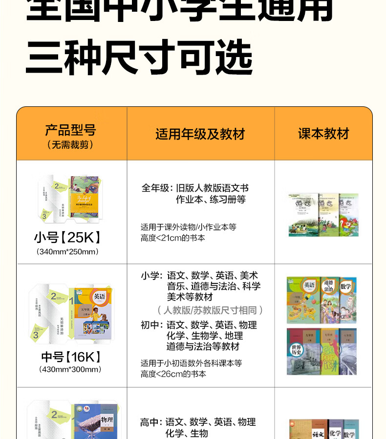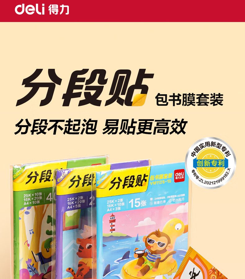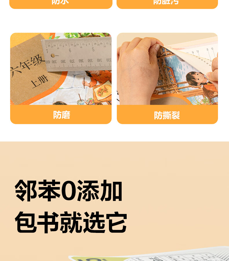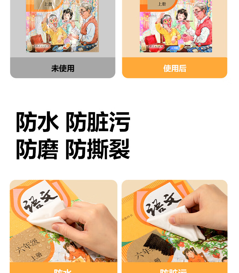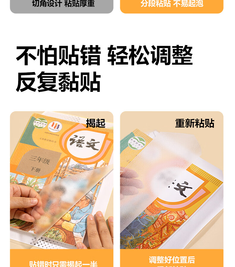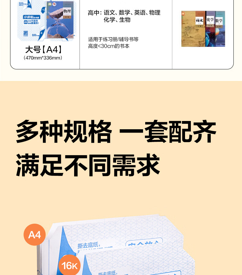 得力分段式包书皮书套包书膜书皮纸自粘透明磨砂加厚16K小学生一年级A4一体书壳全套塑料防水课本保护 【10张16K】分段式书膜