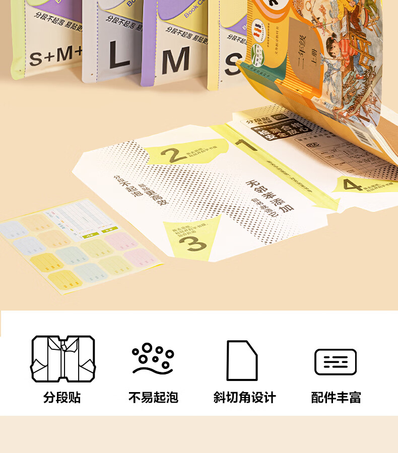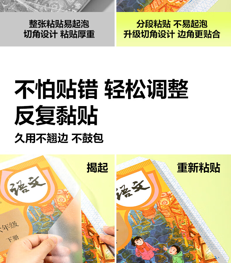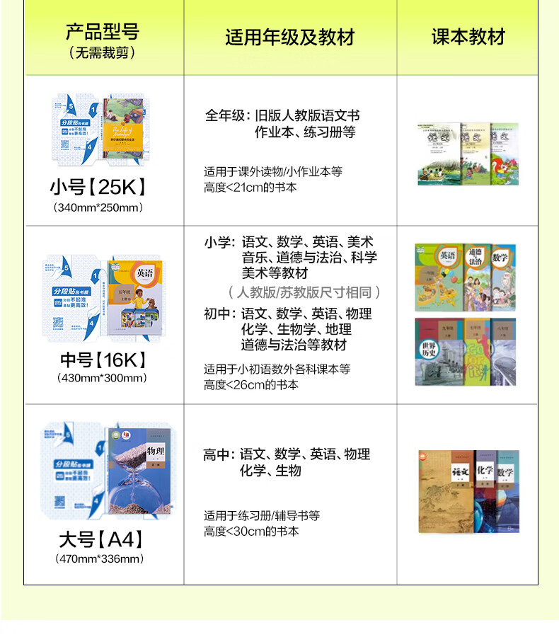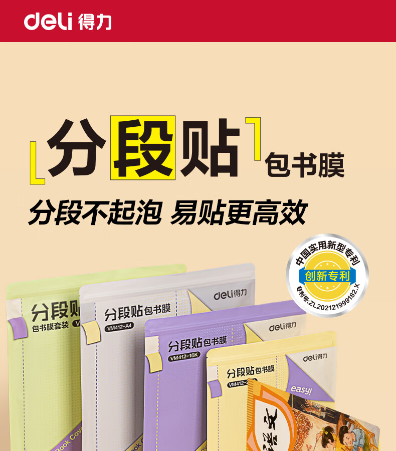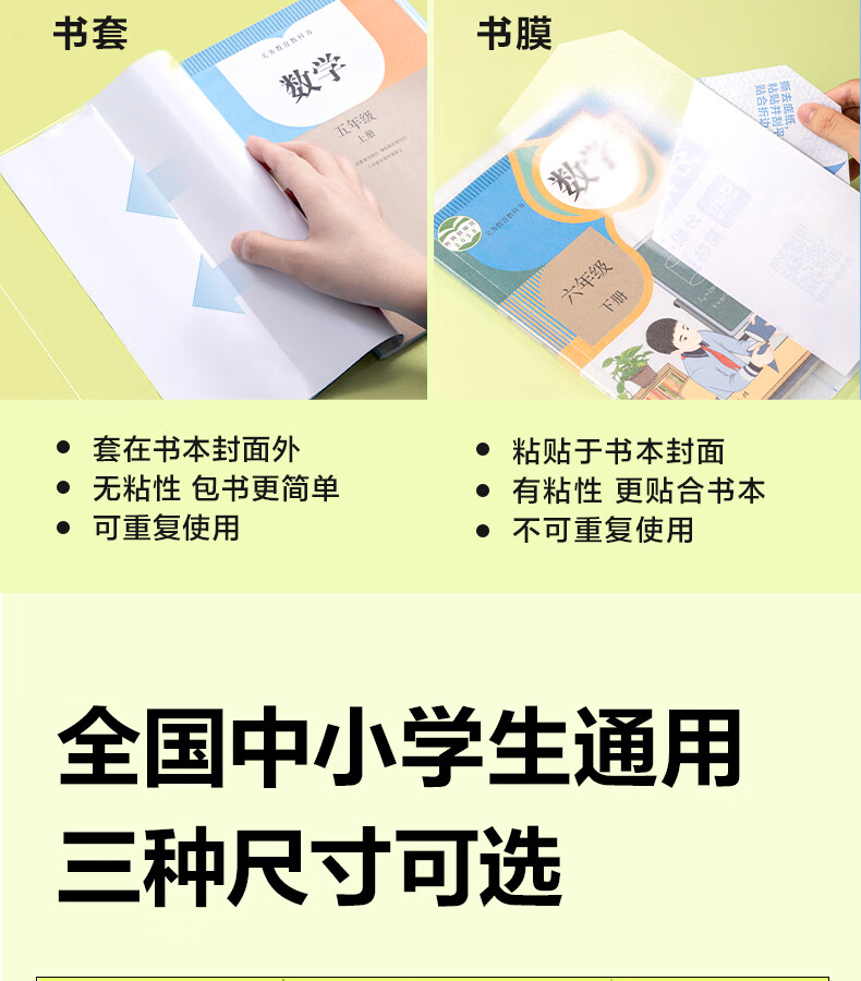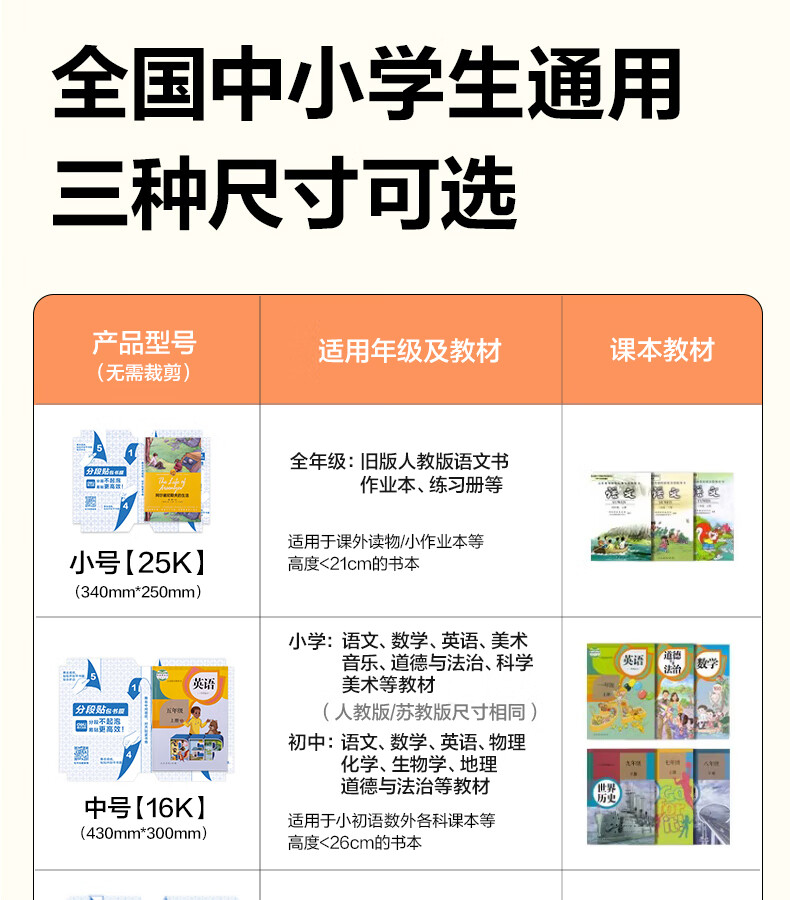 得力分段式包书皮书套包书膜书皮纸自粘透明磨砂加厚16K小学生一年级A4一体书壳全套塑料防水课本保护 【10张16K】分段式书膜