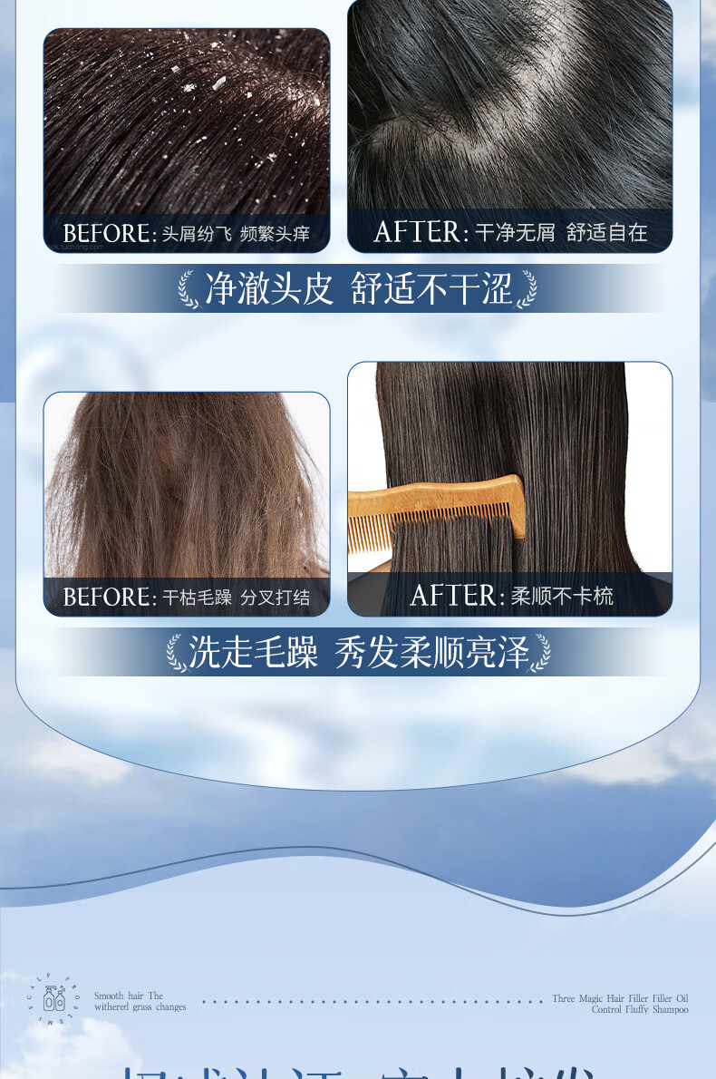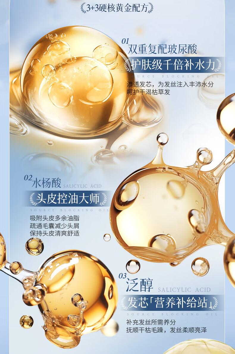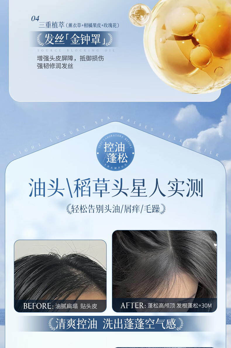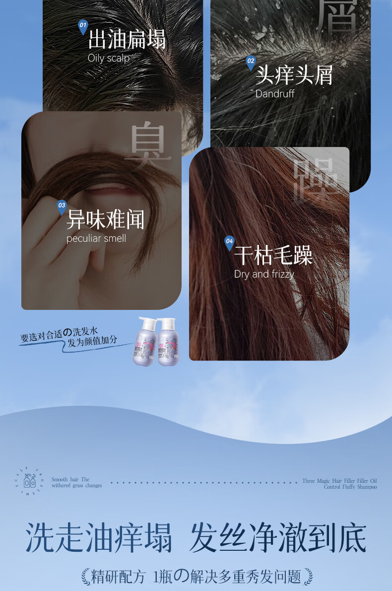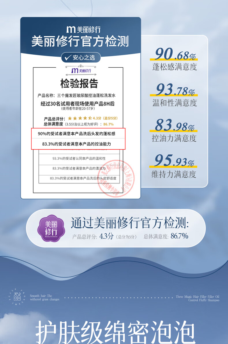 三个魔发匠玻尿酸控油蓬松洗发水 洗护套装头皮补水舒痒男女士氨基酸洗头膏 控油 400ml*1瓶 送补充装洗发水