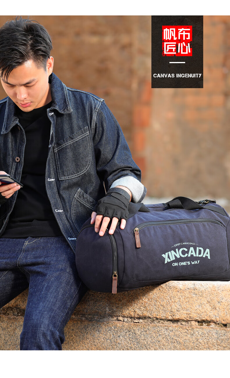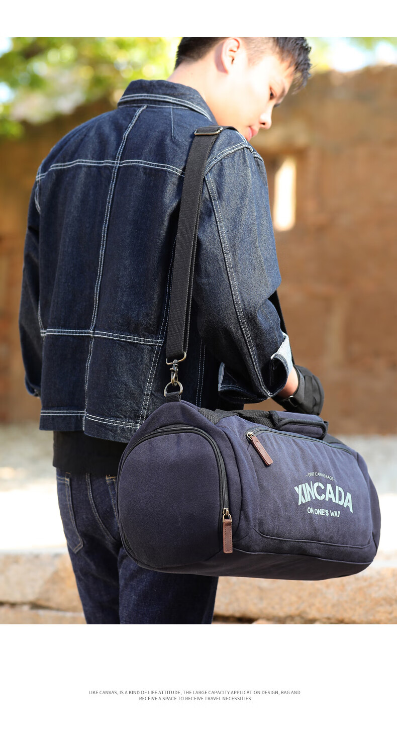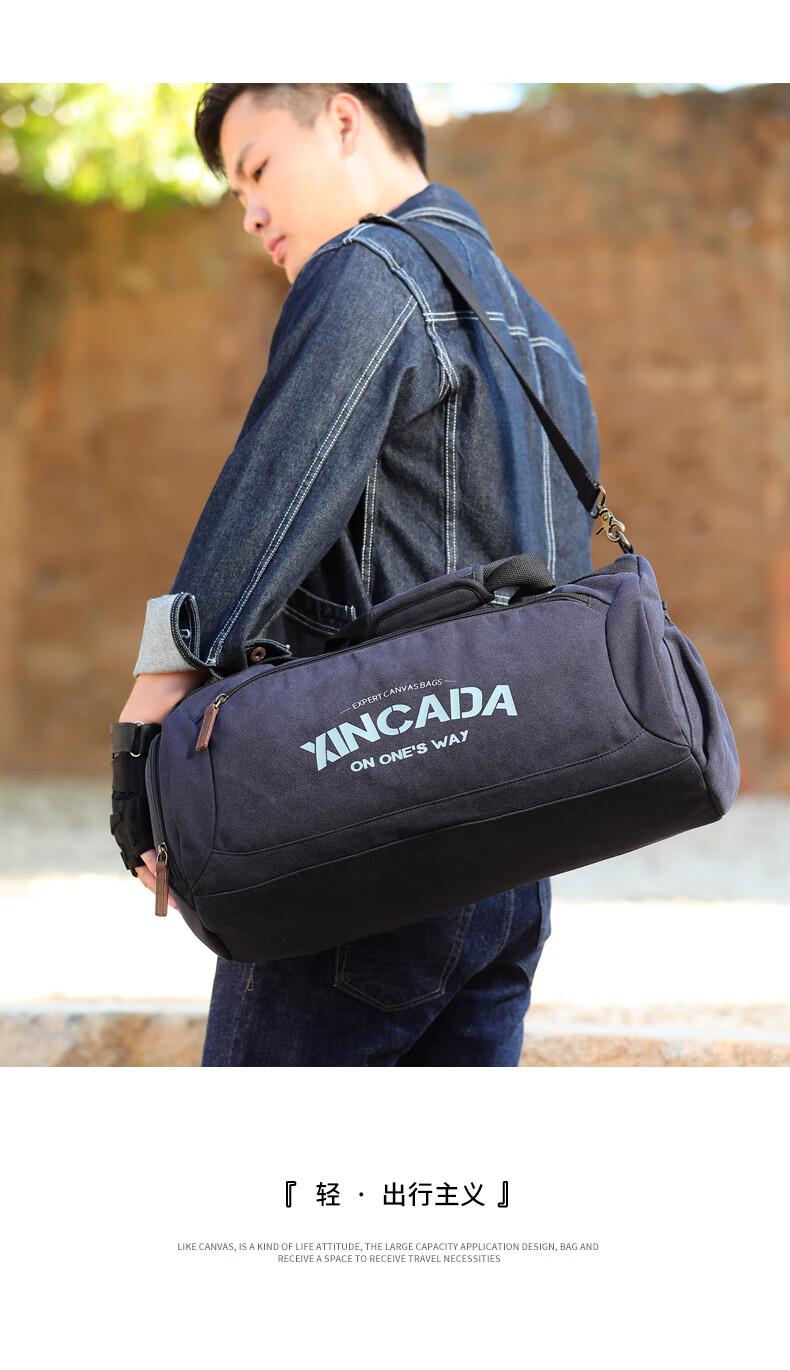 新潮代旅行包男大容量干湿分离健身包单肩训练运动斜挎包游泳手提行李包 蓝黑色【独立鞋仓】