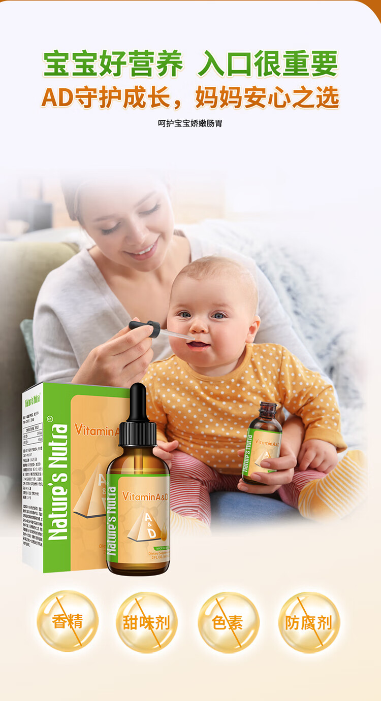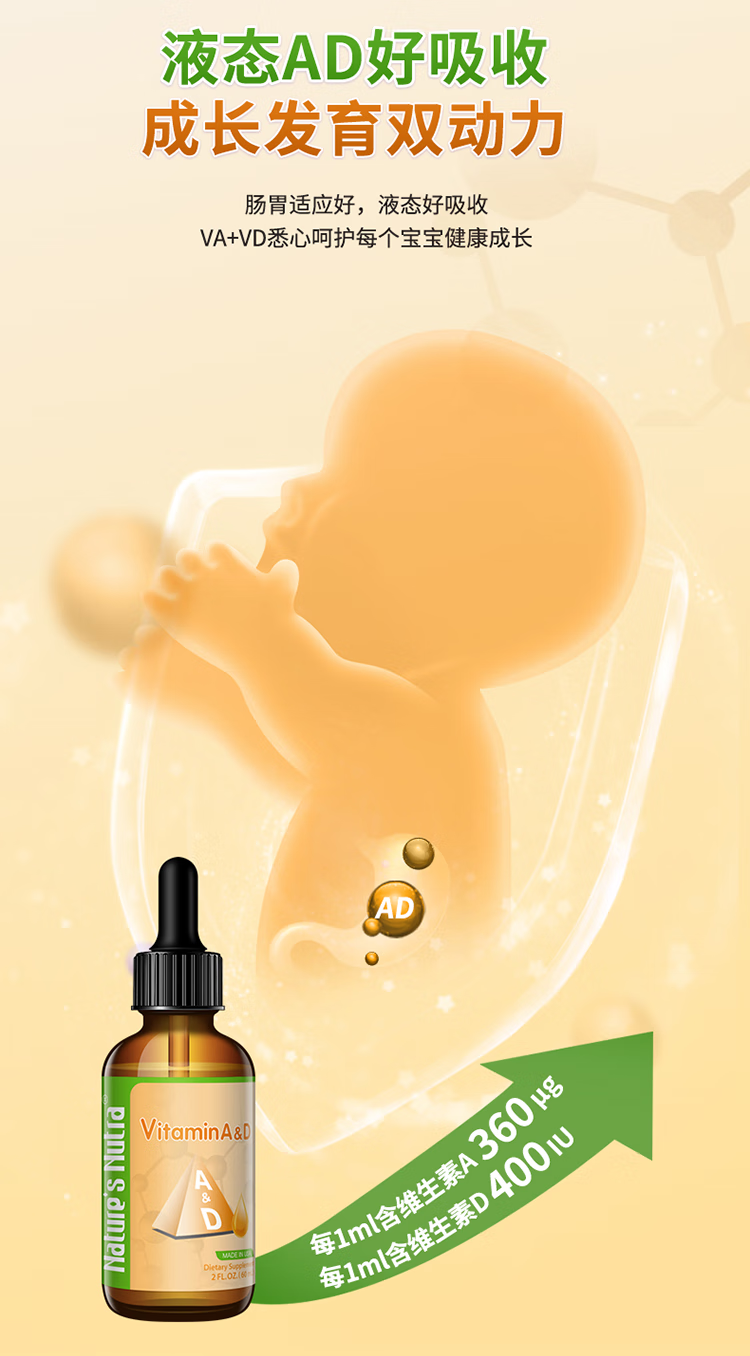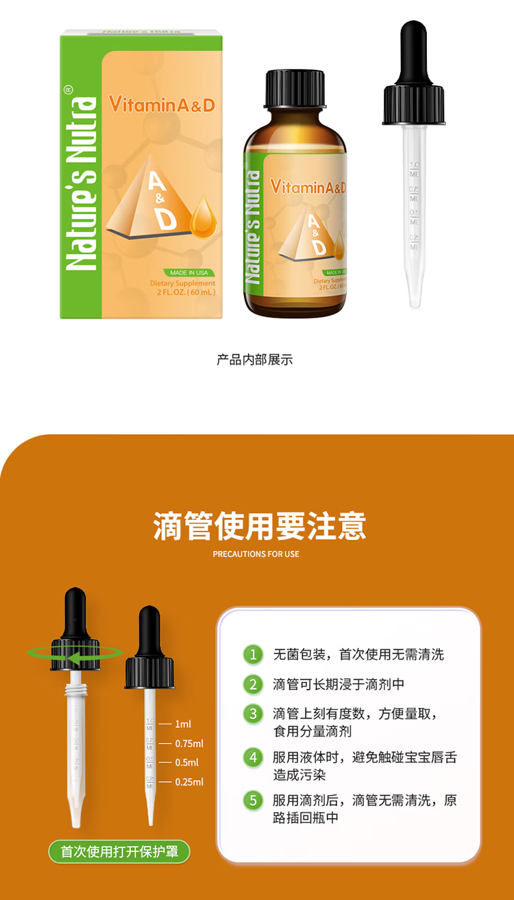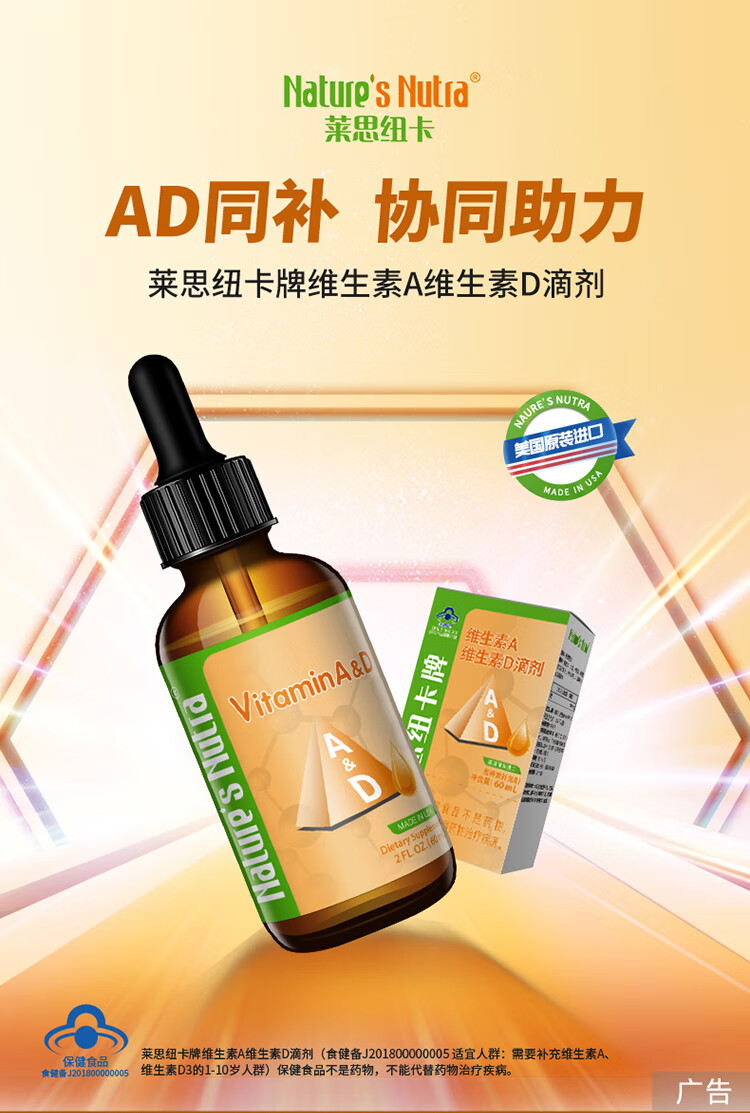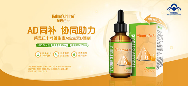 莱思纽卡美国进口维生素AD滴剂婴幼儿童维生素A维生素D60ml 60ml*1盒