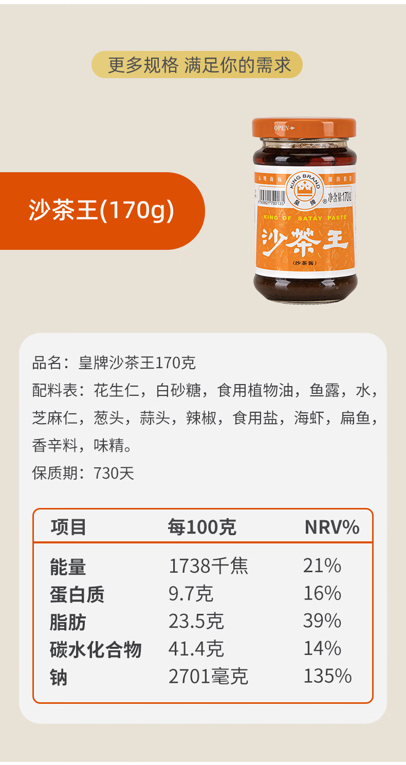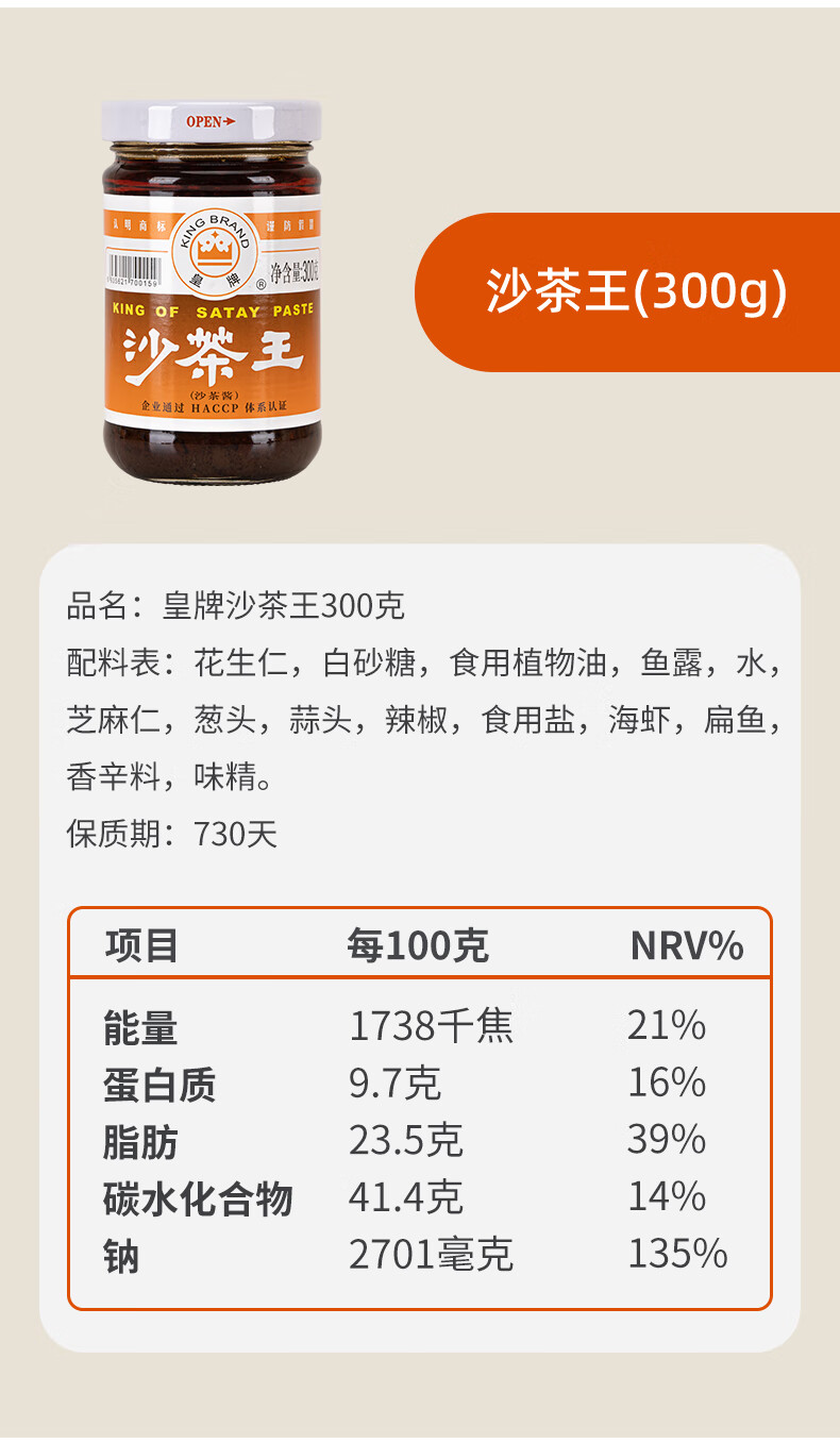 皇牌沙茶王300g 沙茶酱火锅蘸料底料沙茶面酱 汕头市非物质文化遗产