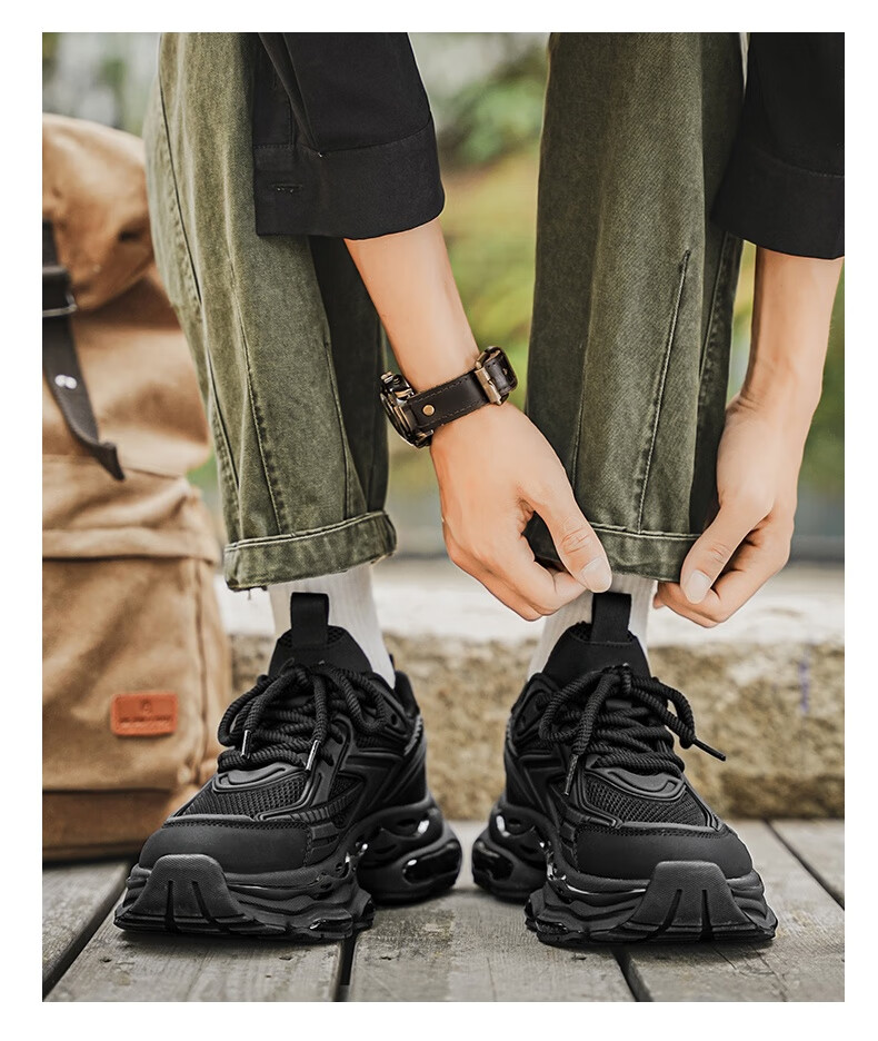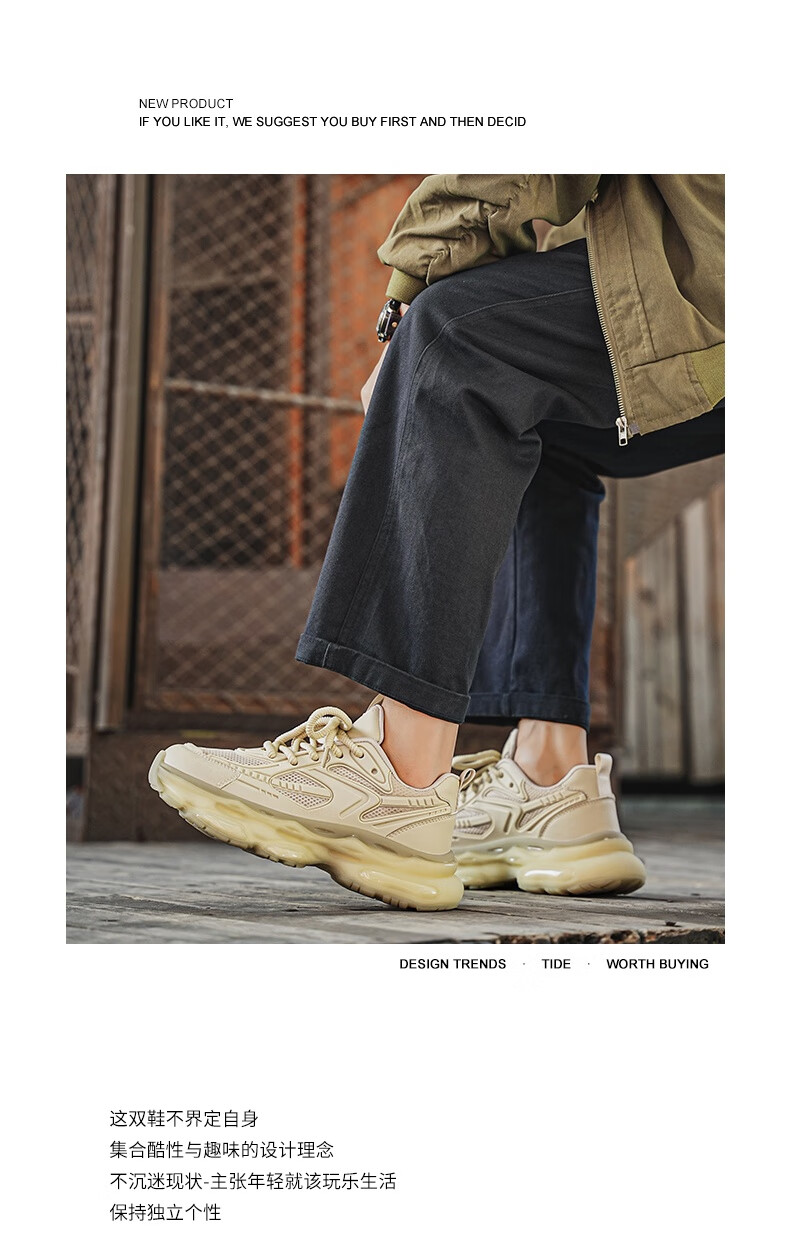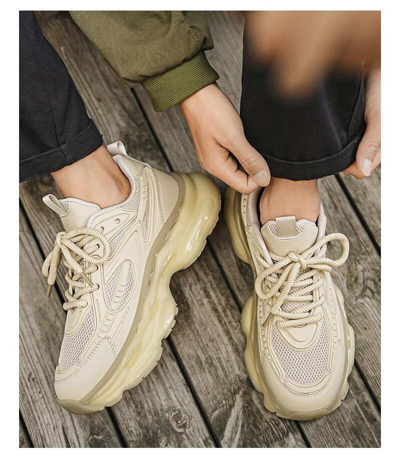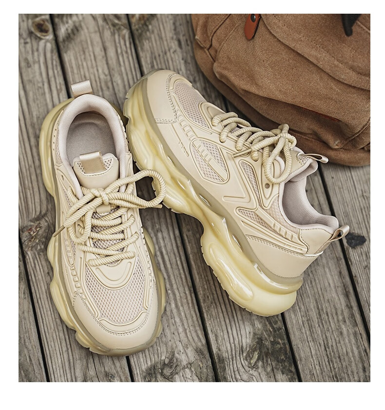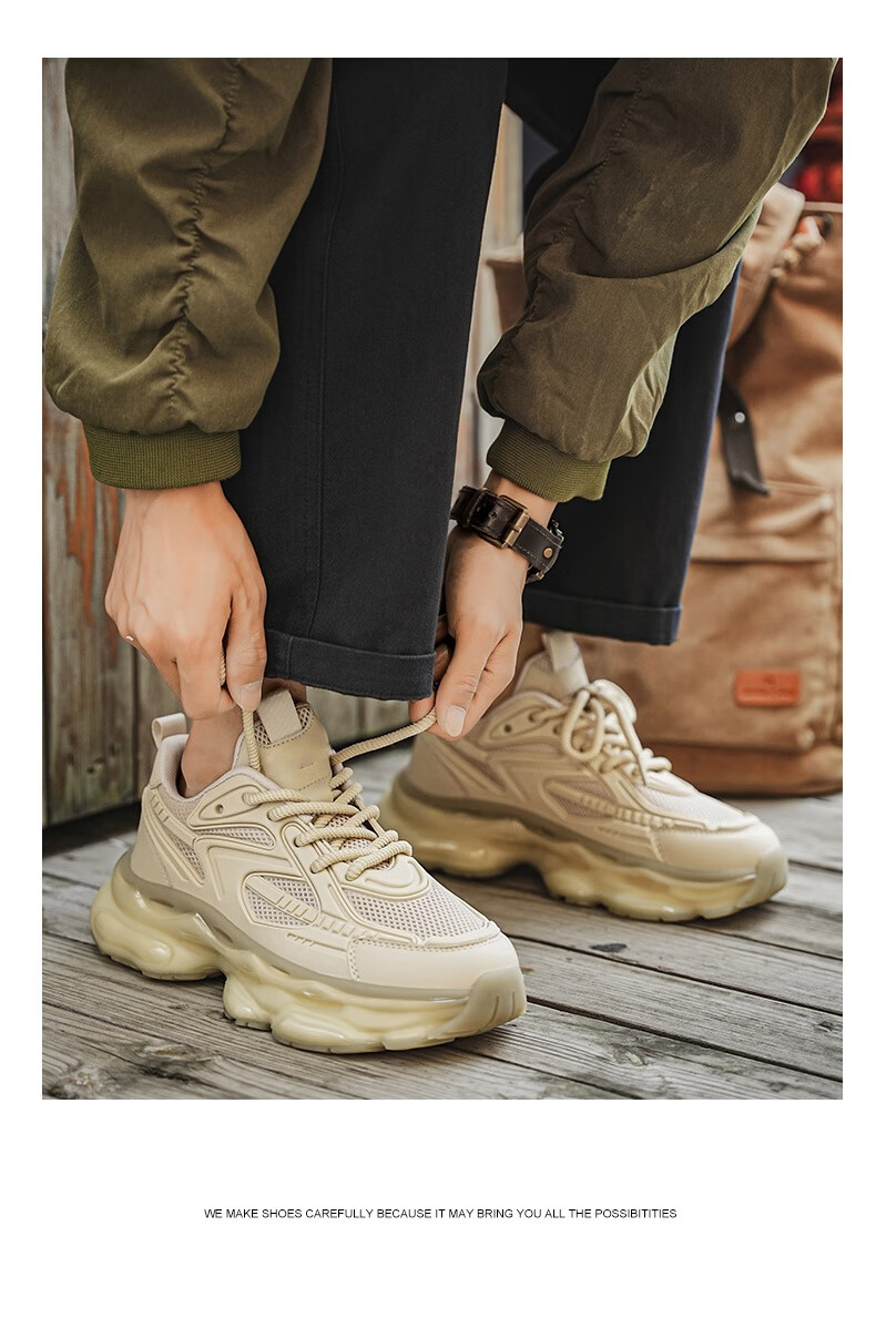稻草人(MEXICAN)欧洲站男鞋2026新款冬季跑步减震气垫鞋休闲机甲老爹运动鞋 卡其【加绒款】 43