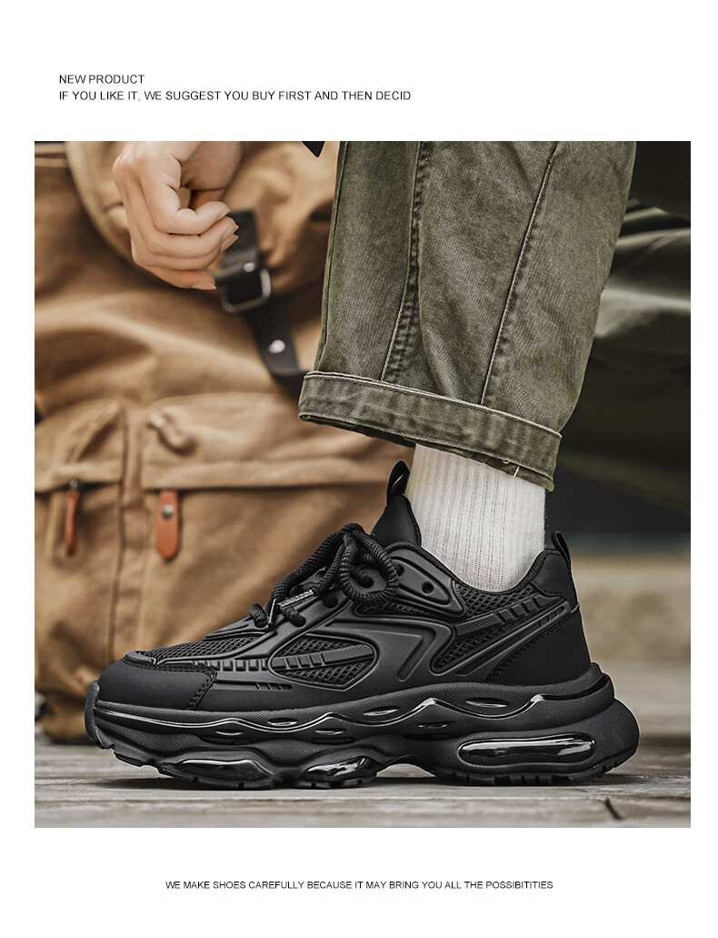 红蜻蜓男鞋运动鞋休闲皮鞋男士舒适旅游鞋软底品牌鞋子WXA343971黑色42