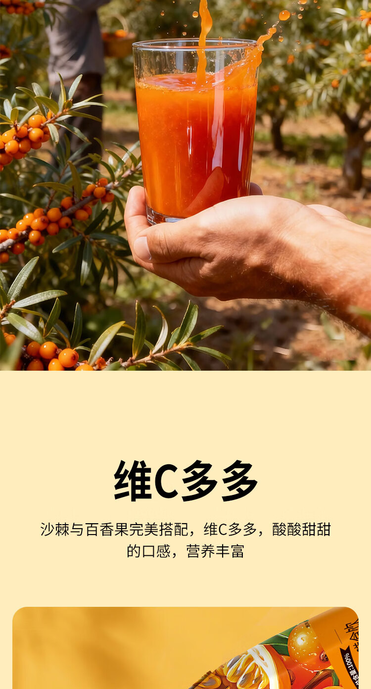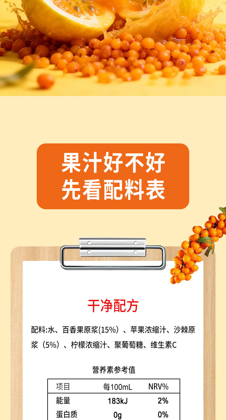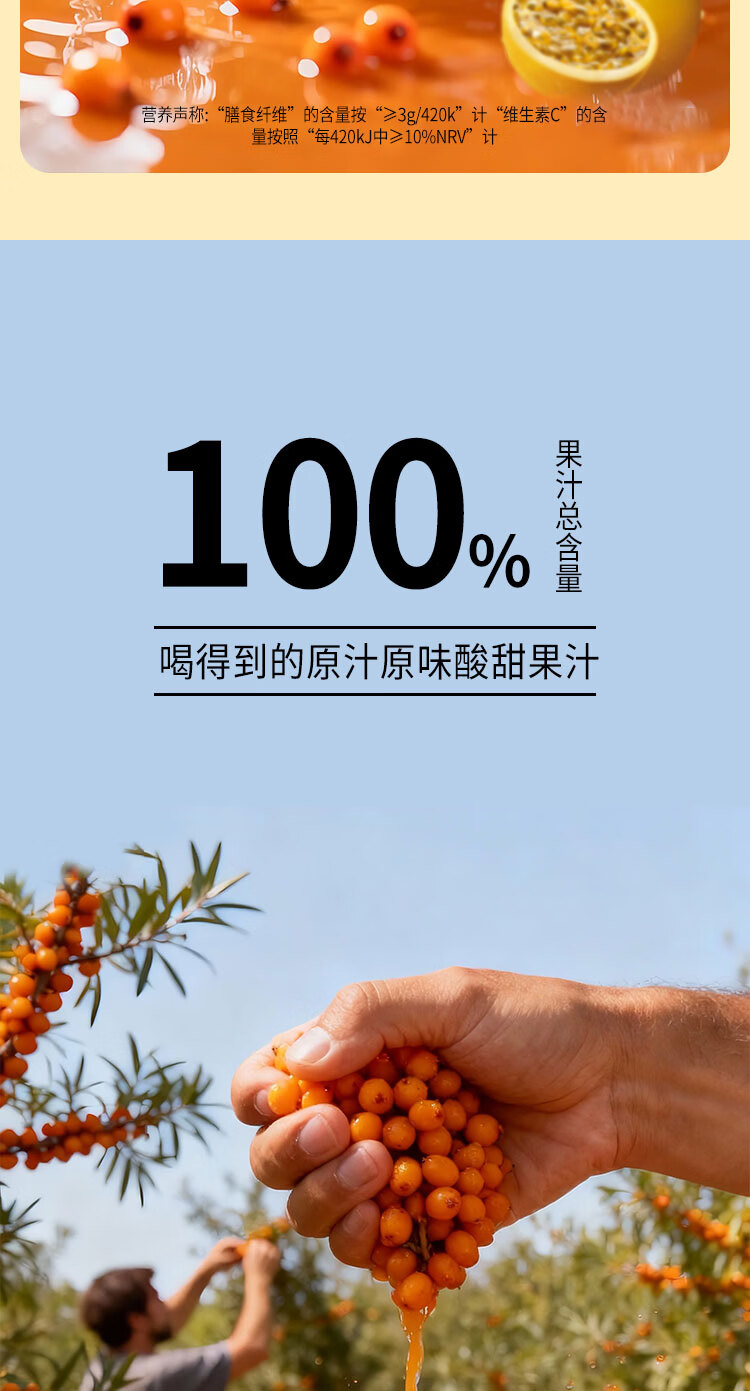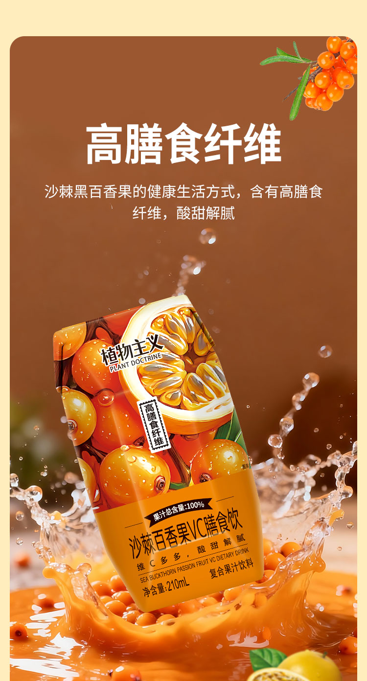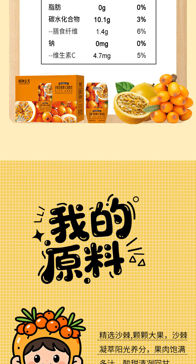 植物主义沙棘百香果VC膳食饮12瓶100%果汁0蔗糖添加高膳食纤维C复合果汁饮 沙棘百香果VC膳食饮12瓶装(100%果汁)