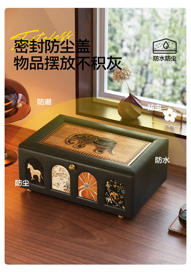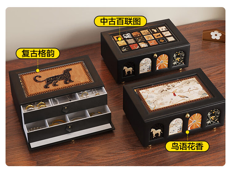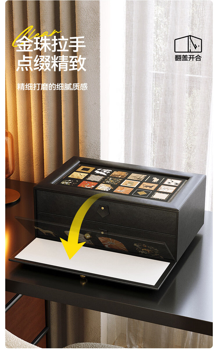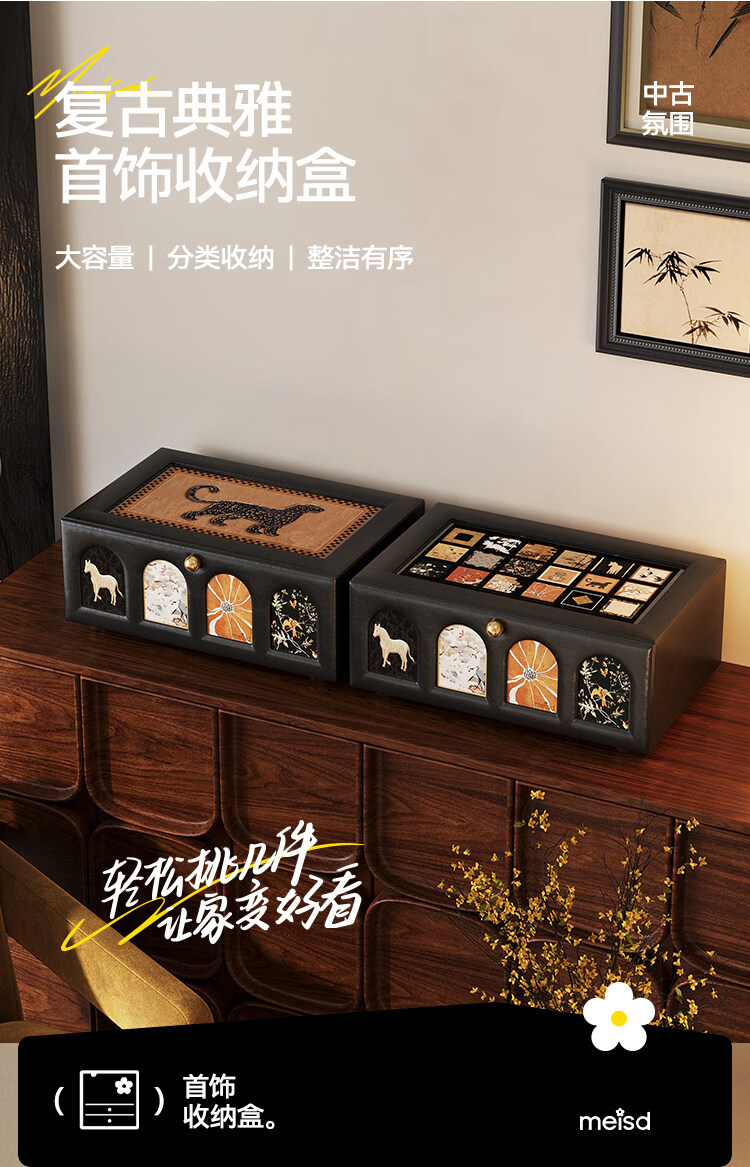 美世达(MEISD)高档首饰盒精致手饰品黄金耳钉项链大容量防氧化复古收纳盒