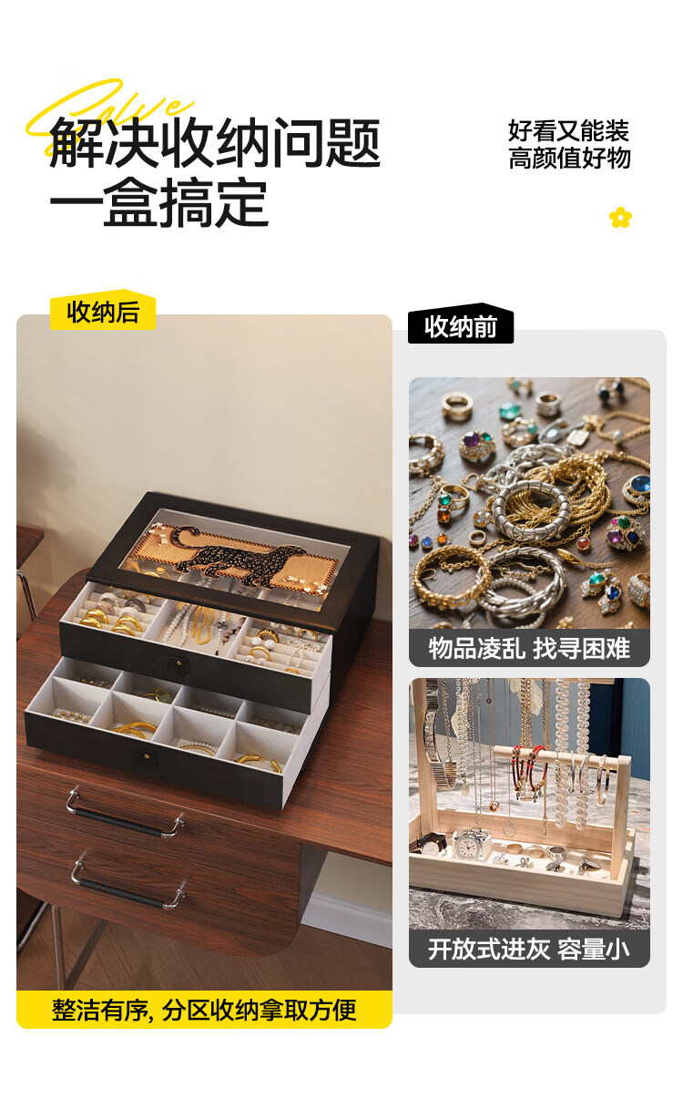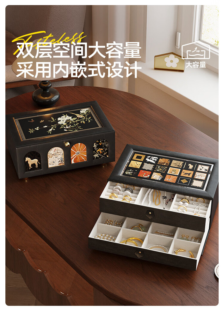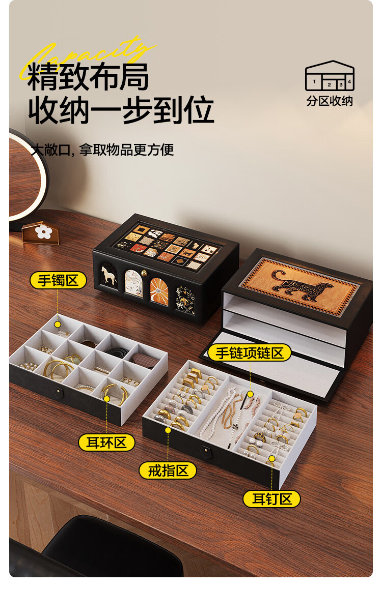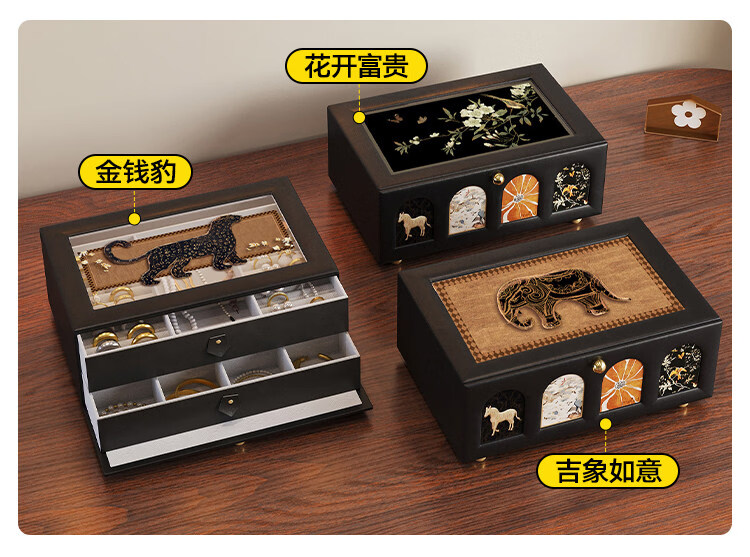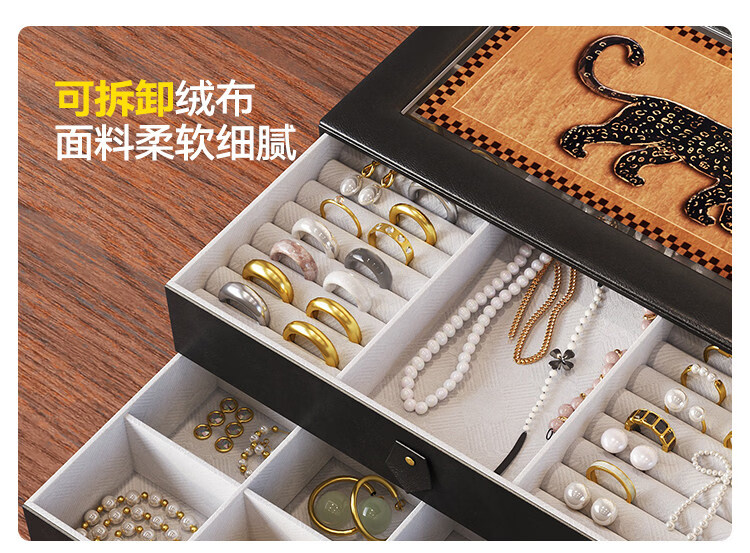 美世达(MEISD)高档首饰盒精致手饰品黄金耳钉项链大容量防氧化复古收纳盒