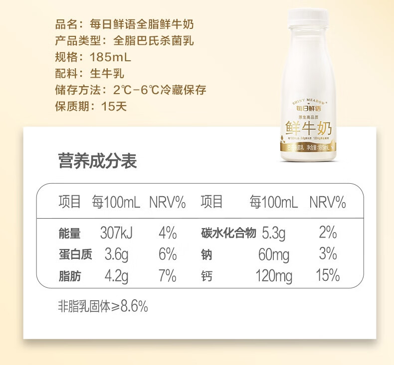 每日鲜语鲜牛奶A2β酪蛋白185ml*6+3.6g蛋白185ml*6