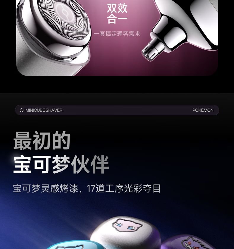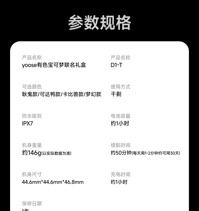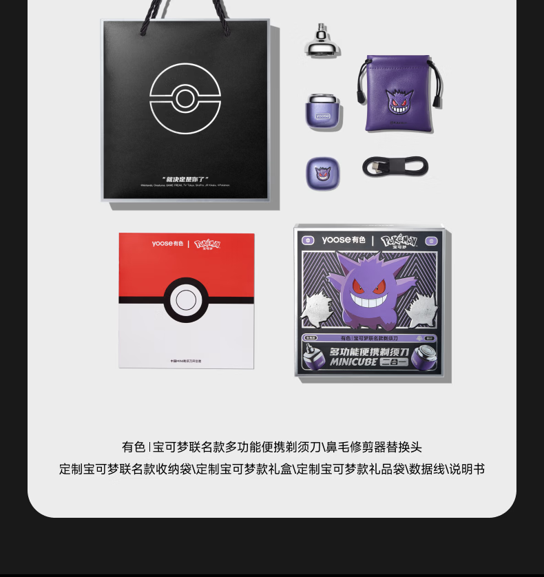 有色(yoose)剃须刀鼻毛修剪器电动刮胡刀二合一 男士生日新年礼物送男友老公宝可梦联名礼盒 D1-T(耿鬼)
