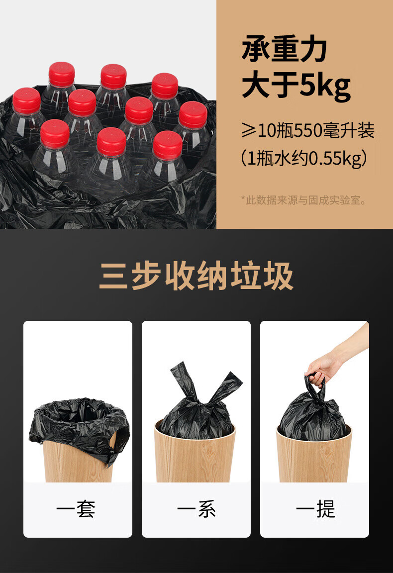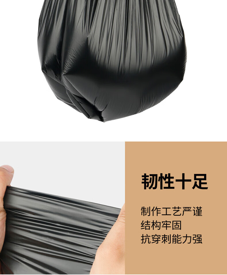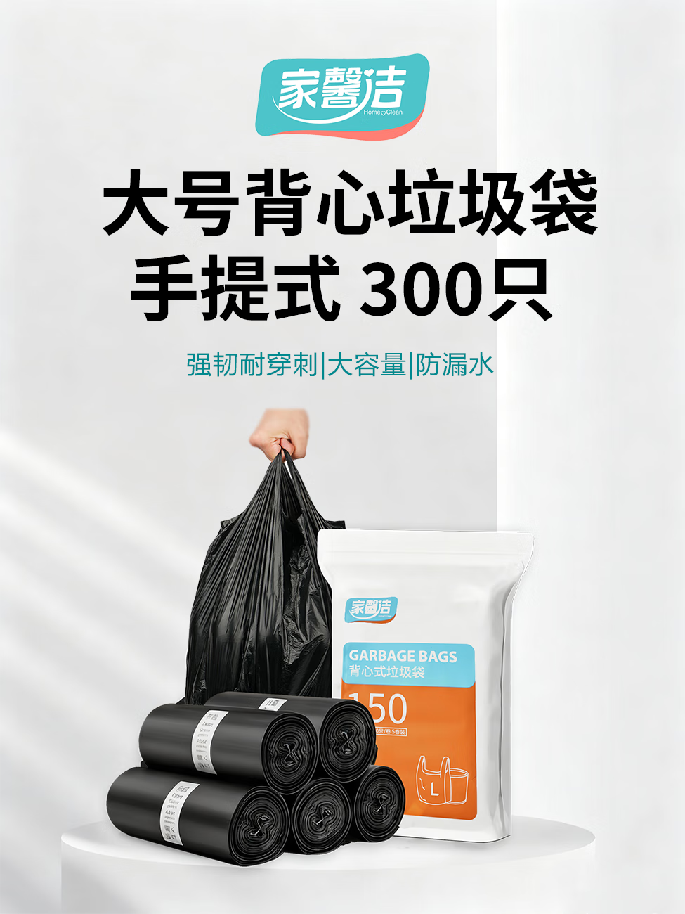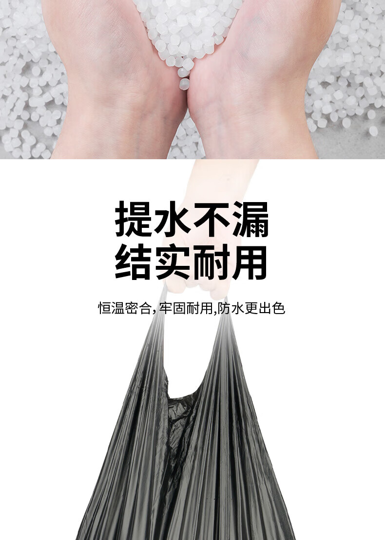 家馨洁背心垃圾袋黑色50*60cm300只0.8丝加大号家用手提办公室点断式