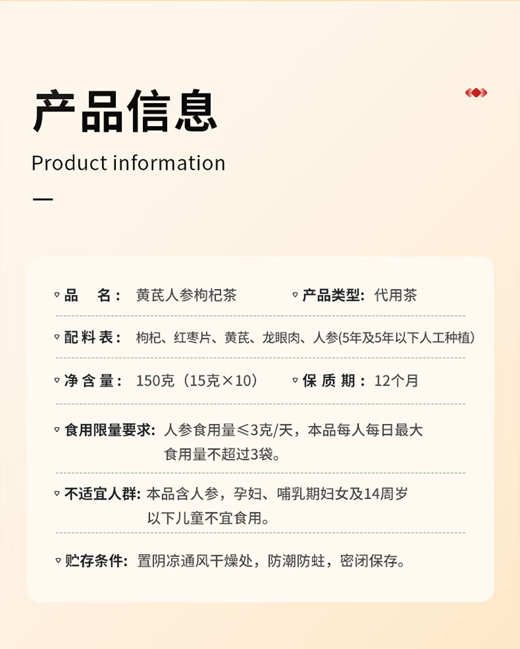 同仁堂品牌北京同仁堂 黄芪人参枸杞茶150克 龙眼肉养生茶男滋补人元气