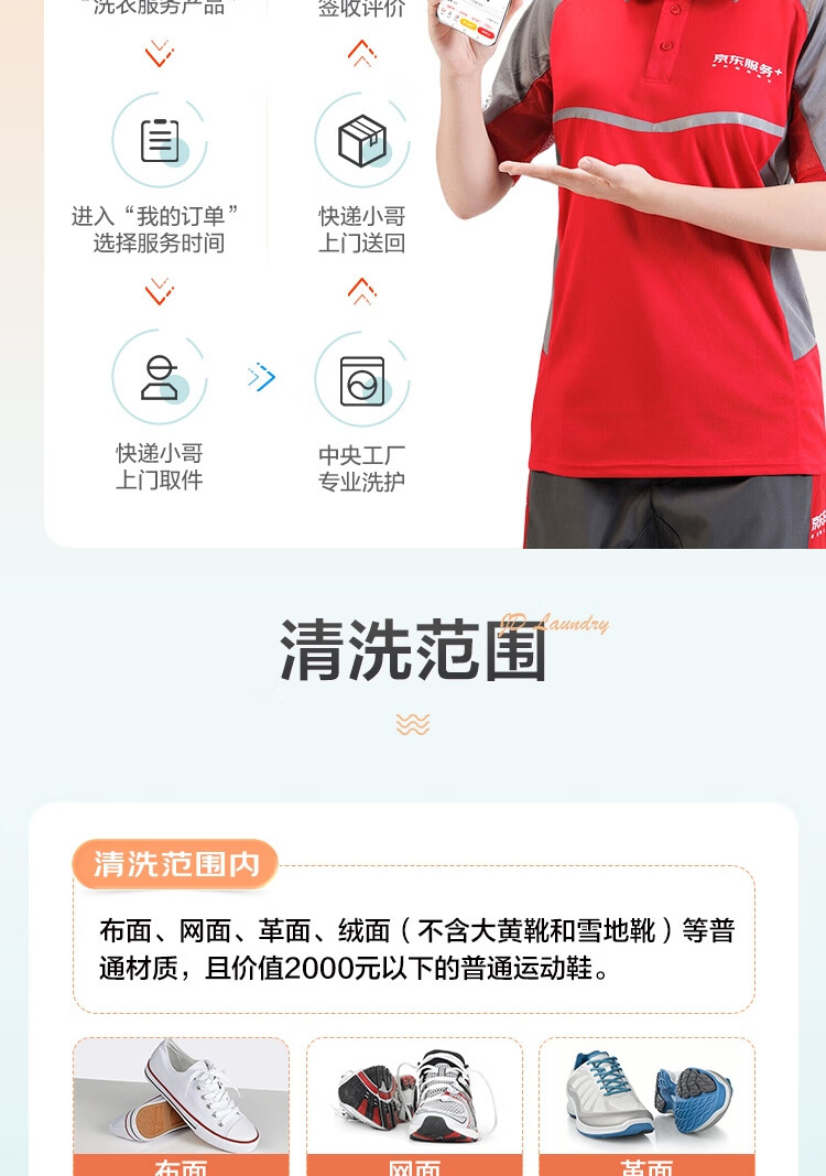 京东洗衣 洗衣服务 洗鞋服务 衣鞋任洗 上门取件 干洗水洗 洗衣服 刷鞋 网面/革面运动鞋/羽绒服等 衣鞋任洗4件
