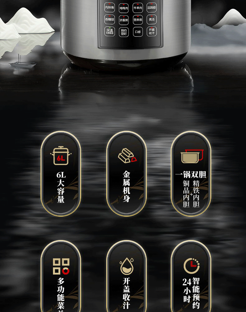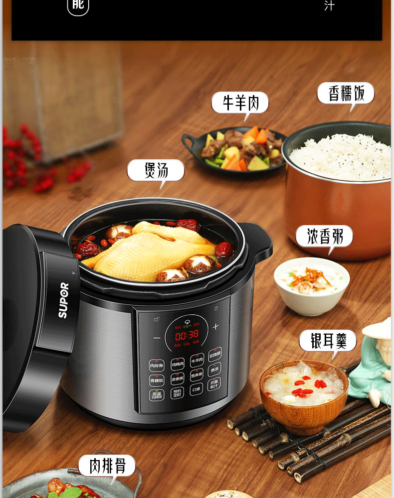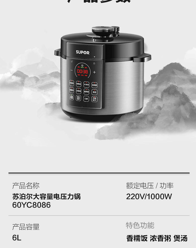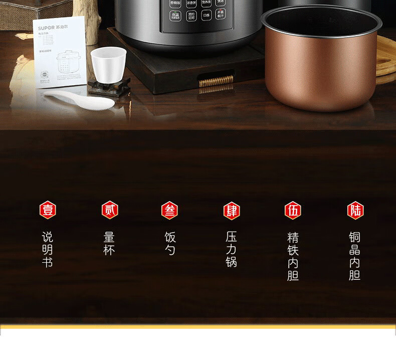 苏泊尔(SUPOR)国风系列电压力锅6L大容量智能预约 煲汤小米粥双胆 60YC8086电饭煲高压锅6-8人内胆批次随机发货