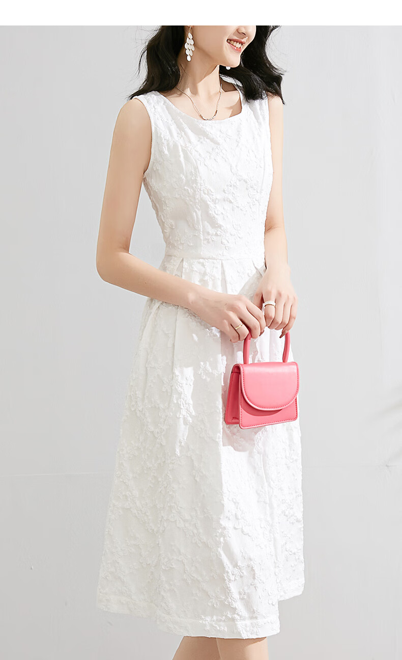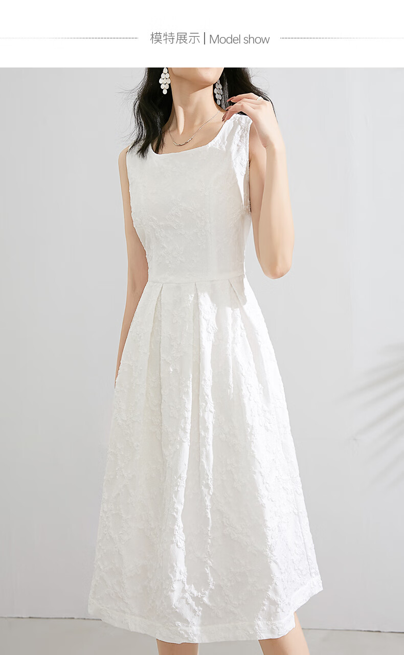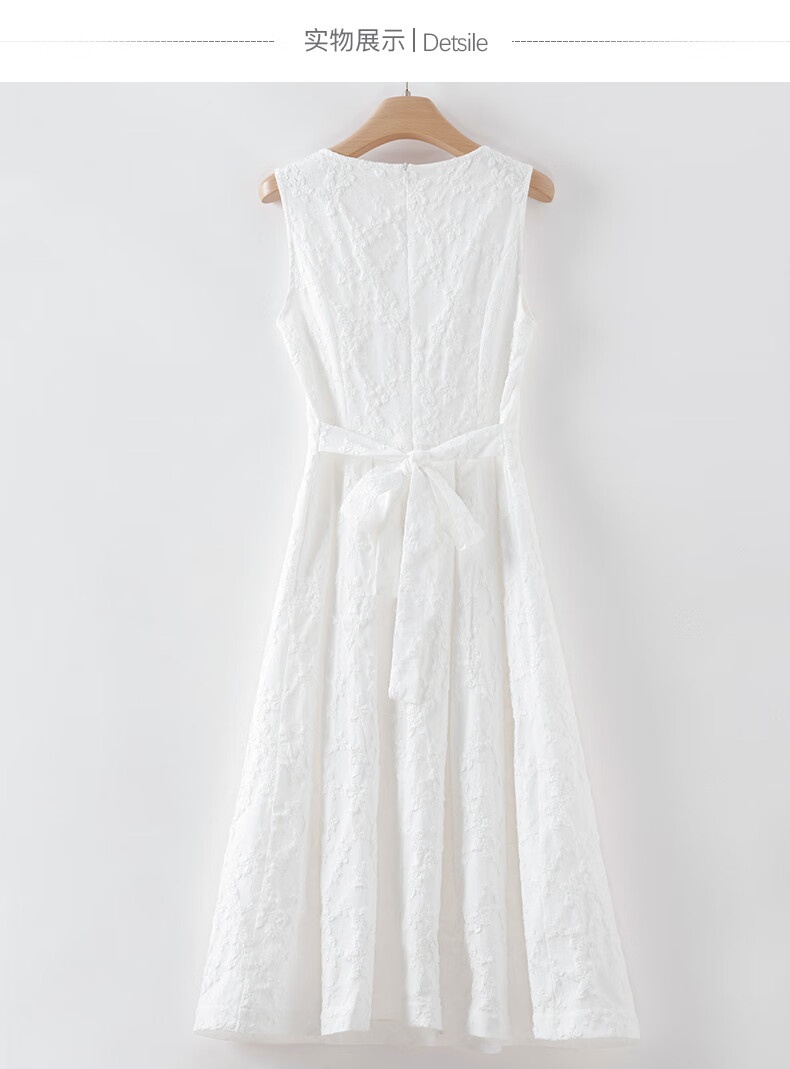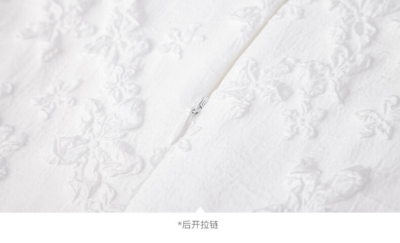 晚白【断码清仓】优雅提花裙修身显瘦纯色百搭淑女长裙连衣裙 白色 S