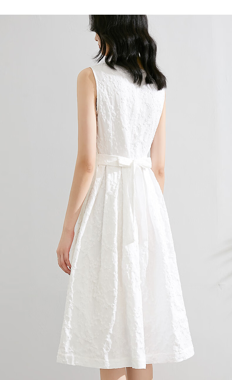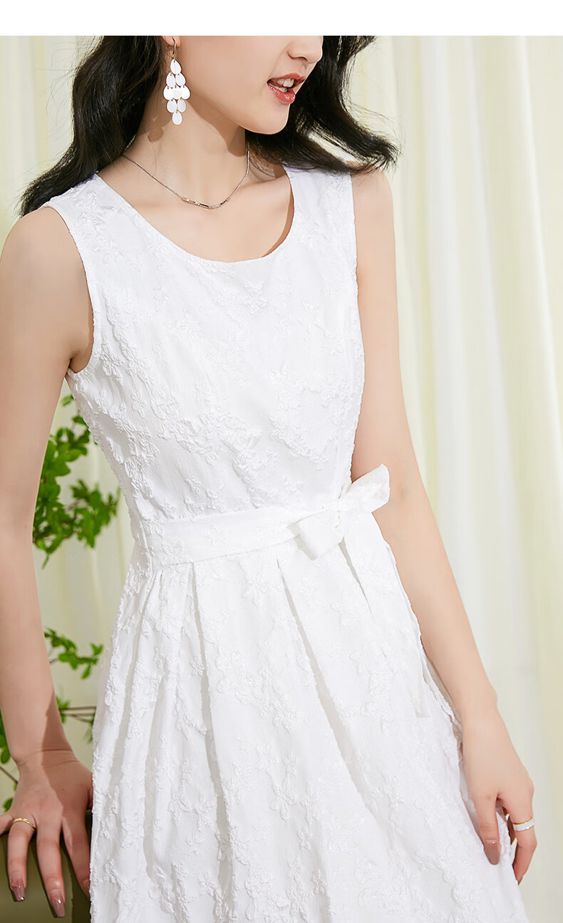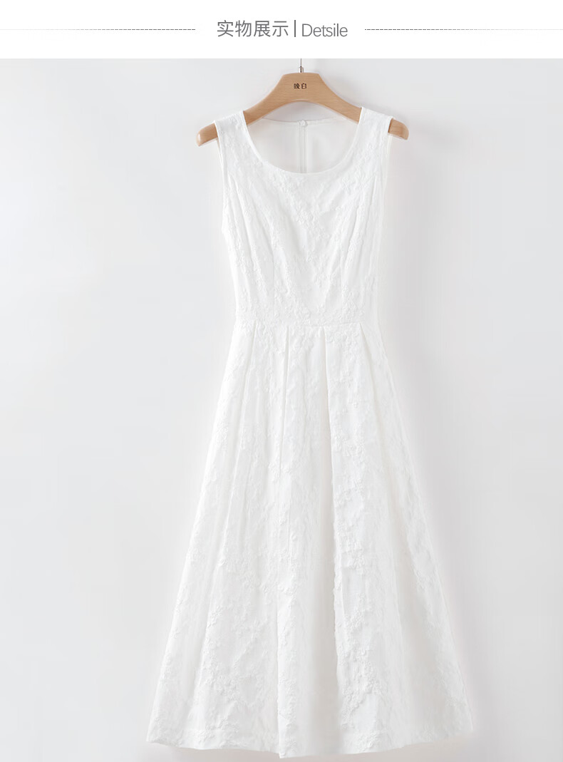 晚白【断码清仓】优雅提花裙修身显瘦纯色百搭淑女长裙连衣裙 白色 S