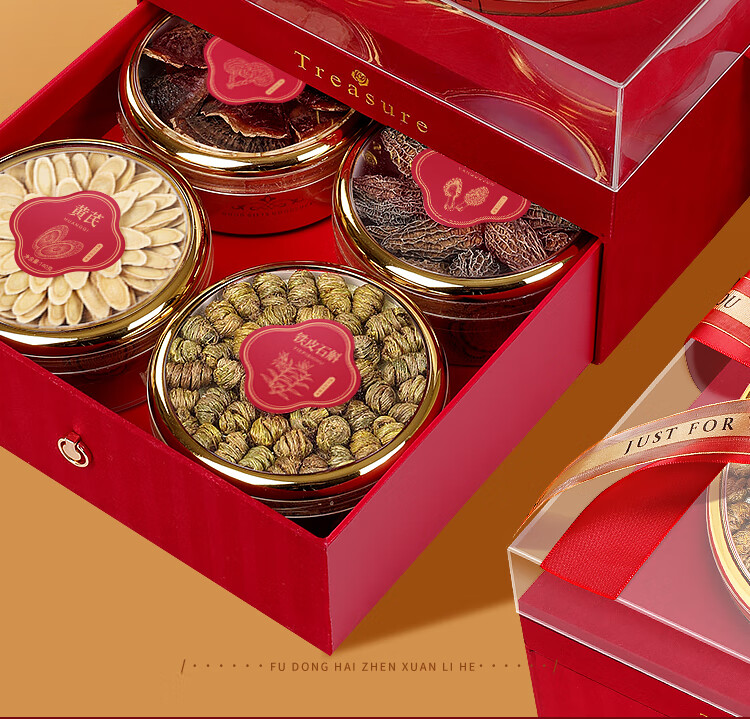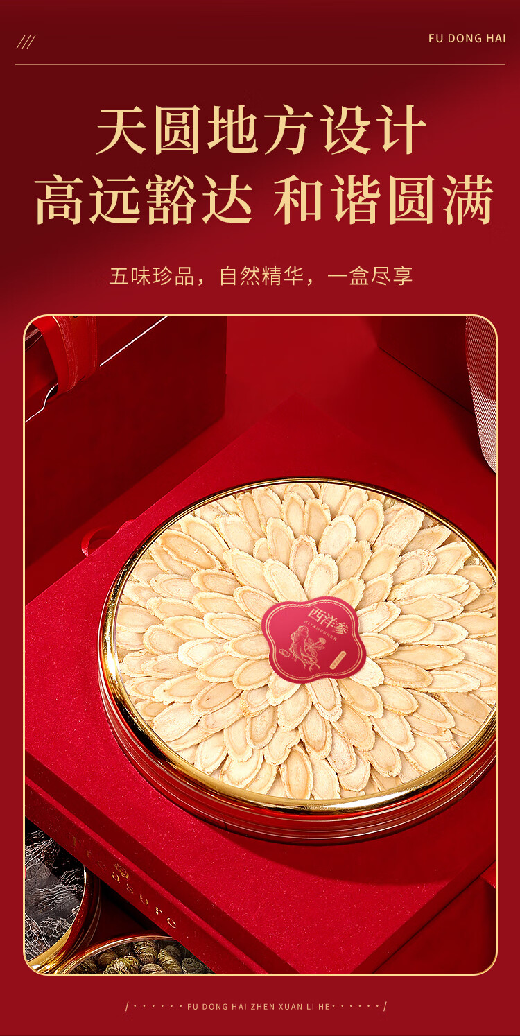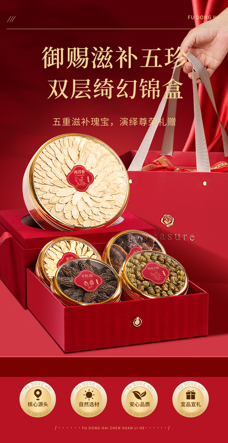 福东海西洋参铁皮石斛羊肚菌黄芪灵芝五拼礼盒255克 送父母节日礼物