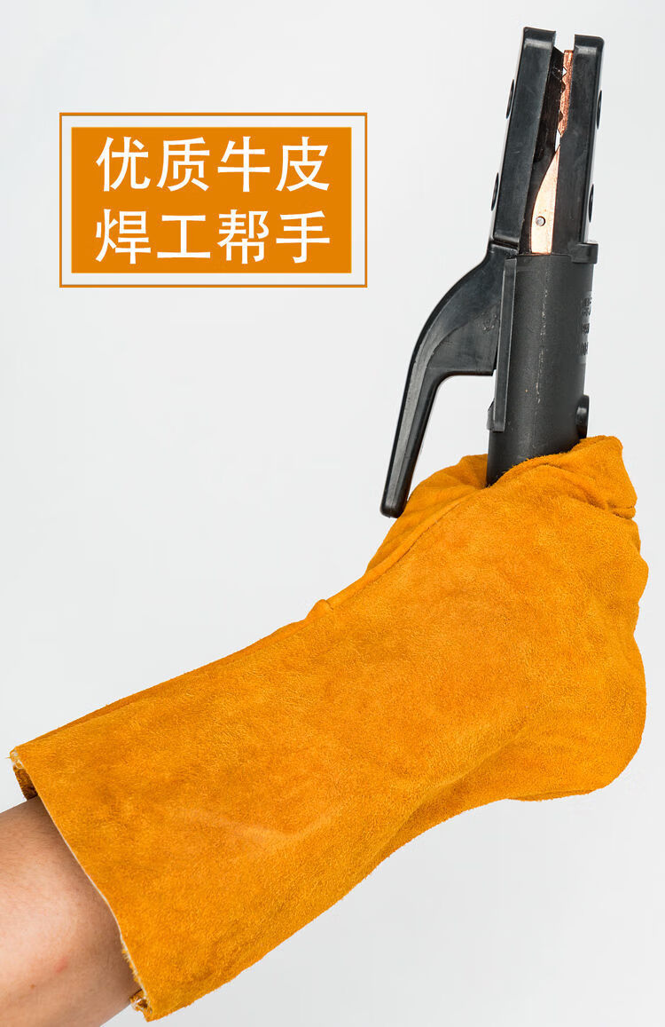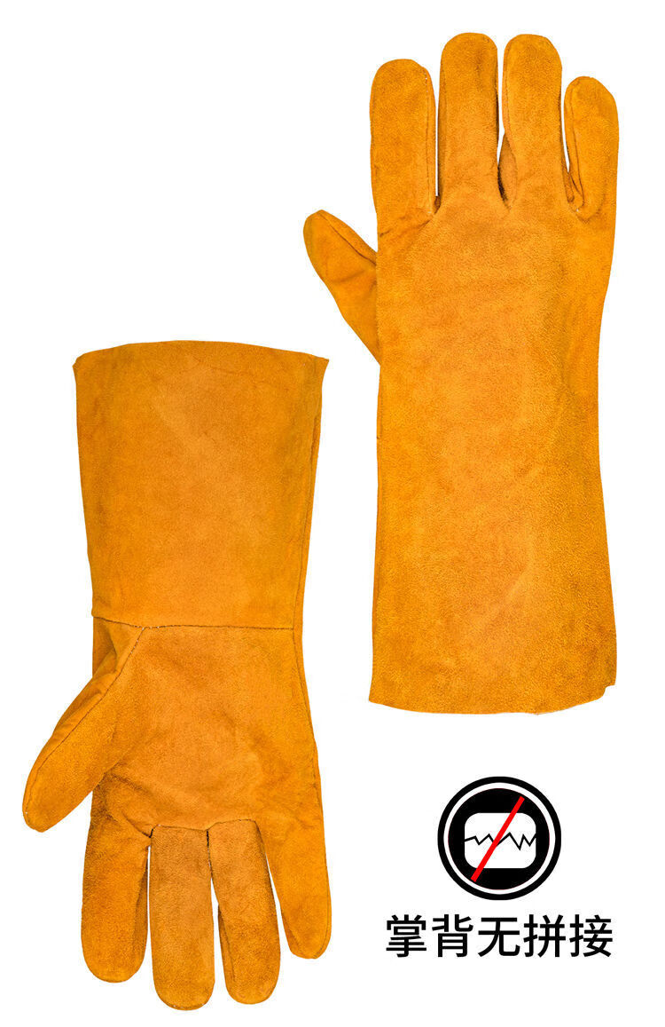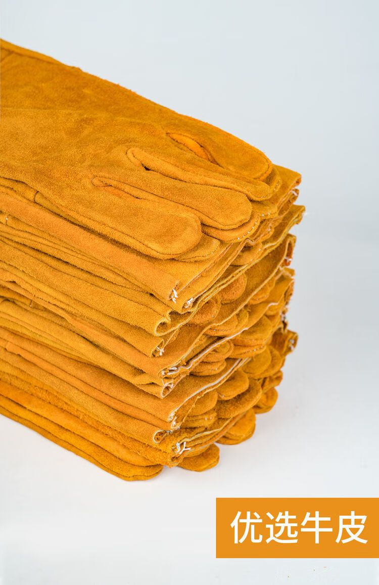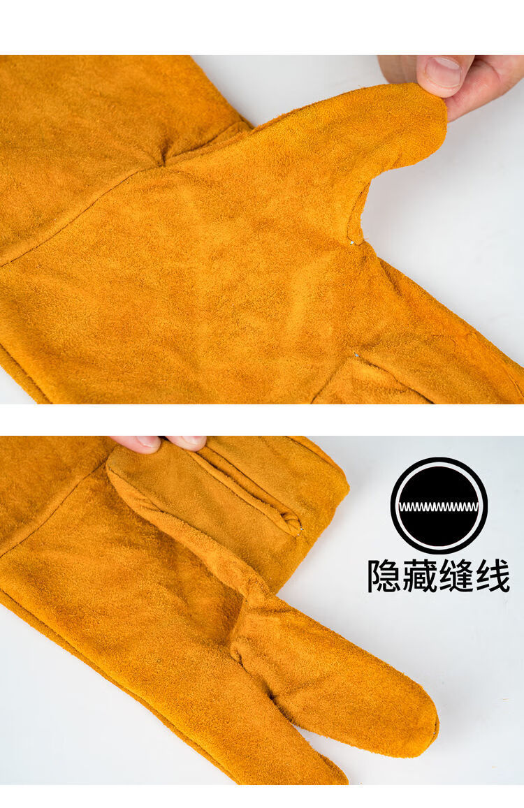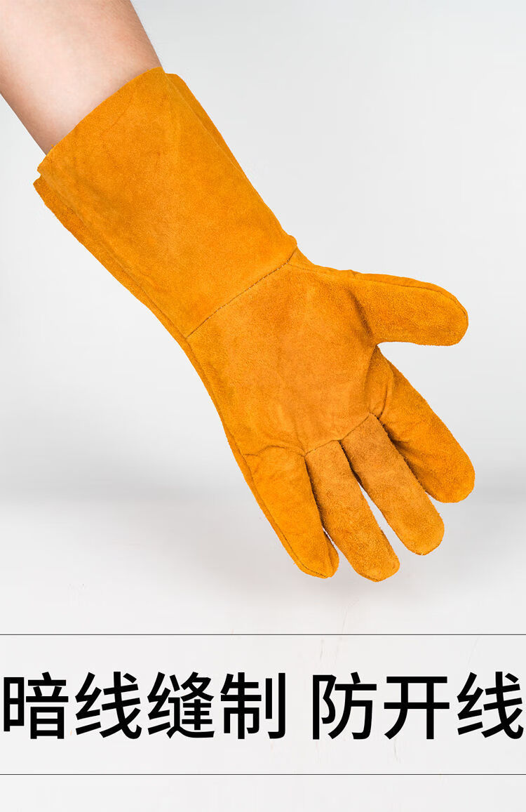 电焊手套无缝耐磨防烫耐高温焊工专用加厚纯牛皮劳保防护柔软二保 [防开线](长款加固黄色6双装) 均码