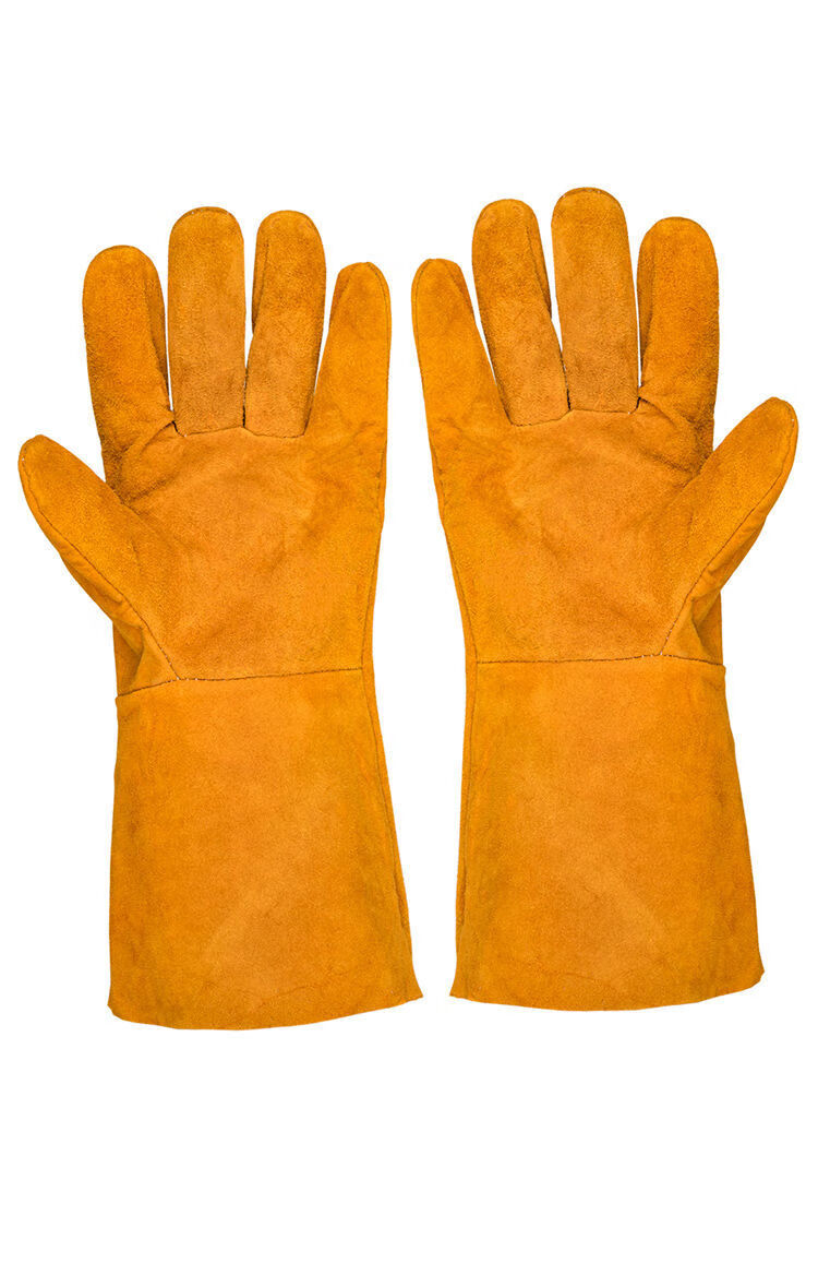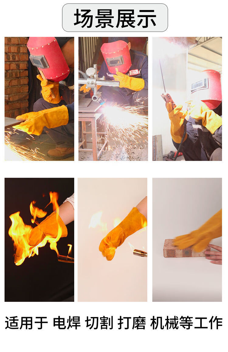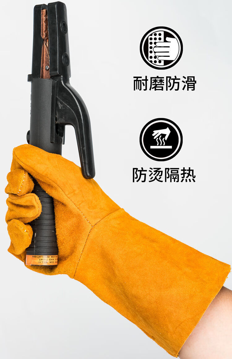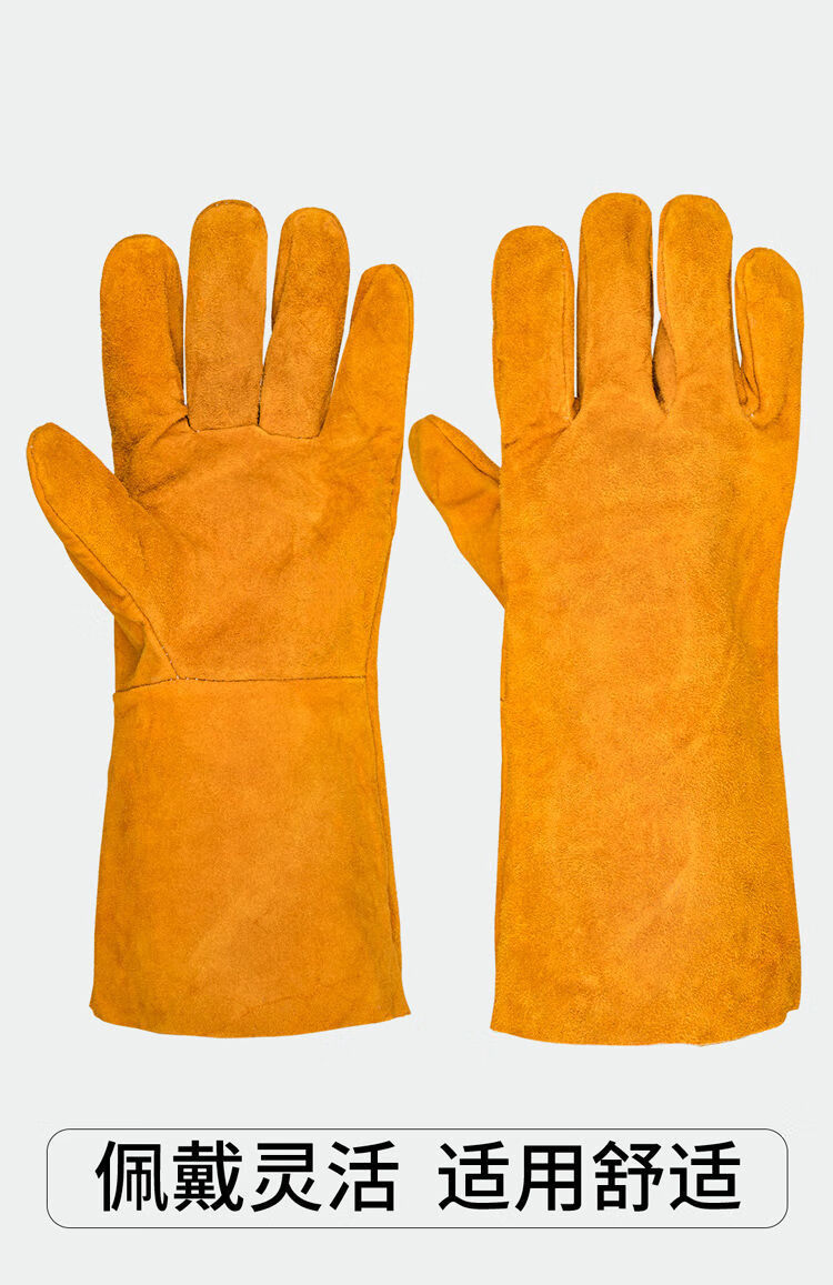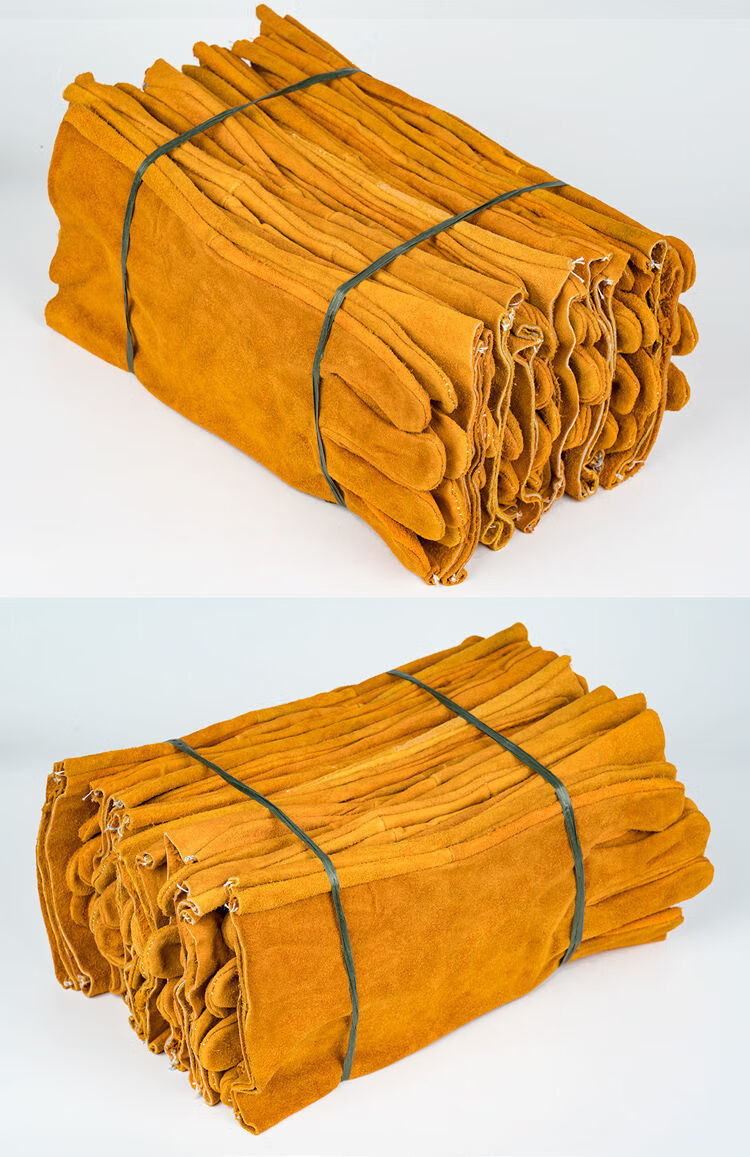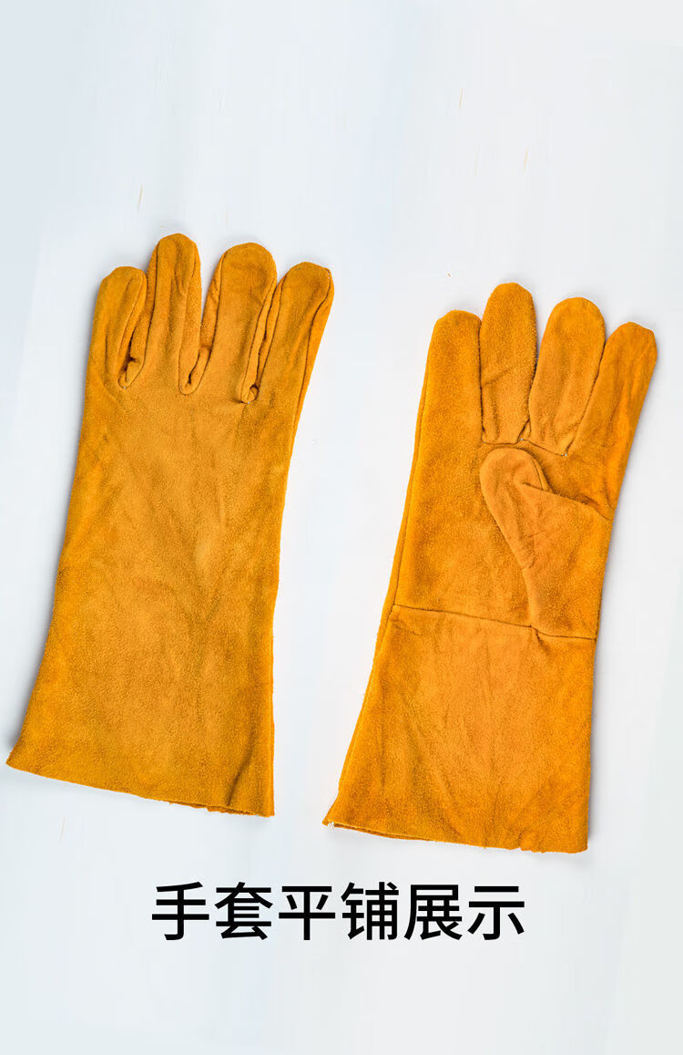 电焊手套无缝耐磨防烫耐高温焊工专用加厚纯牛皮劳保防护柔软二保 [防开线](长款加固黄色6双装) 均码