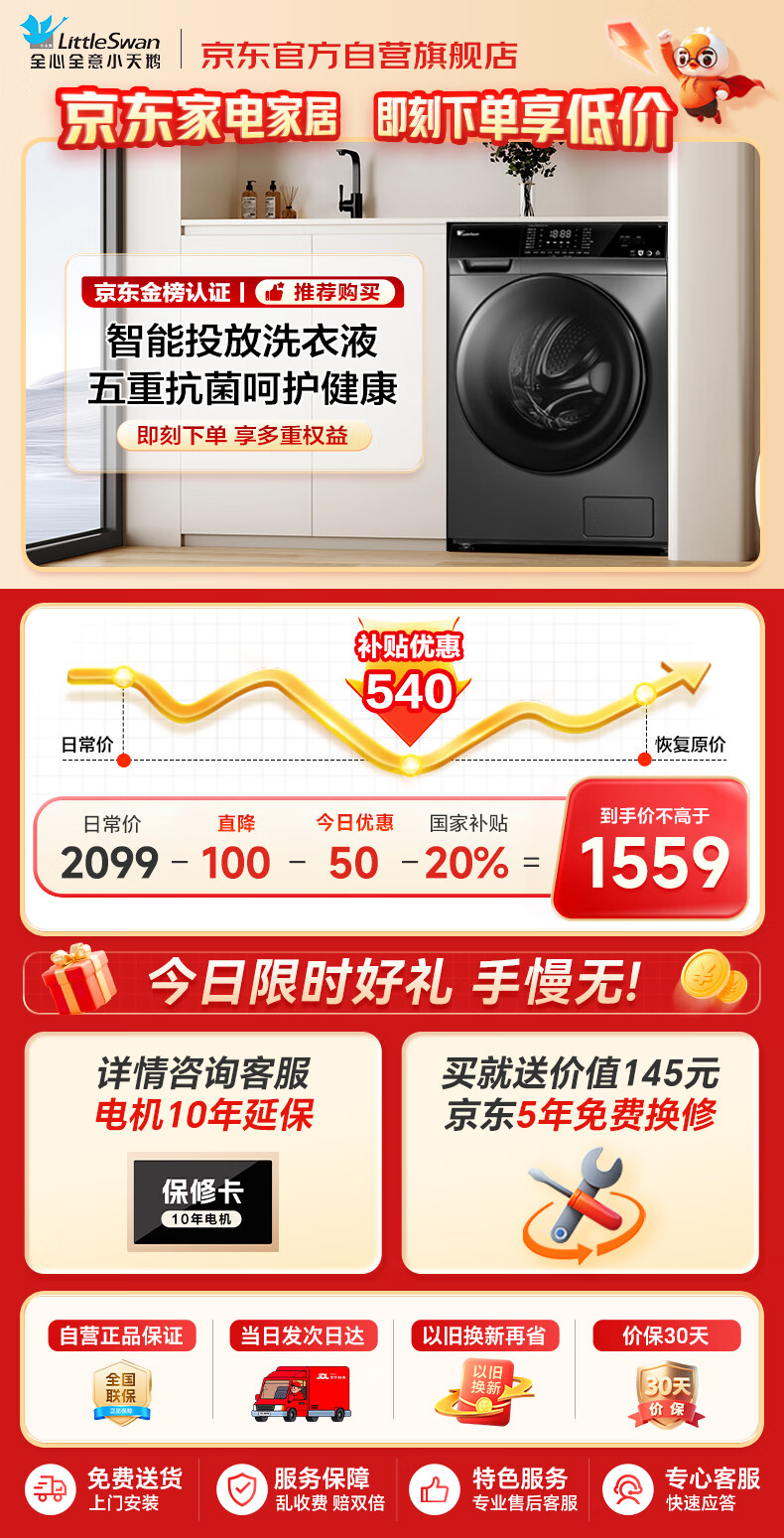 小天鹅(LittleSwan)滚筒洗衣机全自动家用10KG大容量超薄智能投放除菌TG100VT616WIADY-T1B 以旧换新京东自营国家补贴