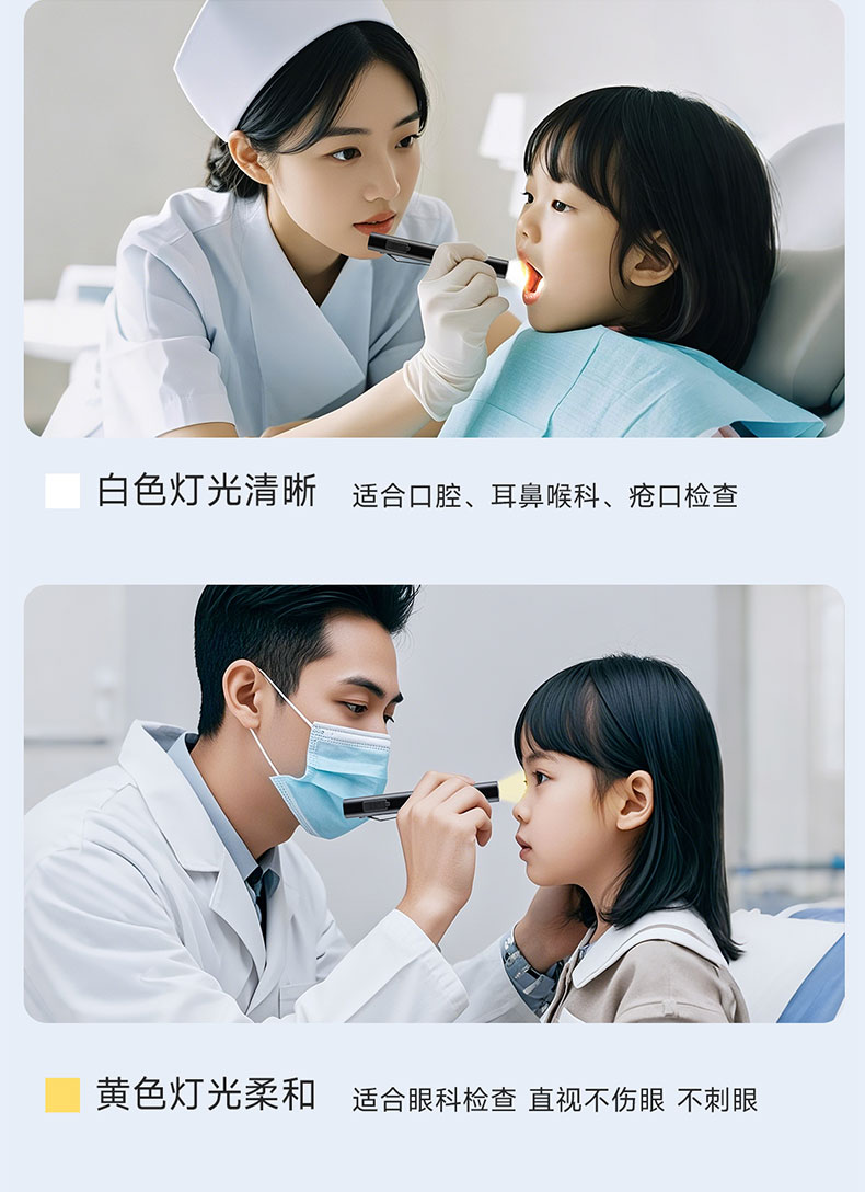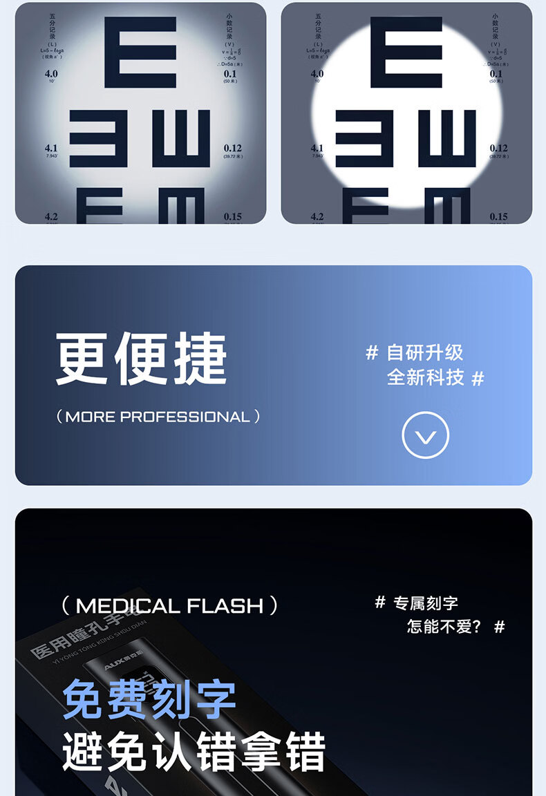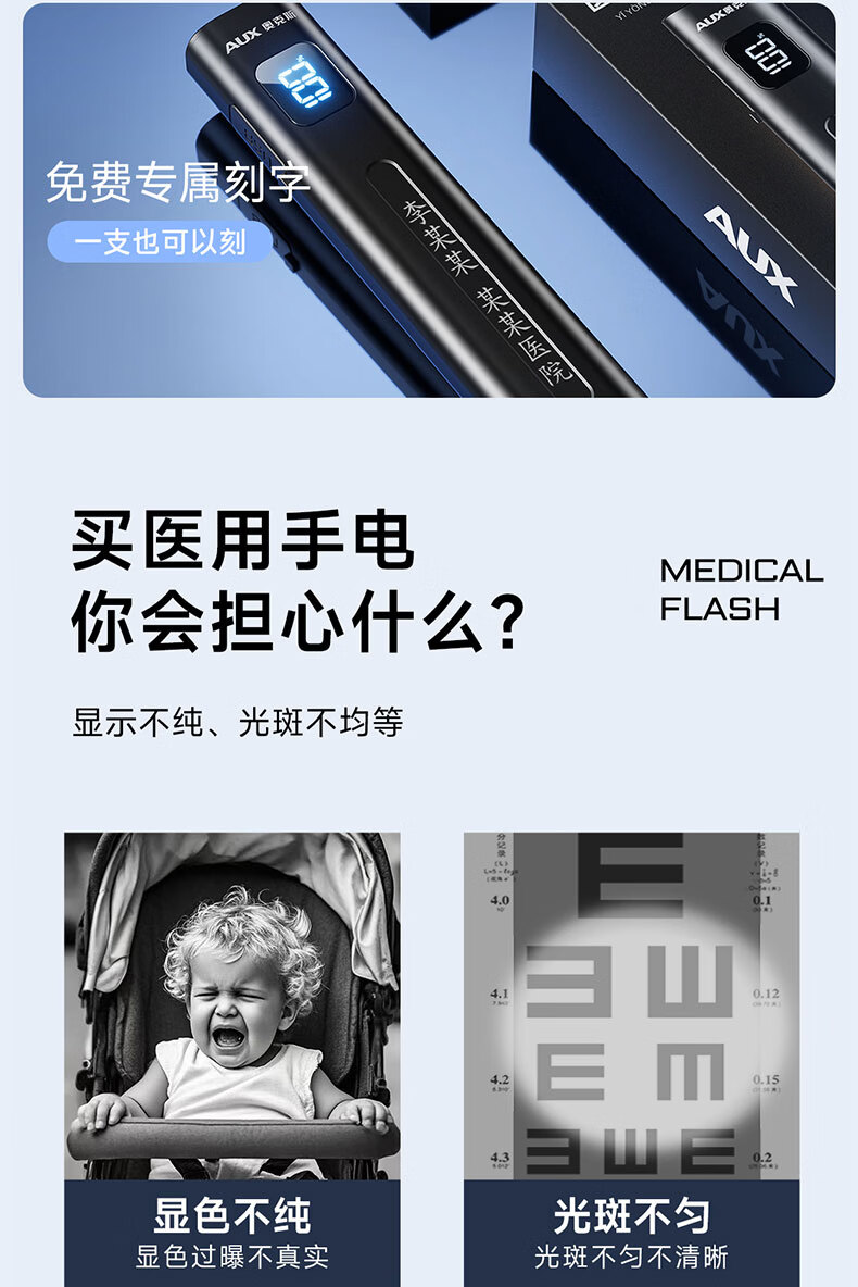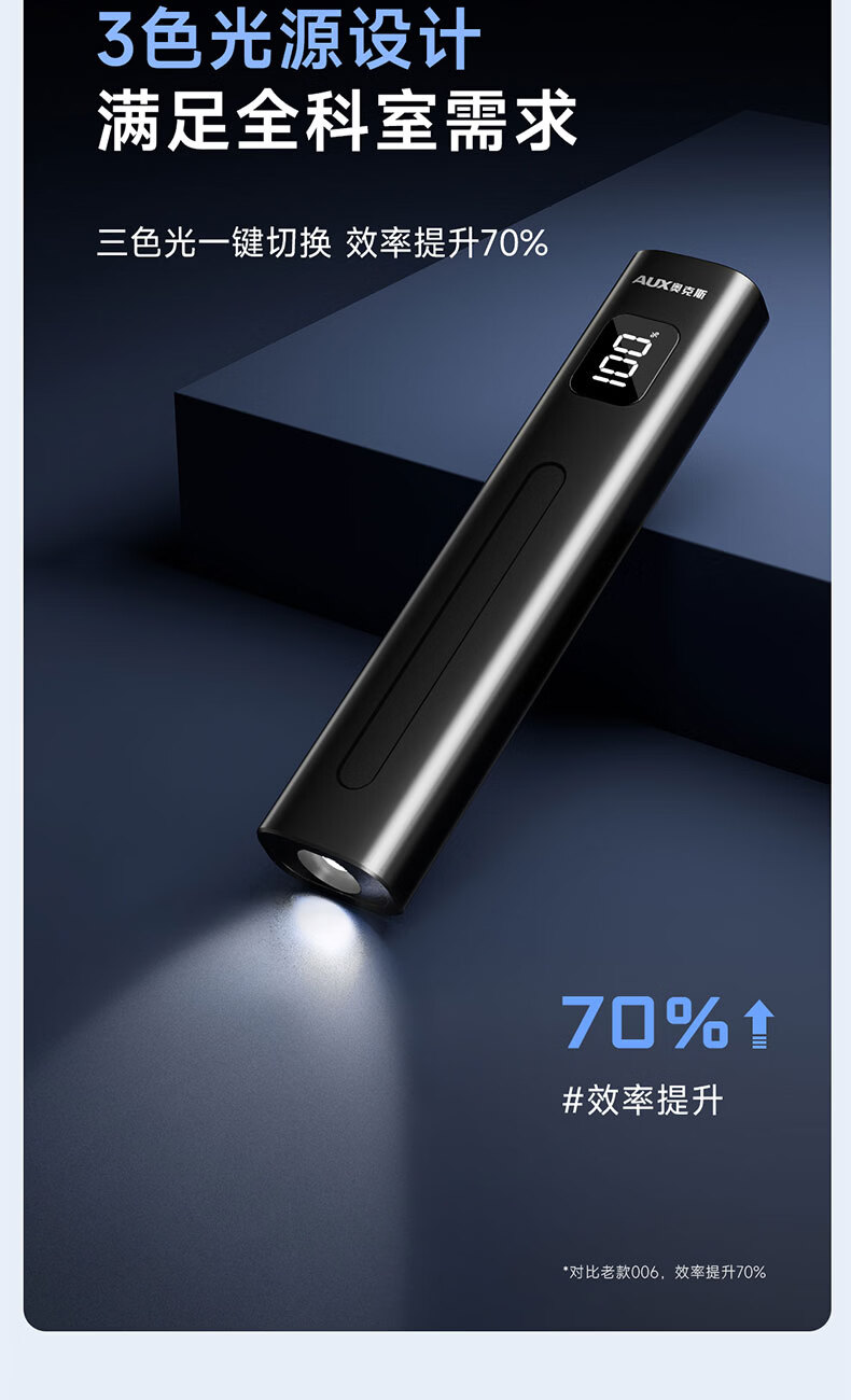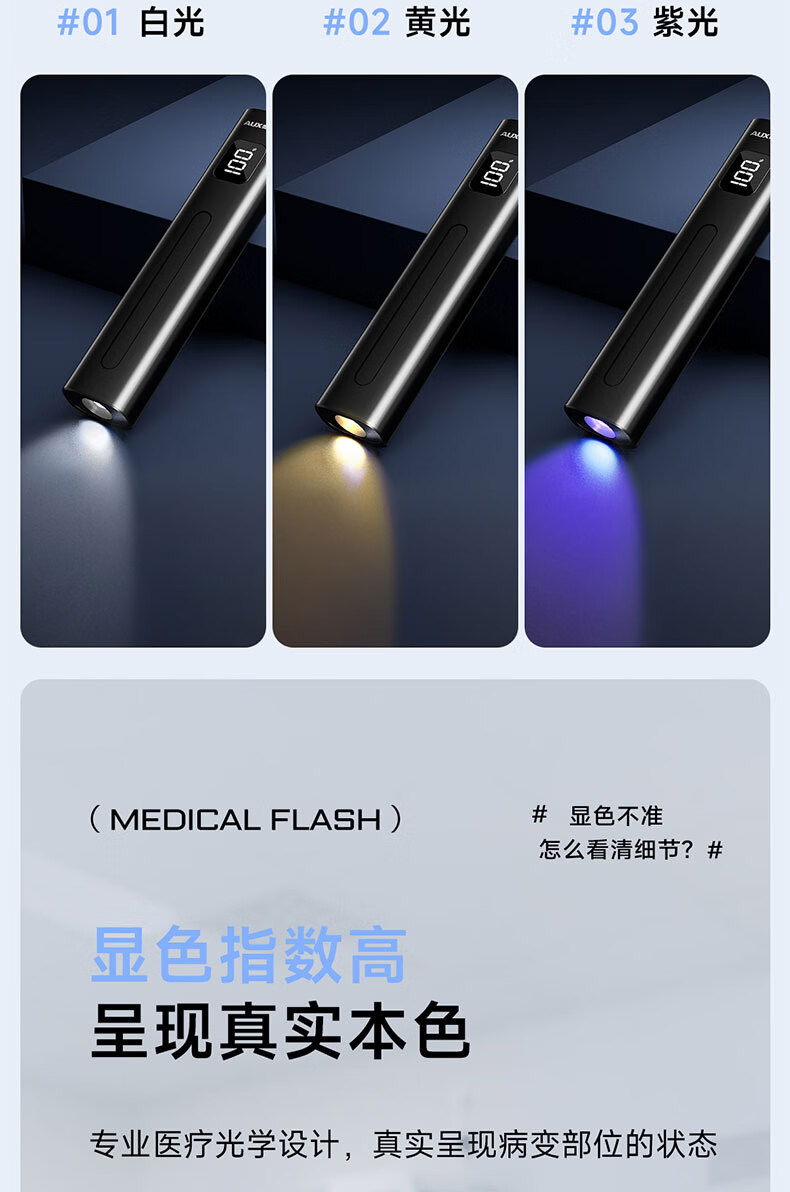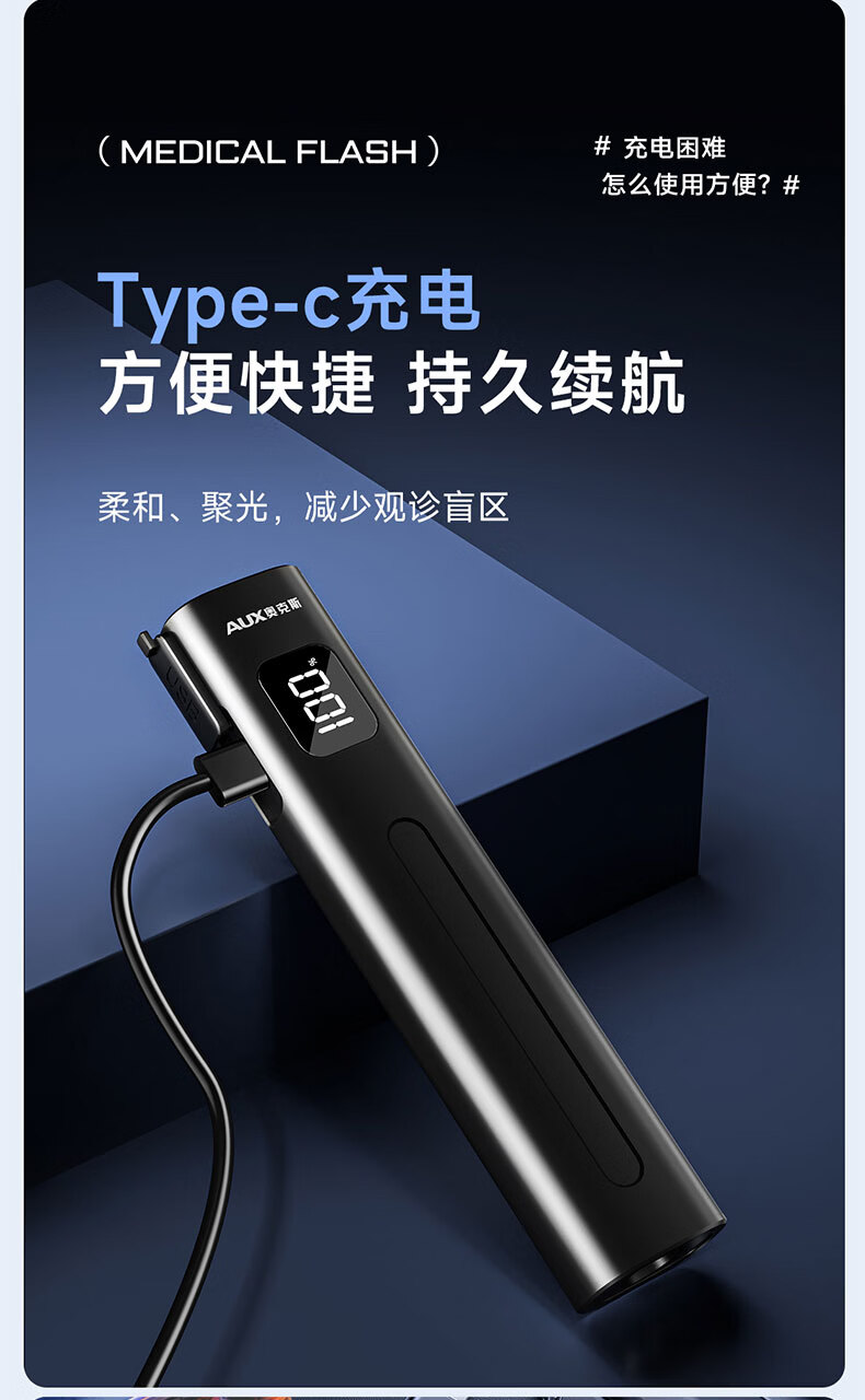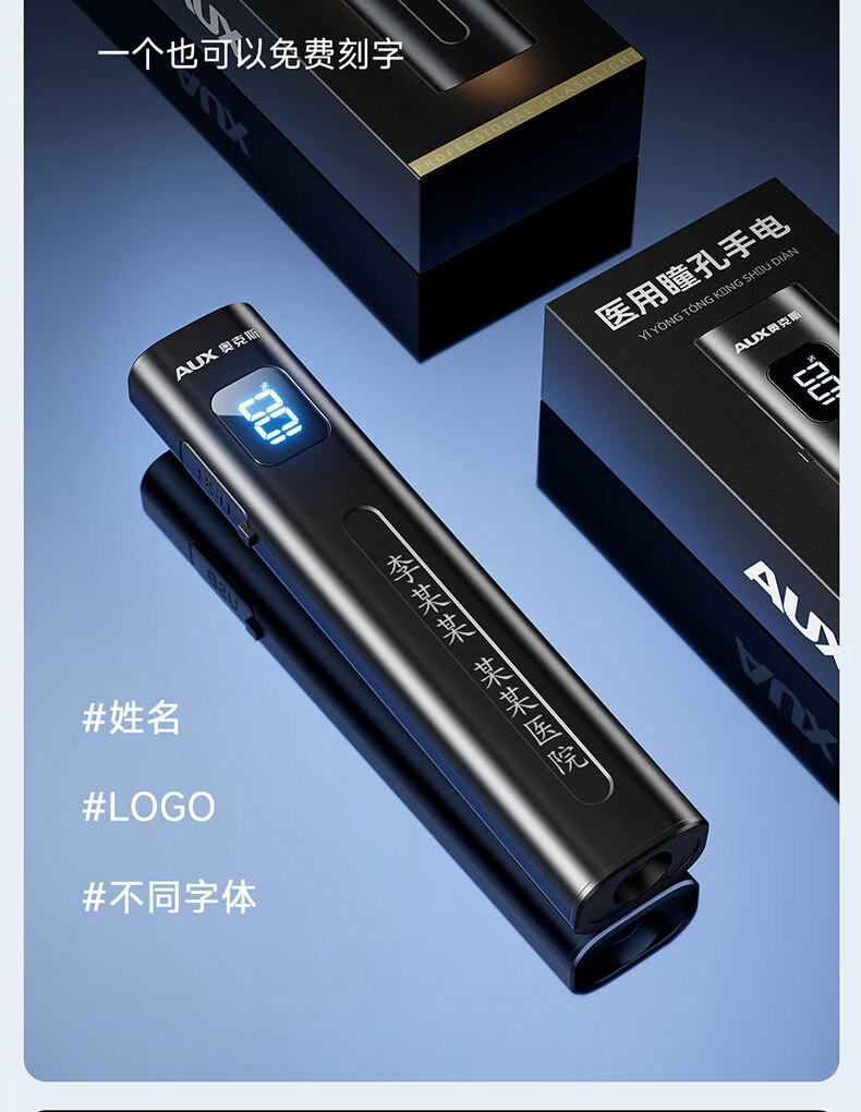 奥克斯(AUX)瞳孔笔灯医生专用护士检查口腔眼充电儿童晨检手电筒便携家用笔灯 【豪华款】黄白2色光源丨免费刻字丨Type-c快充