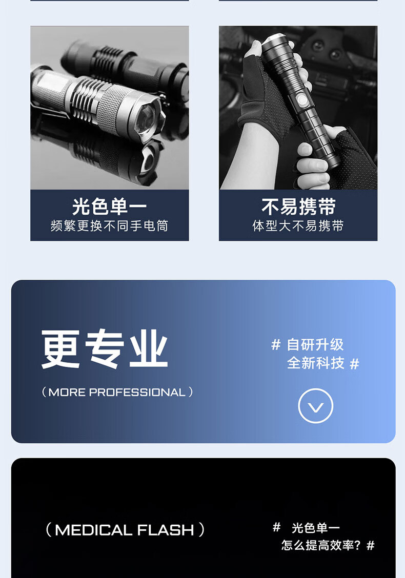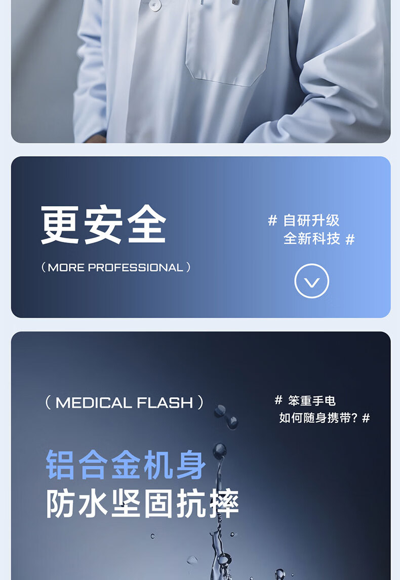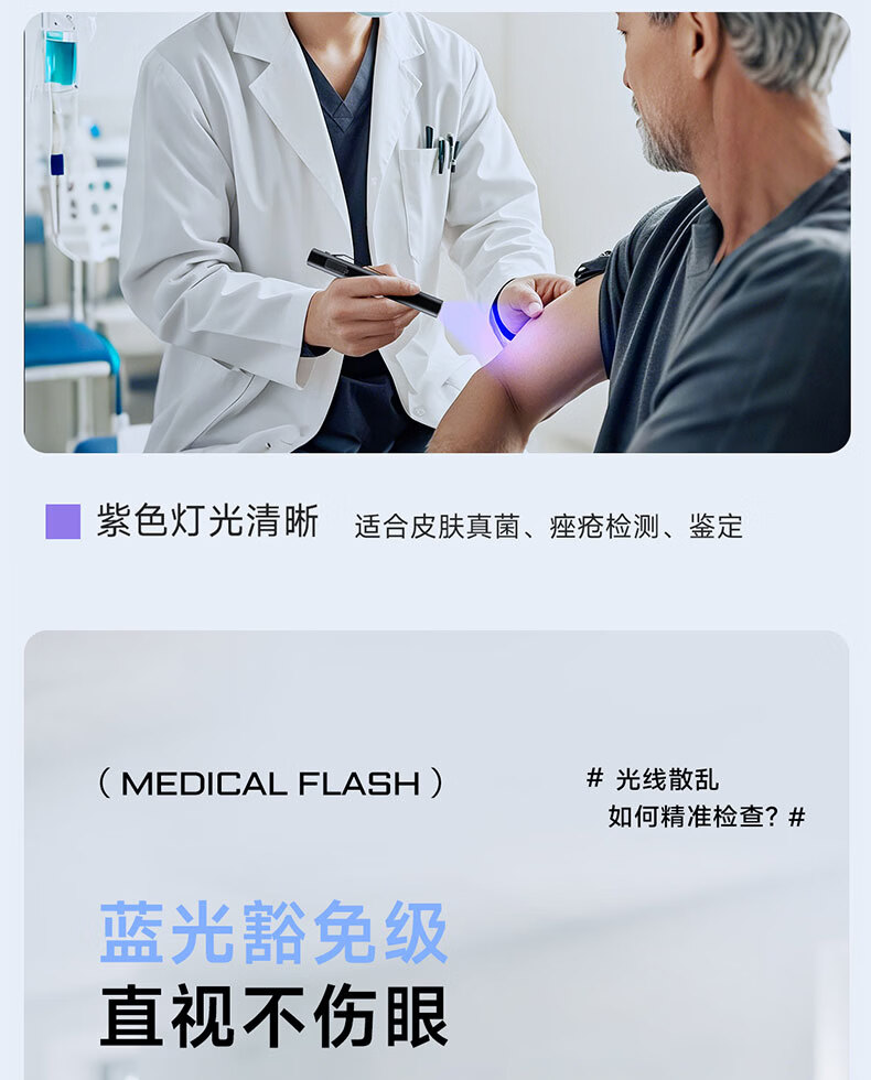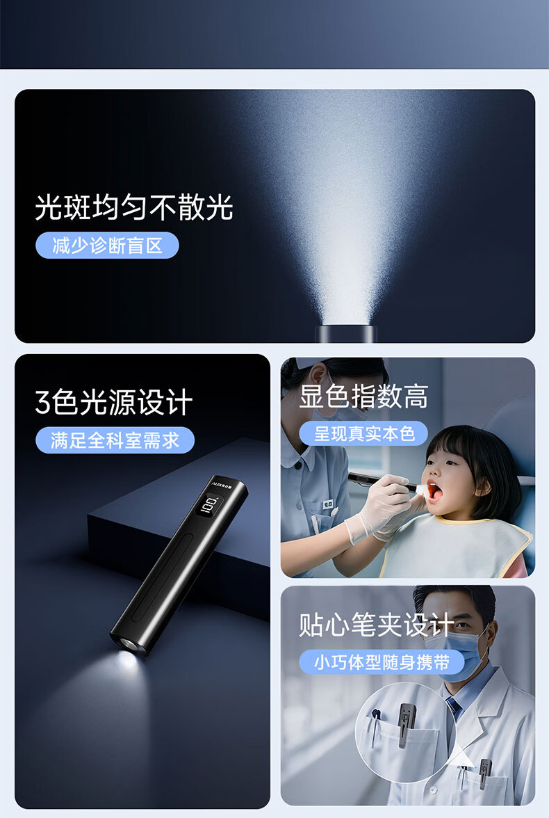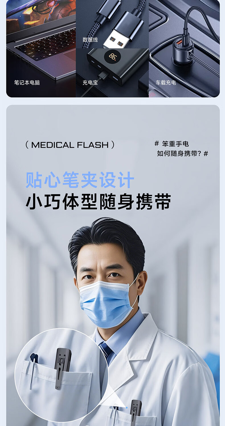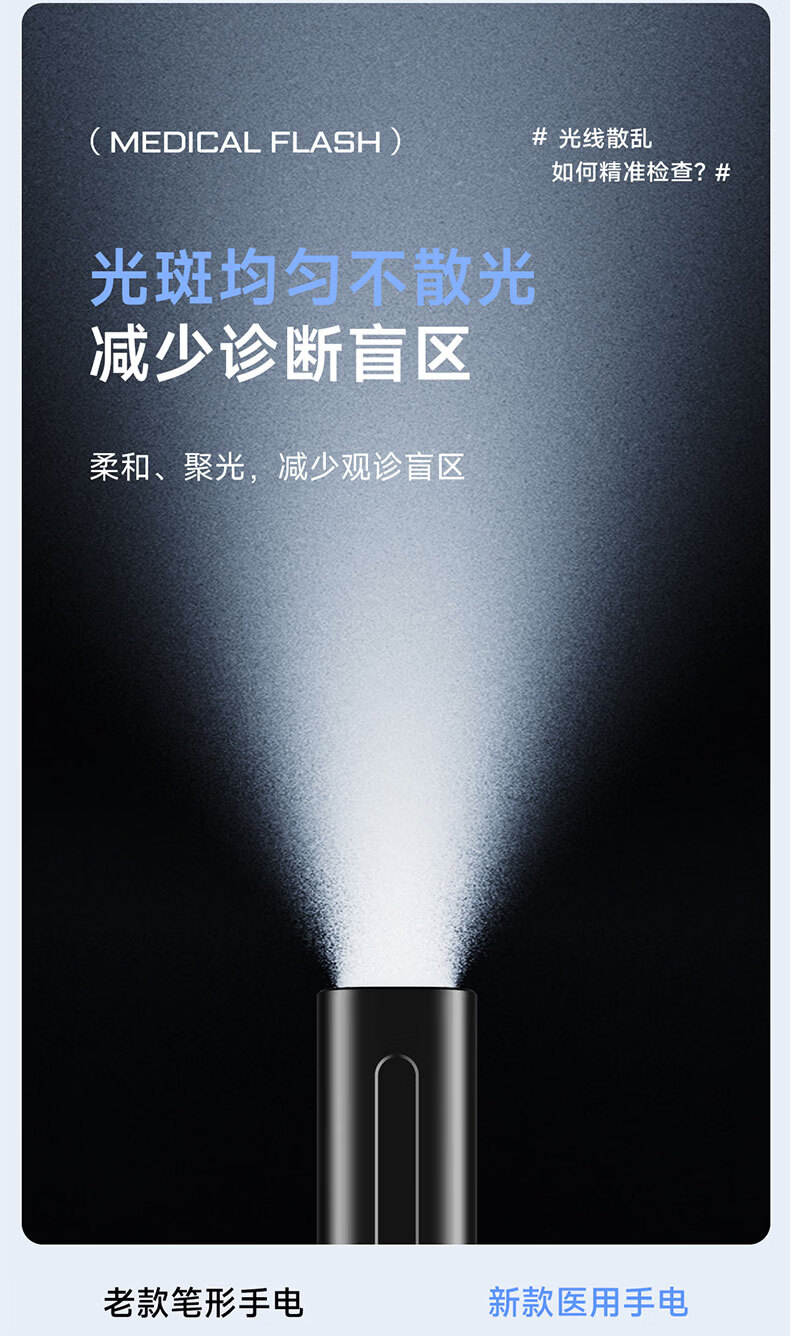 奥克斯(AUX)瞳孔笔灯医生专用护士检查口腔眼充电儿童晨检手电筒便携家用笔灯 【豪华款】黄白2色光源丨免费刻字丨Type-c快充