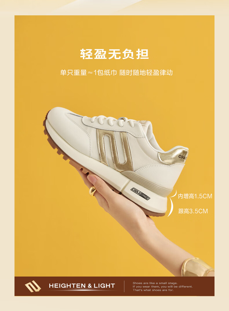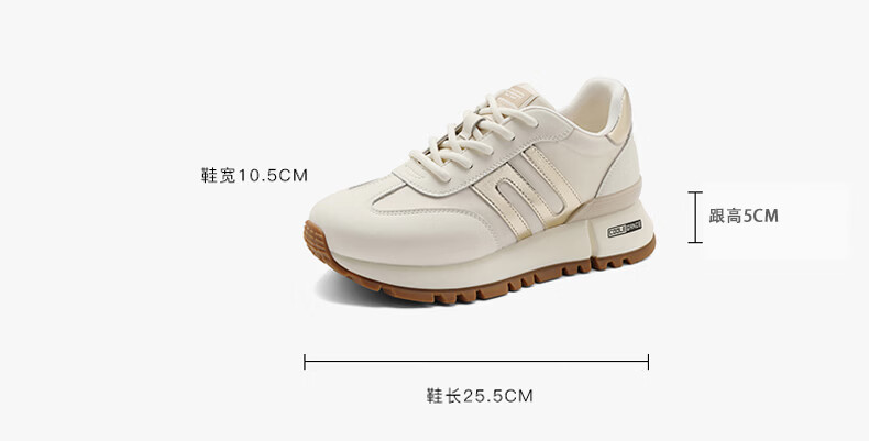 百思图猪皮鞋垫运动休闲厚底增高小白鞋圆头女休闲鞋 白色 37