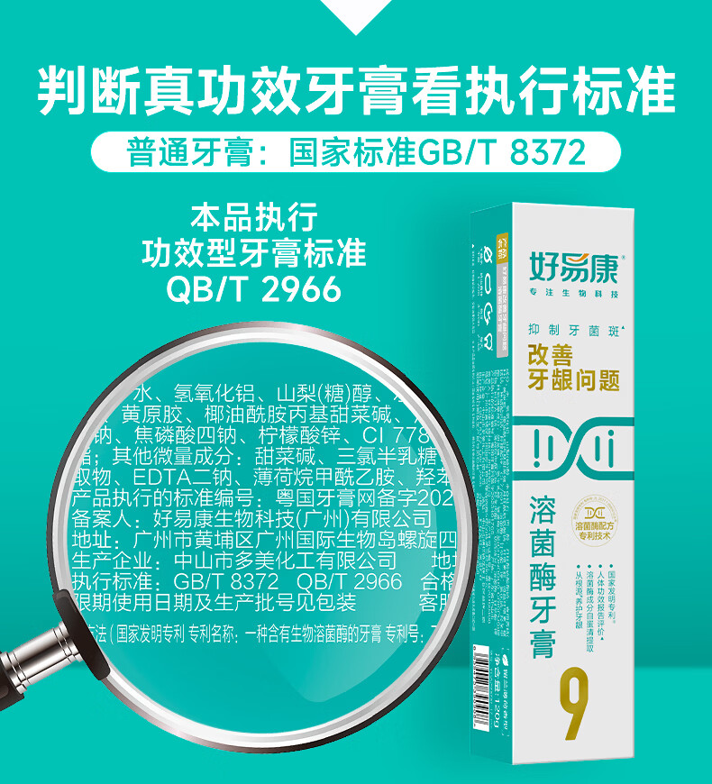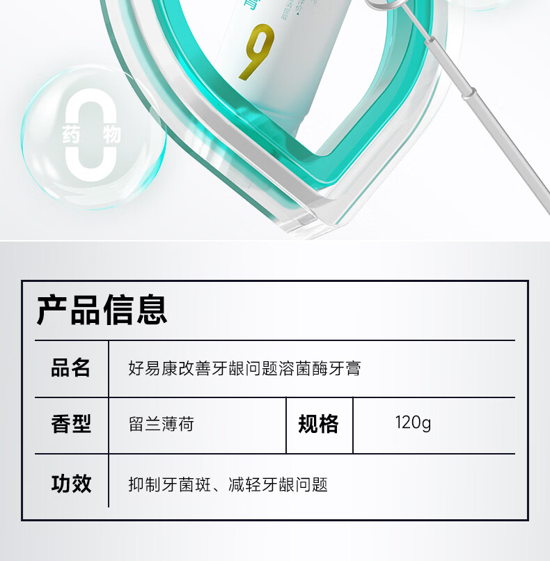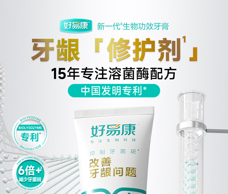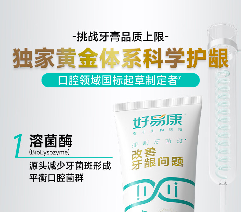 好易康改善牙龈问题溶菌酶牙膏 抑制牙菌斑清新口气 9号25g试用装